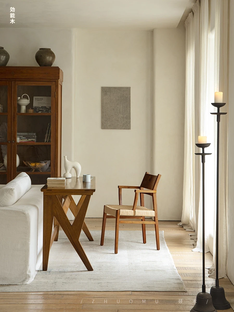 叕木 中古復刻|和モダン風本格無垢材チェア 柚木 侘び寂びデザイン ダイニングチェア アームチェア おしゃれなティールーム用主人椅子