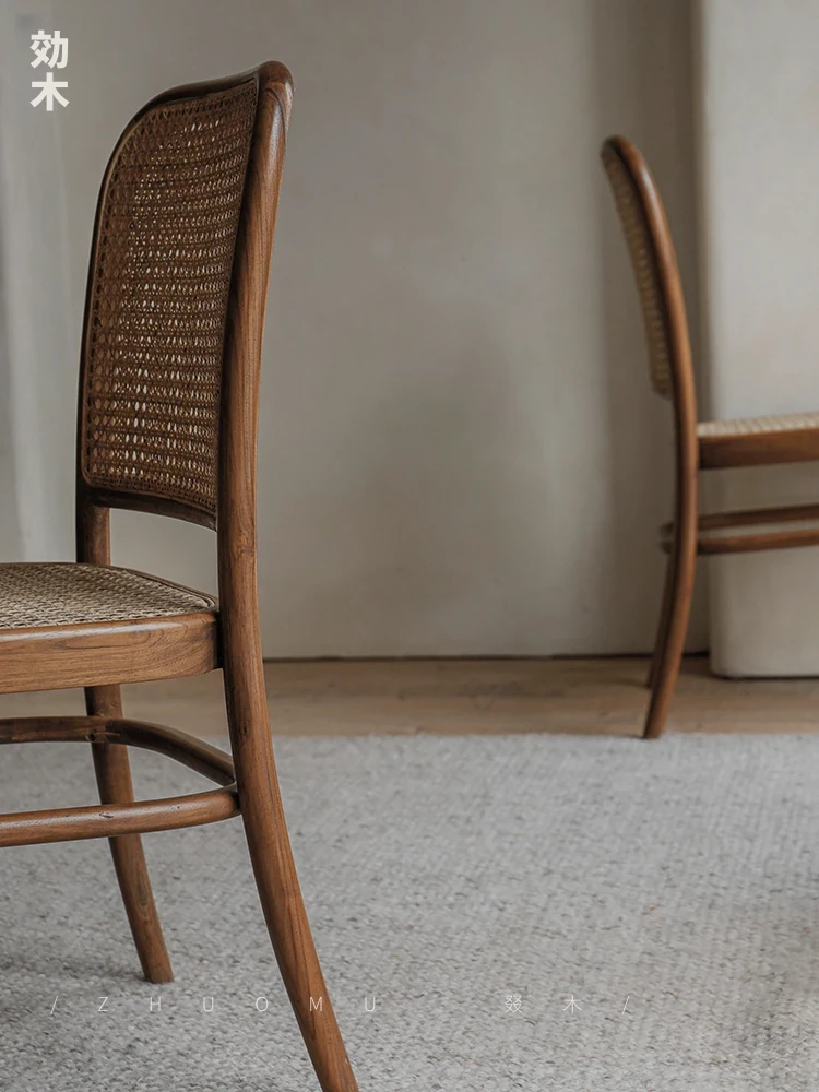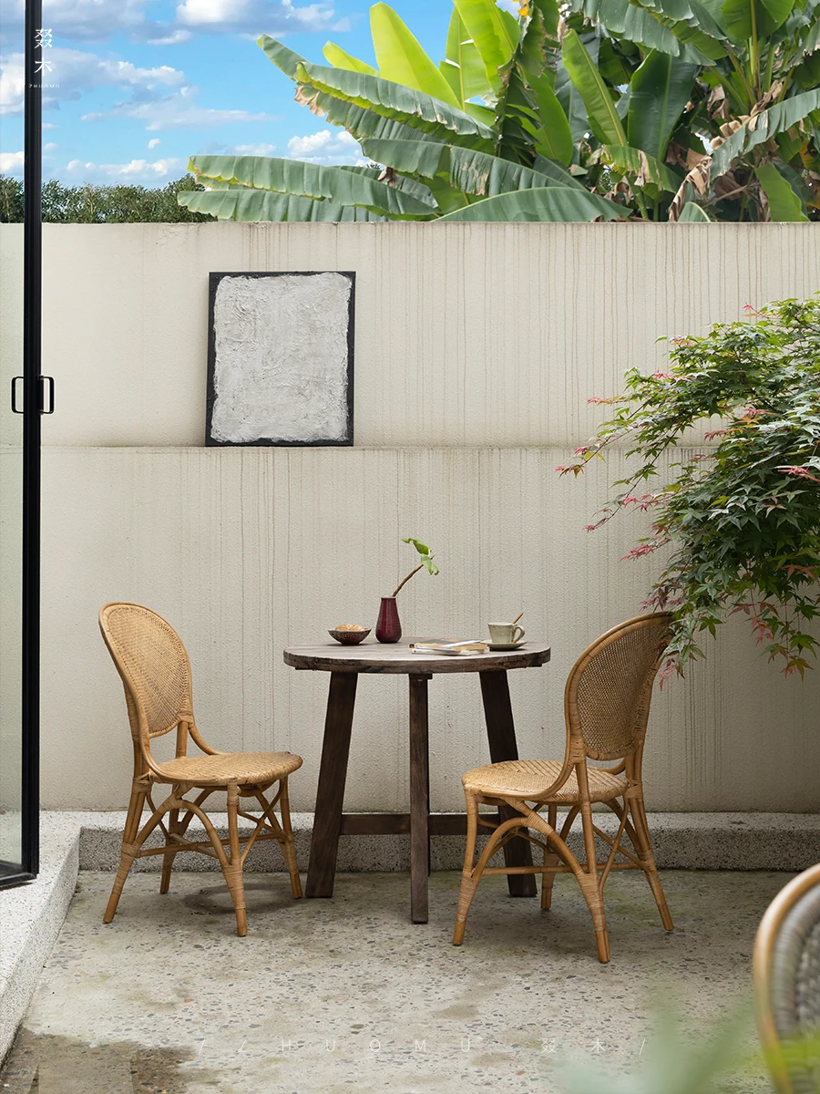 叕木 | 東南アジアの職人技!和風ヴィンテージ風天然ラタン椅子 - ホテルや民宿、カフェに最適な一人用ダイニングチェア