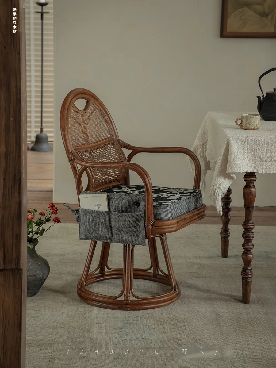 叕木|東南アジアの籐製ヴィンテージ風リラックスチェア - 回転可能な一人用書斎椅子、ダイニングチェア、ペンション・茶室用として完璧な選択!