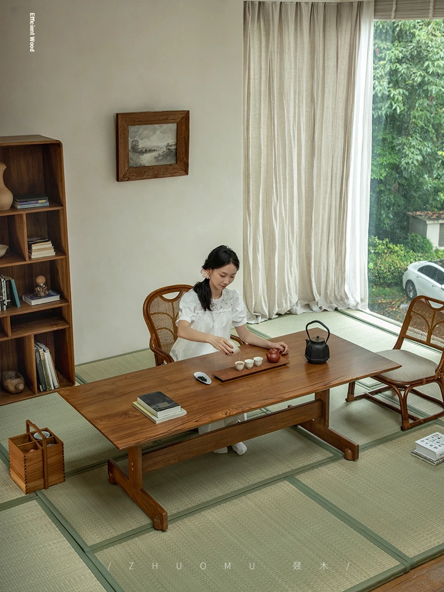 Zhuomu | Japanese Wabi-Sabi Vintage Solid Wood Tea Table - Imported Teak Large Board for Living Room, Office, and Conference Use