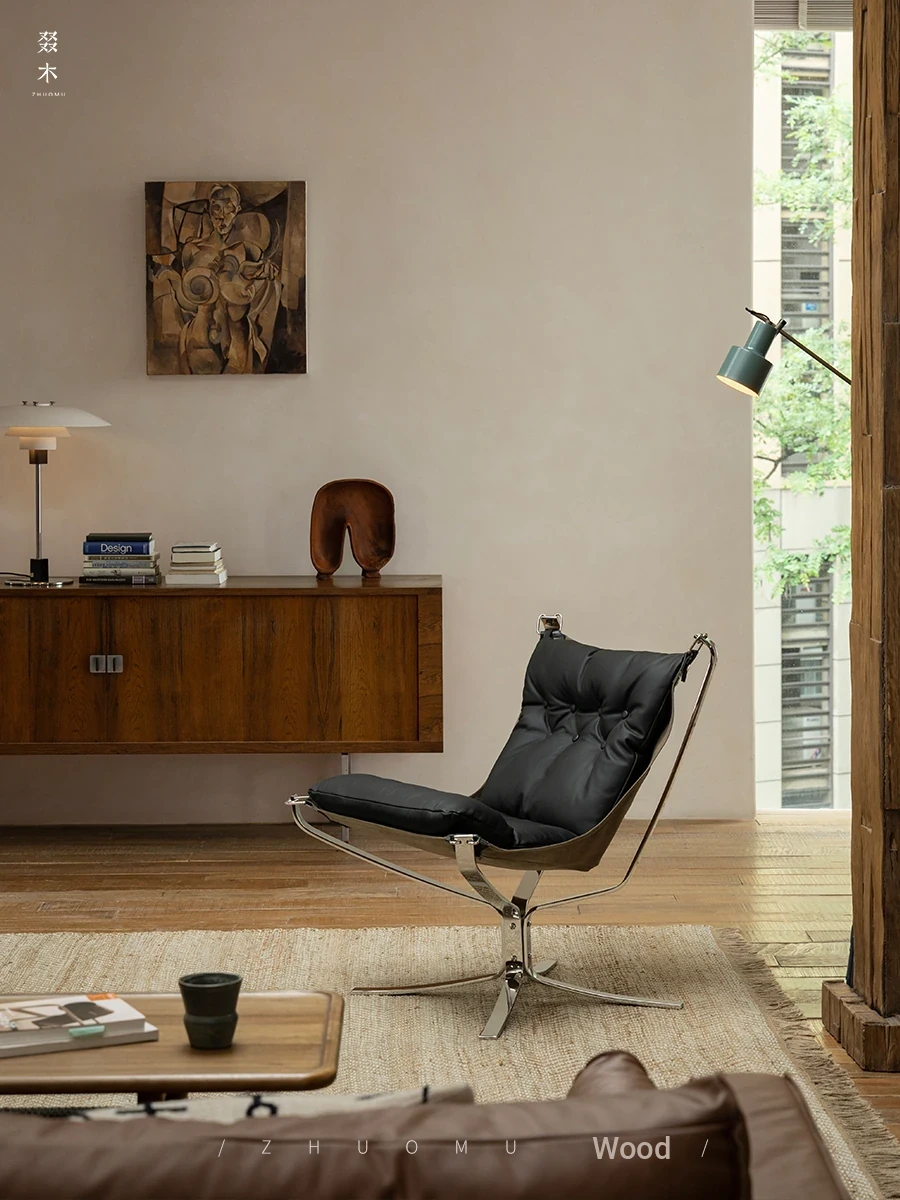 Zhuomu | Falcon Chair - Vintage Style Genuine Leather and Stainless Steel Lounge Chair with Italian Minimalist Design