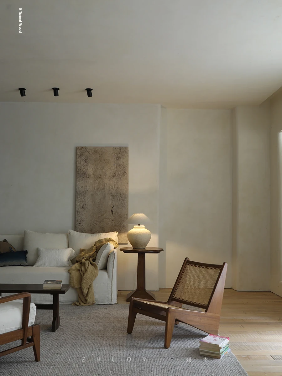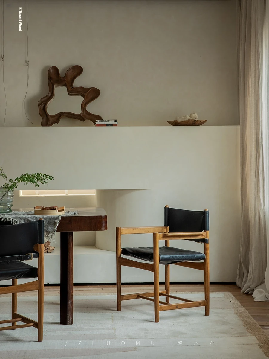 "Zhuomu Lambswool Hiroshima Chair | Scandinavian Vintage Solid Wood Designer Chair, Mid-Century Dining Chair, Wabi-Sabi Style Teak Wood Seating"