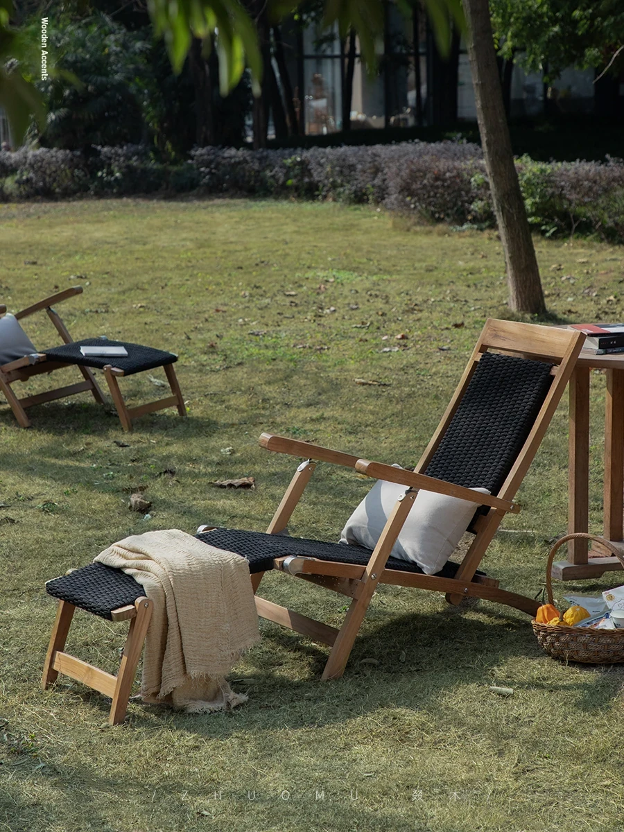 Zhuomu Outdoor Lounger | Teak Folding Chair for Hotels, Balconies, Patios, and Poolside Relaxation - Premium Solid Wood Design for Ultimate Comfort