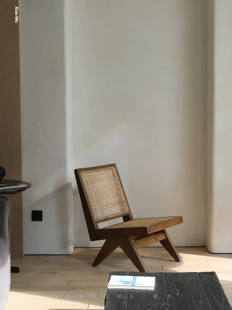 Chandigarh Kangaroo Chair by Zhuo Mu | PJ Chair - Japanese Wabi-Sabi Vintage-Style Solid Wood Rattan Lounge Chair for Your Balcony