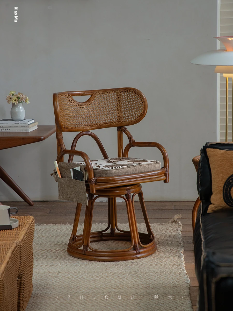 Zhuomu | Southeast Asian Rattan Art | Wabi-Sabi Vintage Natural Rattan Spinning Lounge Chair - Perfect for Guesthouses and Dining Spaces