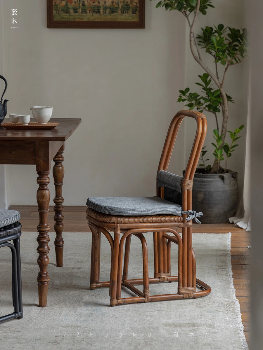 Zhuomu | Southeast Asia Rattan Art - Handmade Wabi-Sabi Vintage Style Natural Vine Dining Chair for Home Tea Room