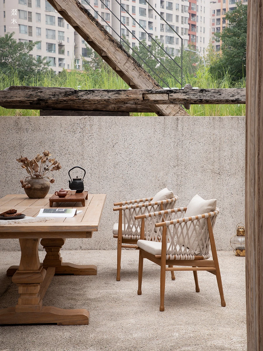 Zhuomu | Chandigarh Chair | Wabi-Sabi Antique Style Indonesian Teak Armchair - Perfect for Dining Rooms and Designer Desks in Boutique Hotels