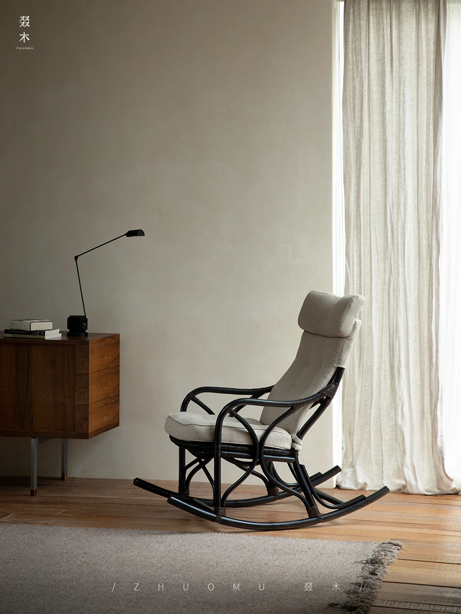 Dru Wood | Southeast Asia Rattan | Indonesian Natural Vine Handwoven Vintage Japanese Style Outdoor Leisure Rocking Chair for Balcony