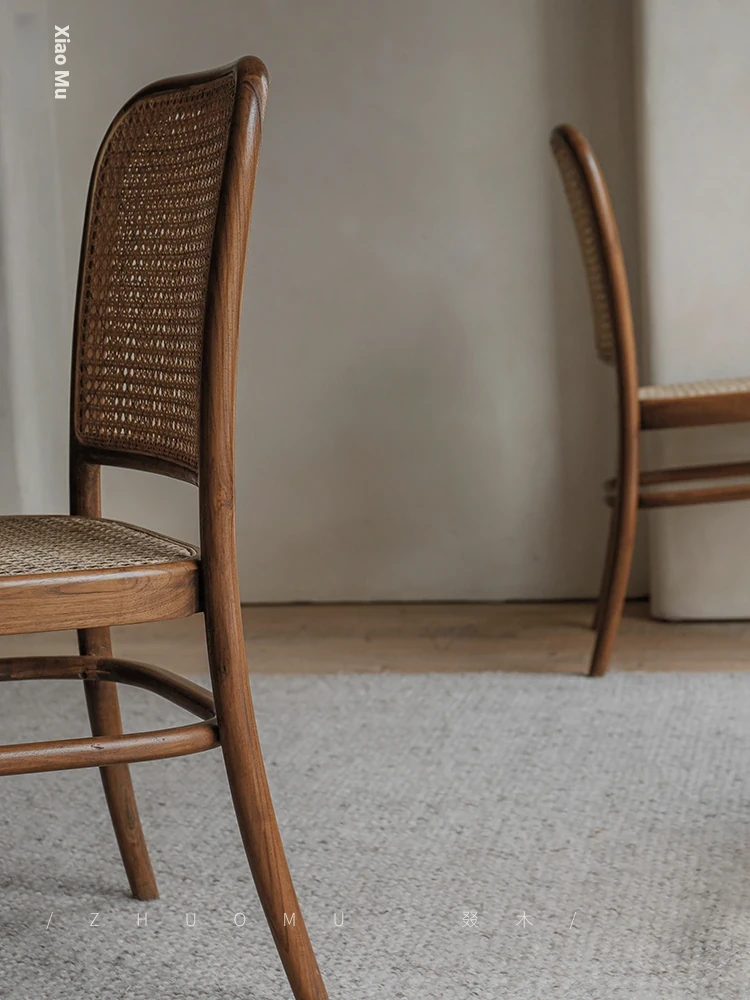 Zhuomu/No. 811 Chair | Sonate Classic Replica Designer Vintage Solid Wood Rattan Dining Chair - Embrace Wabi-Sabi Style and Timeless Elegance