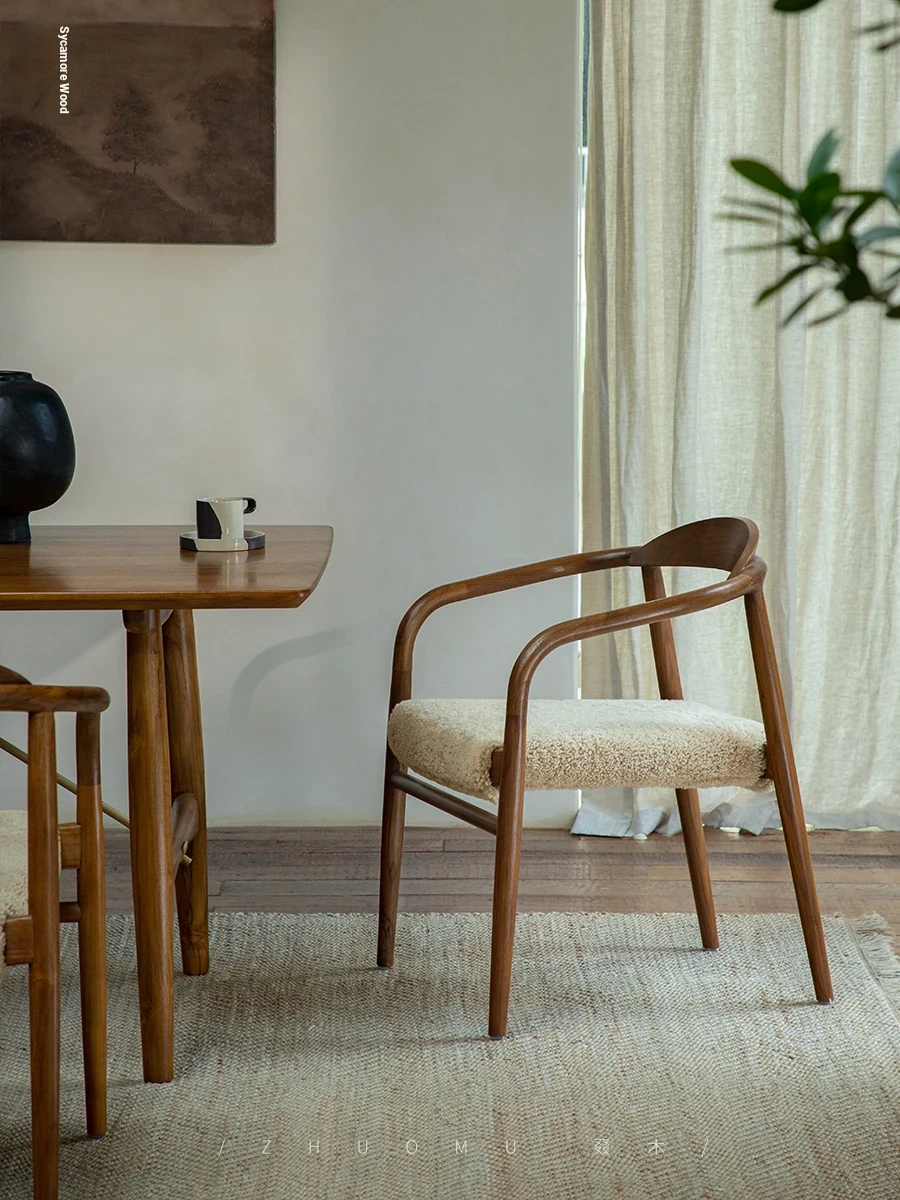 Zhuomu | French Vintage Designer Creative Sheepskin and Teak Solid Wood Dining Chair and Wabi-Sabi Desk Chair – Perfect Blend of Elegance and Comfort for Your Home or Office
