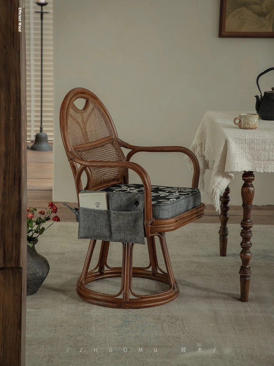 Zhuomu | Southeast Asian Rattan Vintage-Style Rotating Lounge Chair – Perfect for Home Office, Dining, or Tea Rooms in Boutique Hotels