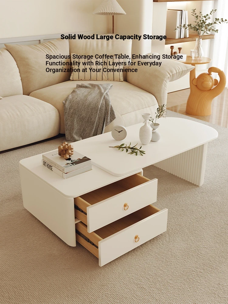 "Elegant Cream-Style Extendable Coffee Table - Simple Solid Wood Multi-Functional Low Table for Small Living Spaces with Drawers, Perfect for Scandinavian-Inspired Interiors"