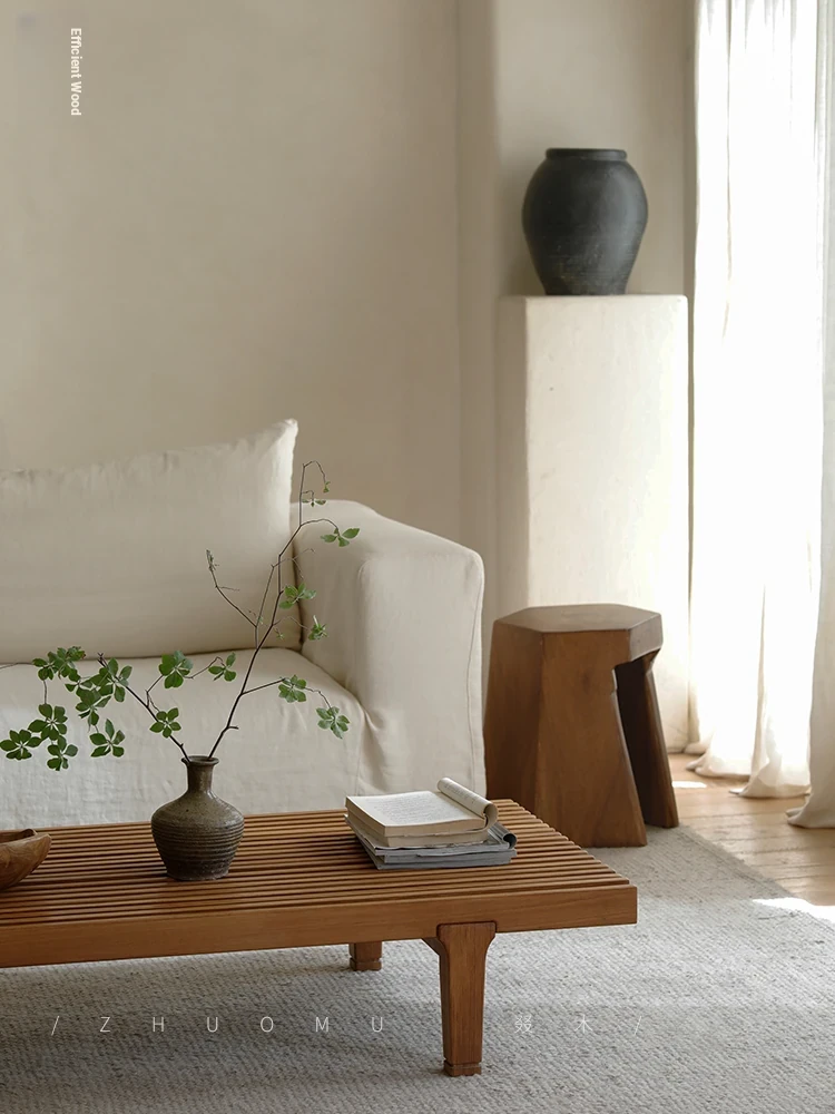 Zhumo | Teak Coffee Table | Wabi-Sabi Vintage Design for Creative Homestays and Hotels, Rectangular Living Room Tea Table for Home Use