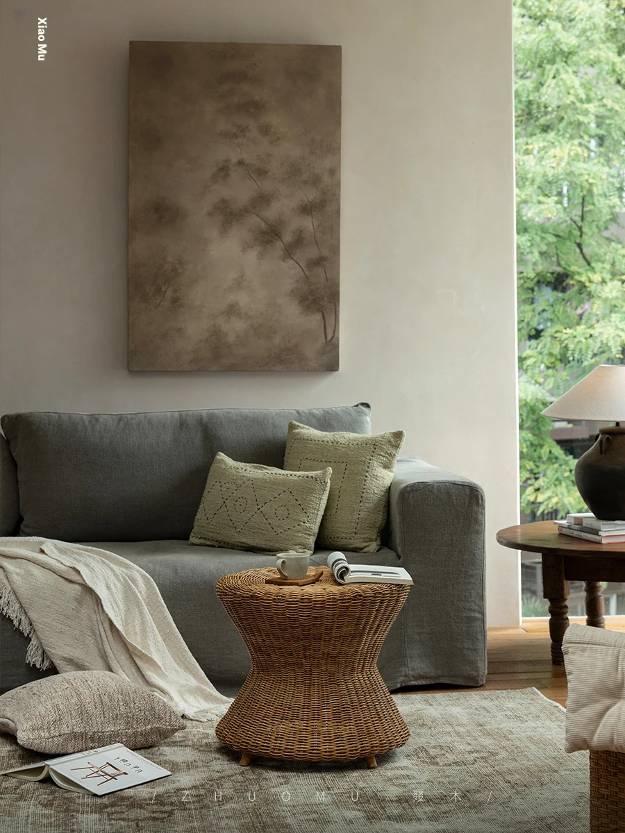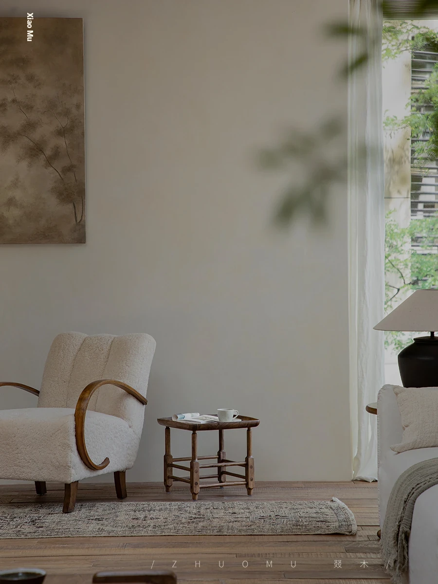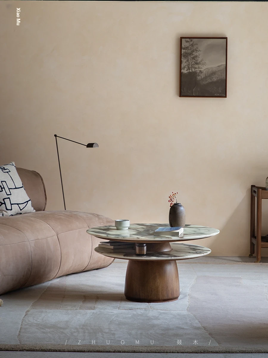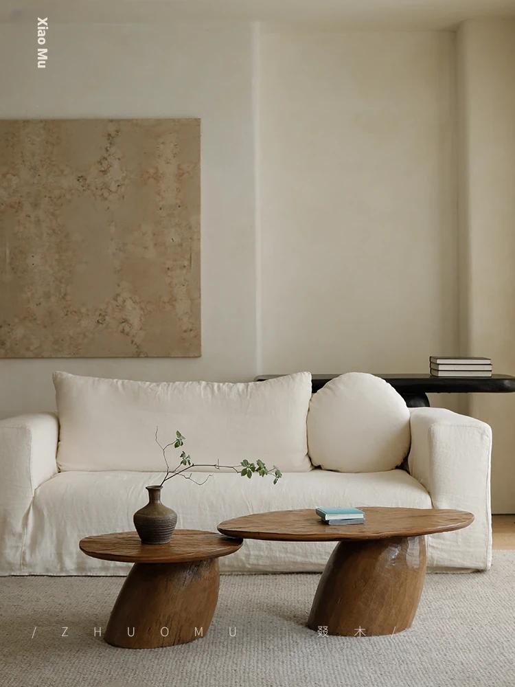 Zhuomu | Creative Solid Wood Chabana Table Set - Wabi-Sabi Living Room Sofa and Round Coffee Table for Relaxing Homes and Tea Rooms, Made with Premium Solid Wood.