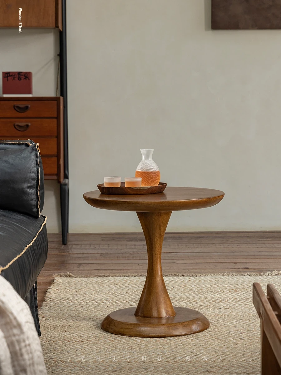 Zhuomu | Solid Wood Creative Wabi-Sabi Style Rustic Side Table - Designer Wooden Display Stand for Vintage Homestay and Sofa Corner Decor