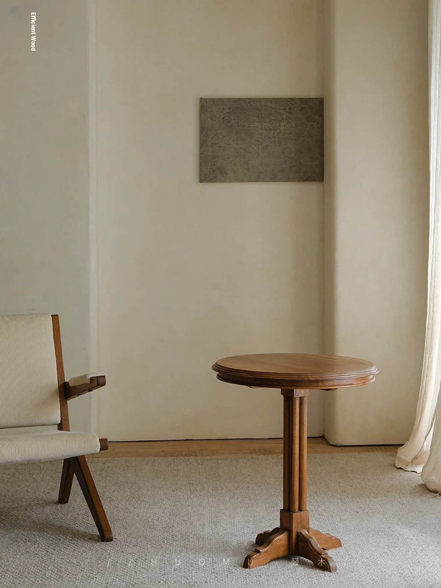 Zhumo | Solid Wood Round Side Table - Japanese Style Bedside Table & Coffee Table for Small Living Rooms, Embracing Wabi-Sabi Elegance in Vintage Design