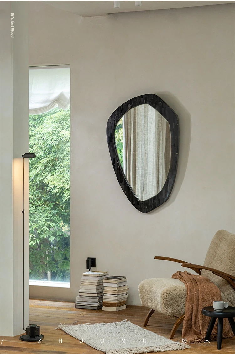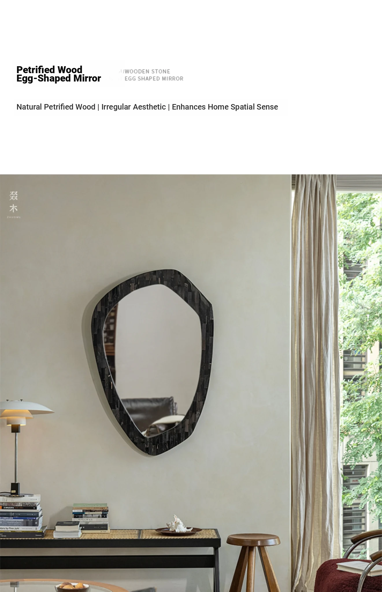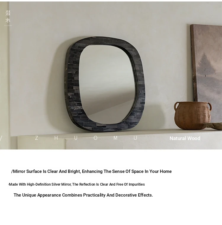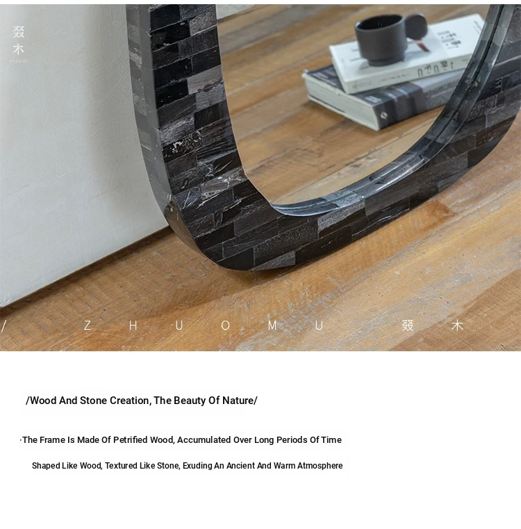 Zhuomu | Petrified Wood Mirror - Unique Natural Stone Decorative Mirror for Bedroom Vanity and Entryway - Crafted to Fit Any Space