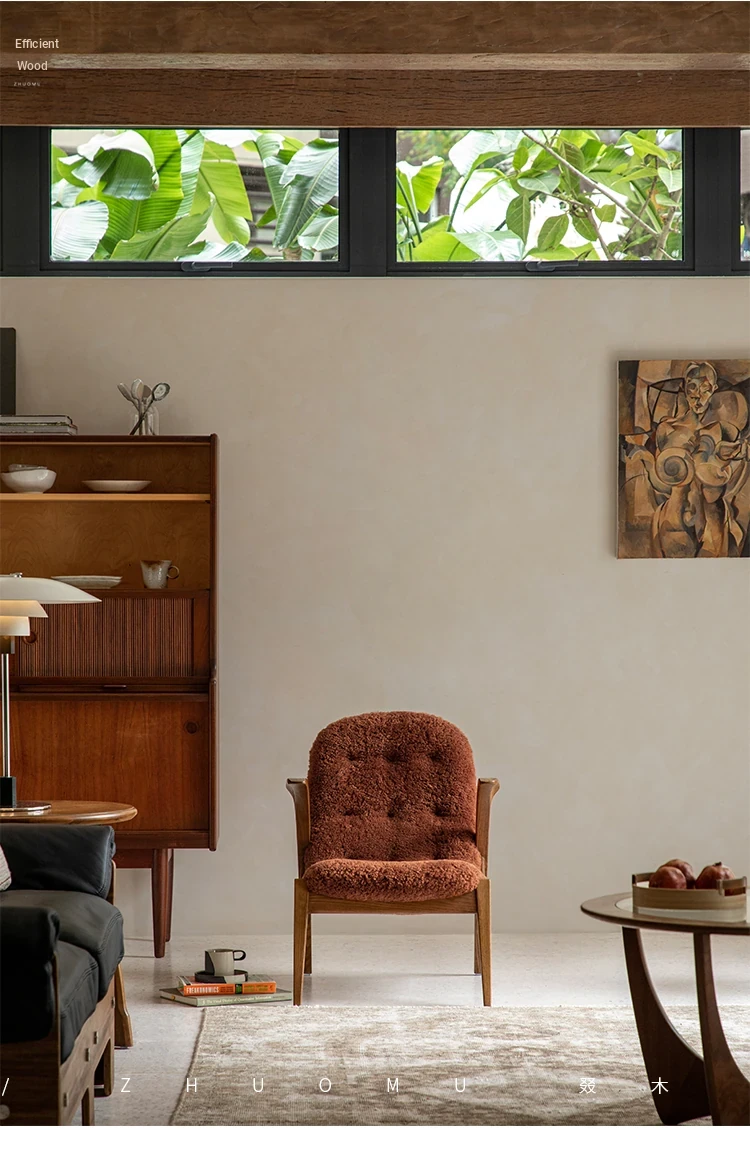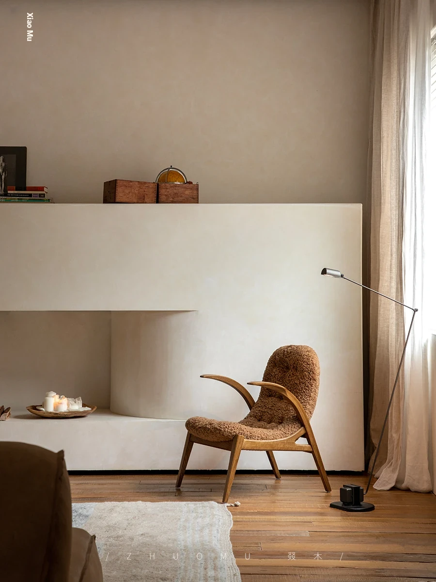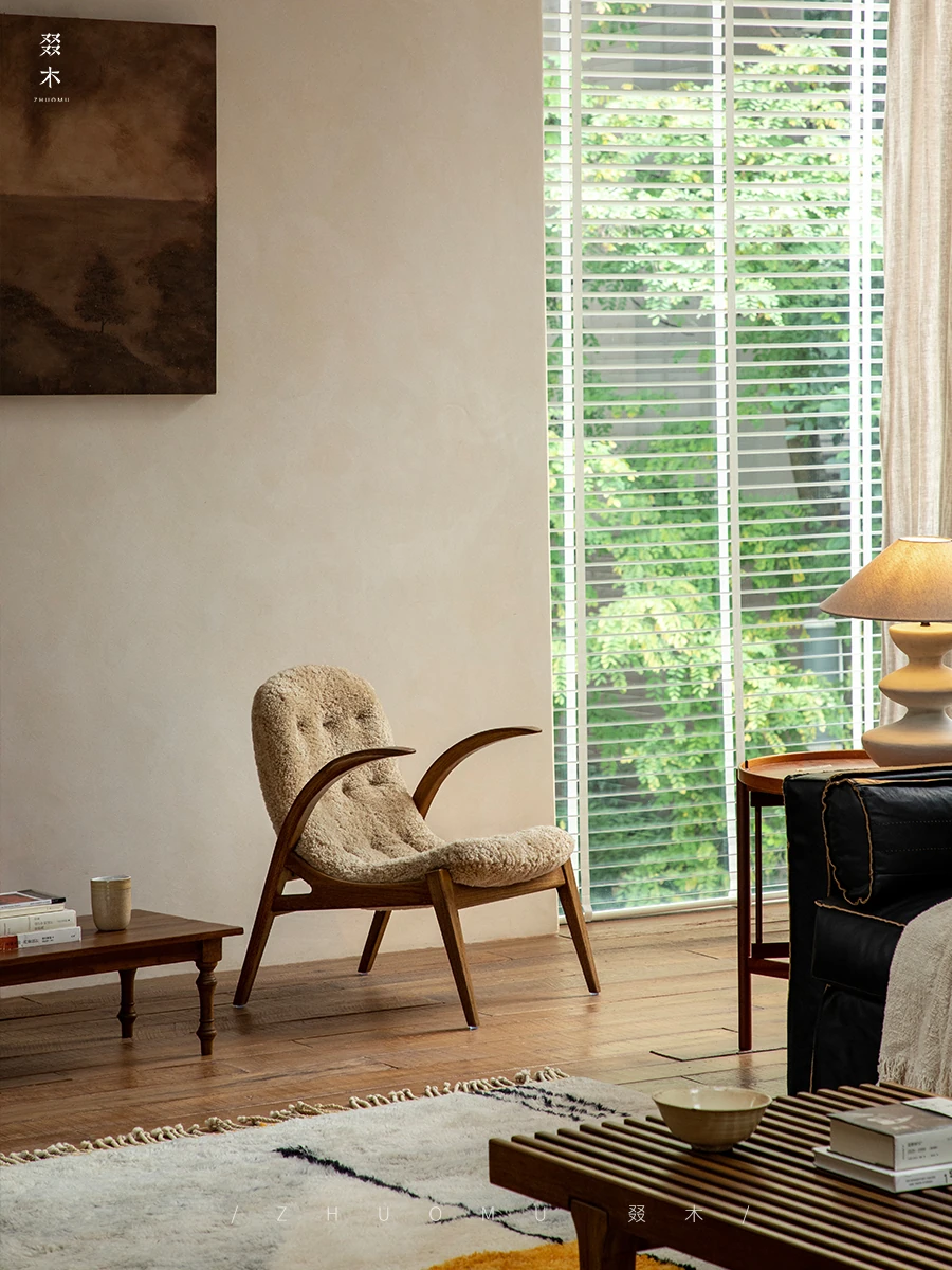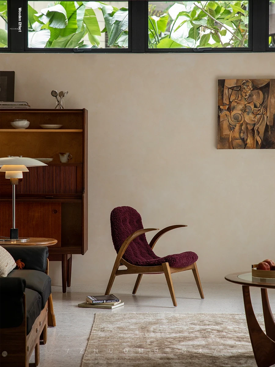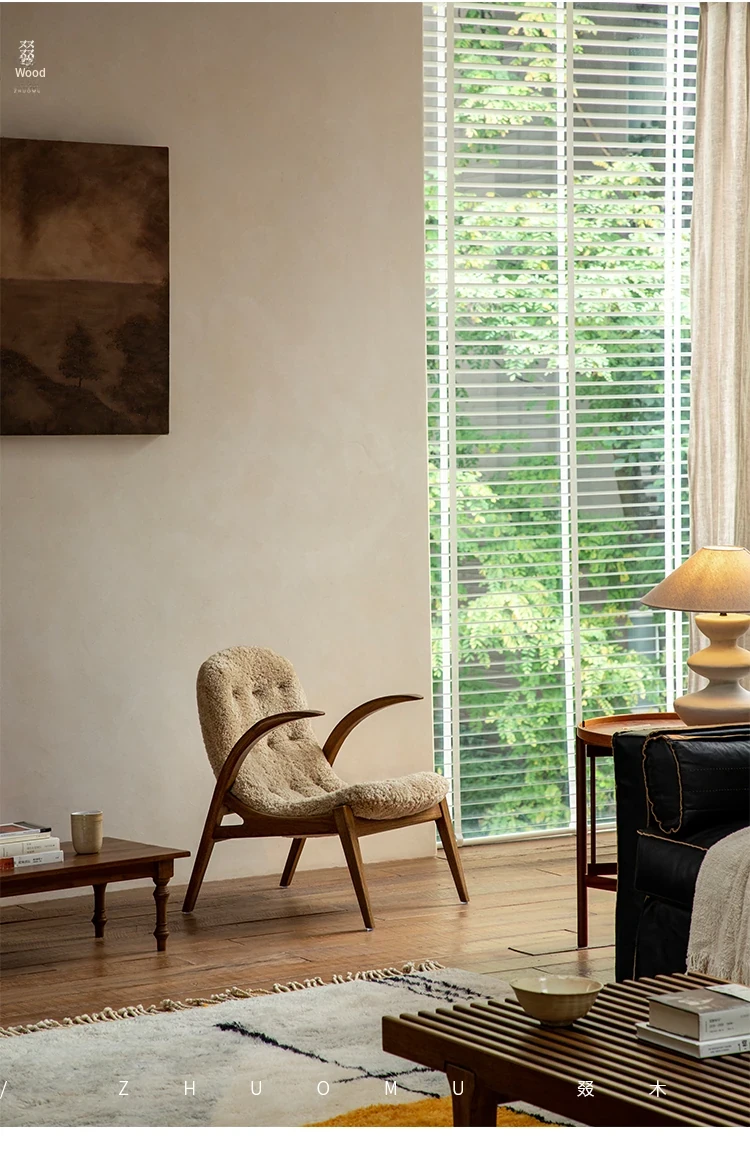 Druwu | Vintage-Inspired Lambswool Lounge Chair - Designer French Retro Style Art Armchair for Living Room, Perfect Blend of Comfort and Elegance