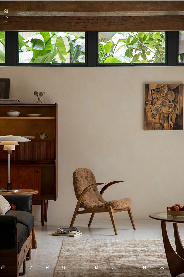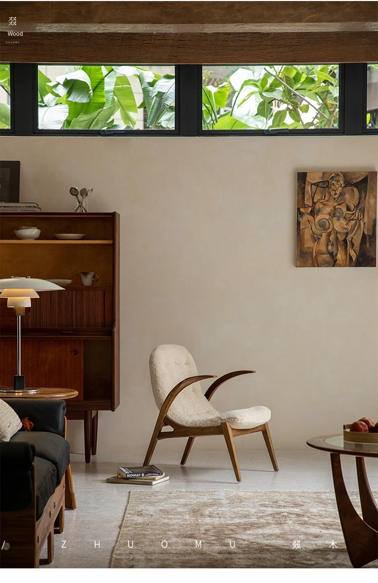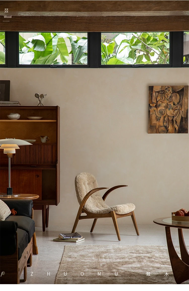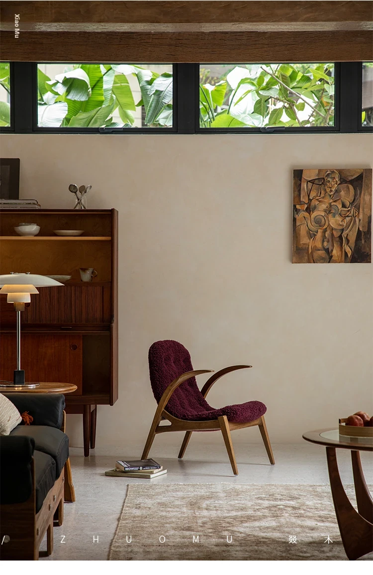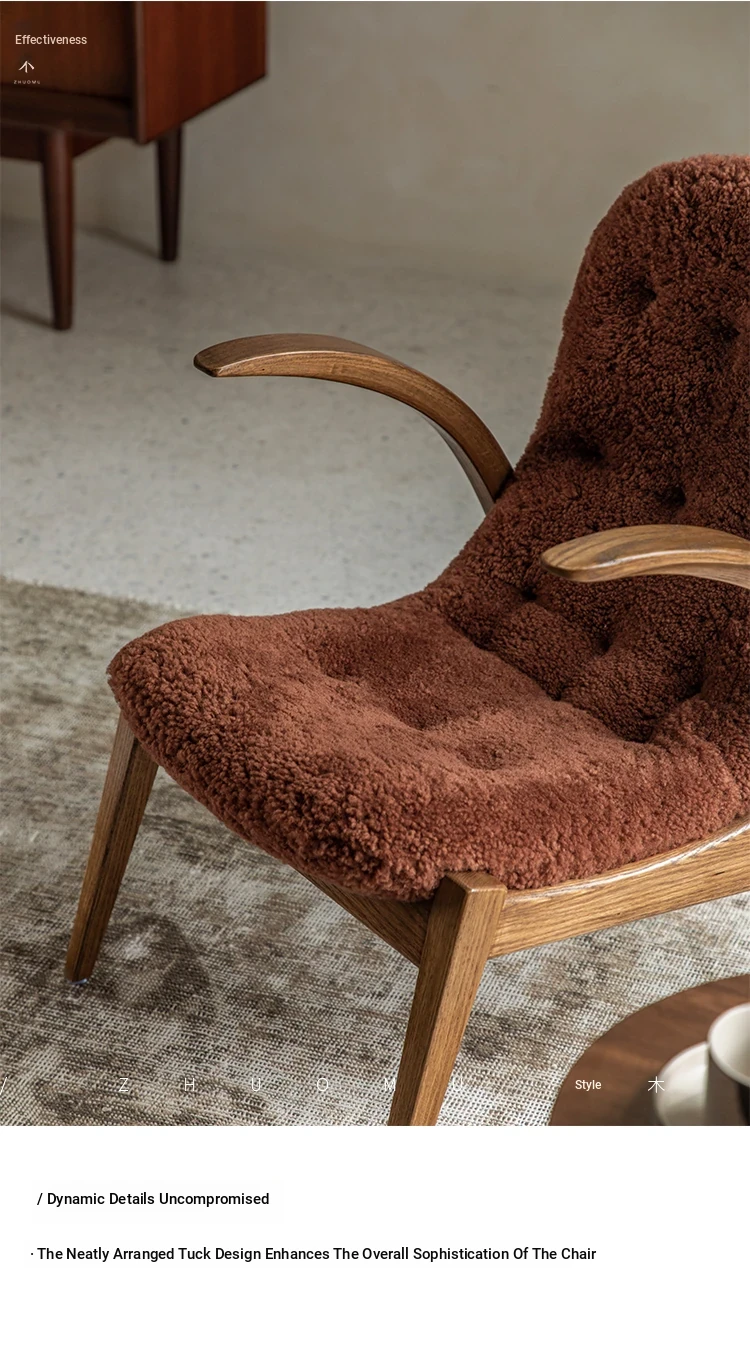 Druwu | Vintage-Inspired Lambswool Lounge Chair - Designer French Retro Style Art Armchair for Living Room, Perfect Blend of Comfort and Elegance