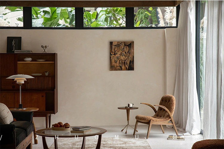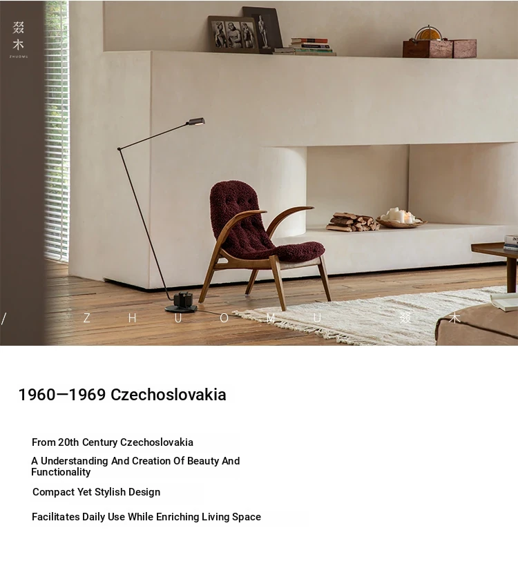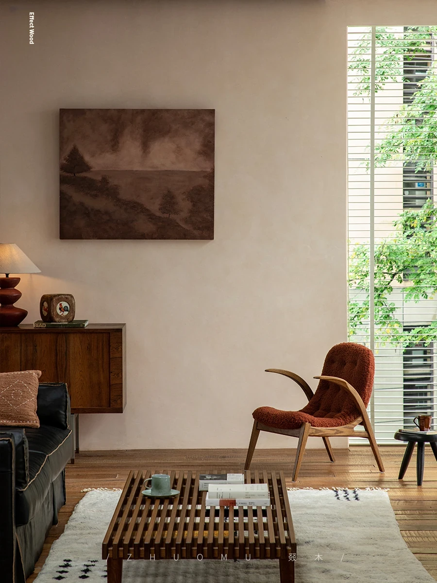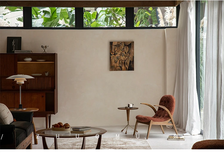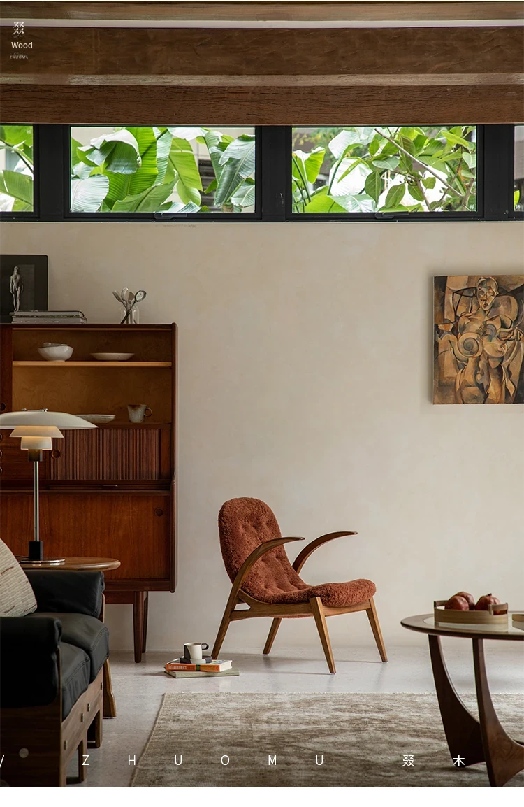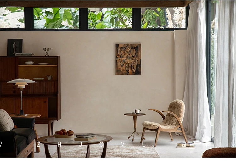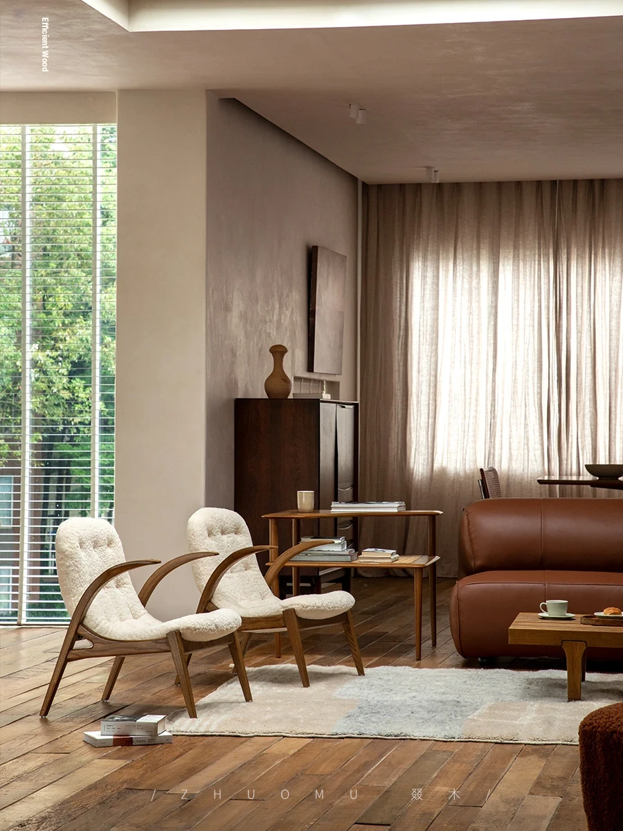 Druwu | Vintage-Inspired Lambswool Lounge Chair - Designer French Retro Style Art Armchair for Living Room, Perfect Blend of Comfort and Elegance