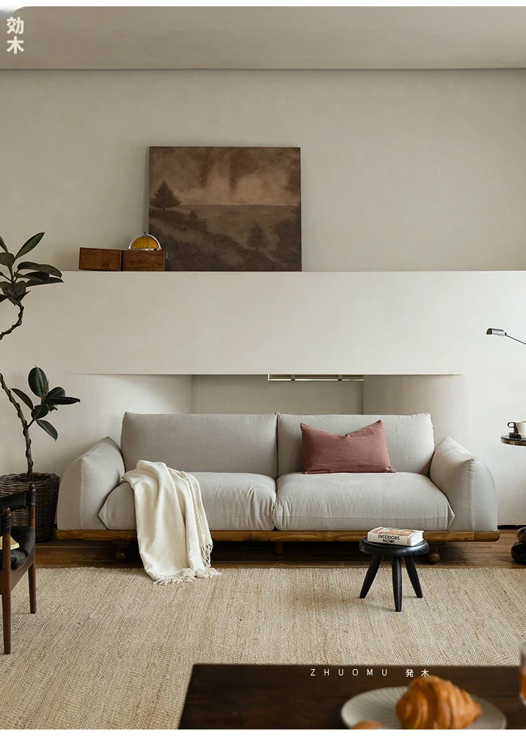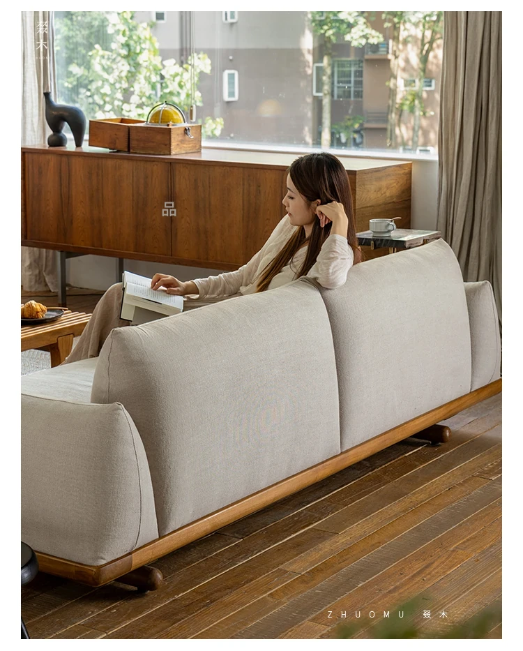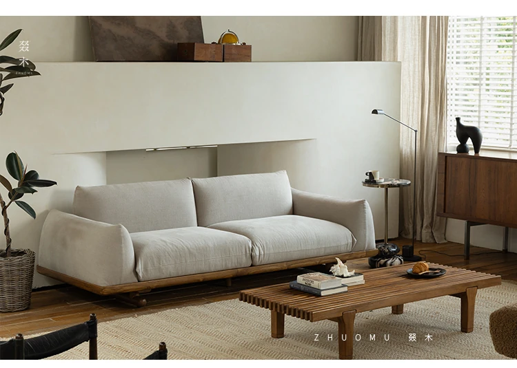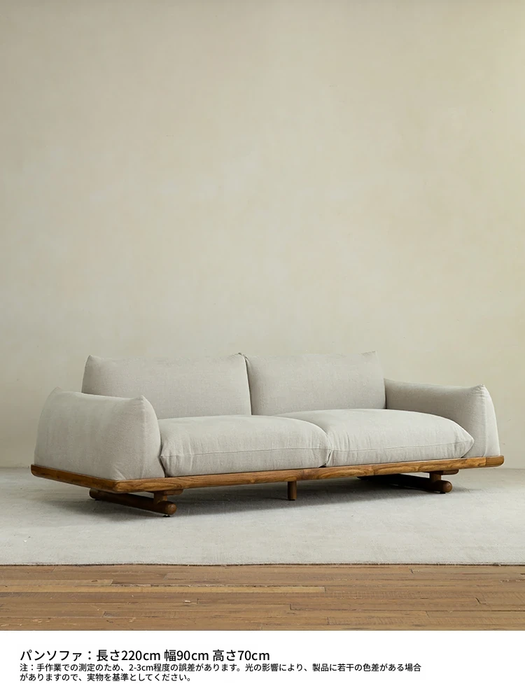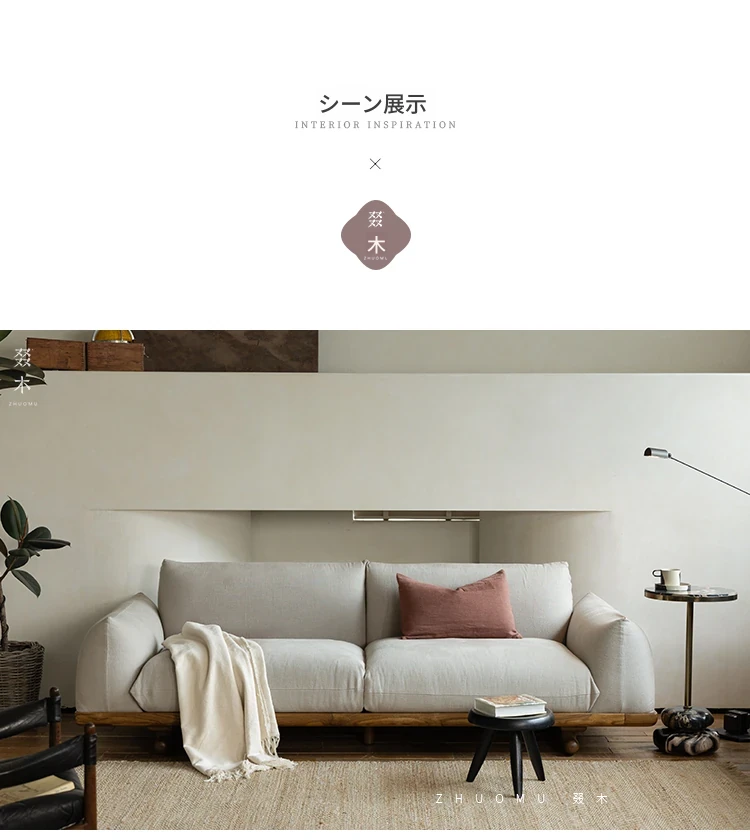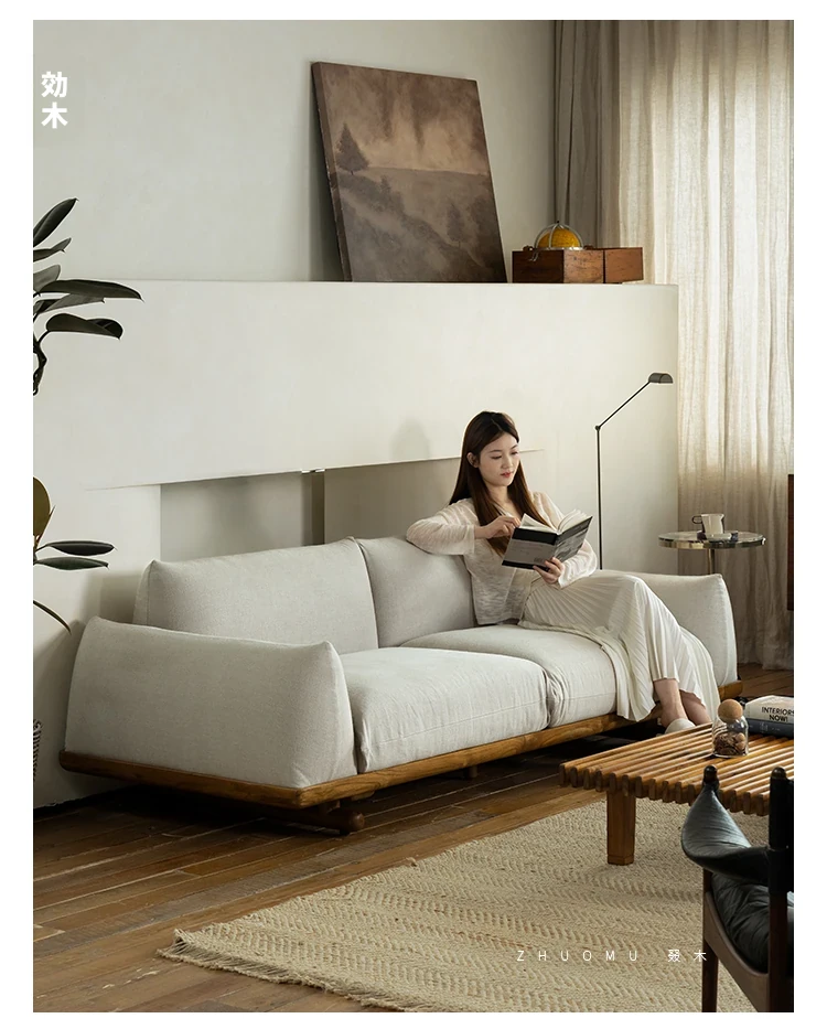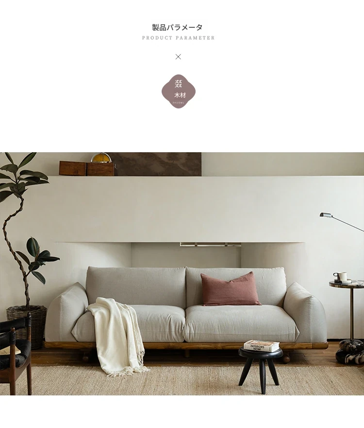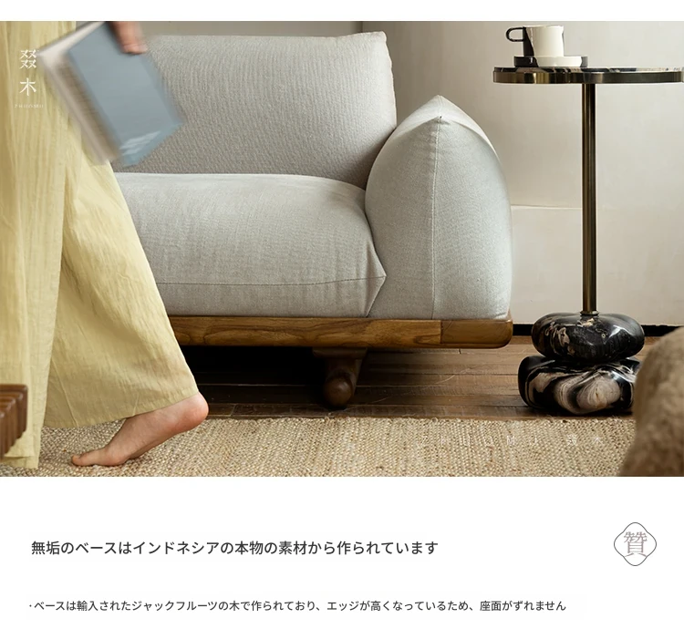叕木|北欧インス風のレトロな侘寂スタイル✨インドネシアのユーカリウッドとリネンを使用した、3人掛けの実木布張りソファ。心地よい座り心地で、あなたのリビングに温かみをプラス!