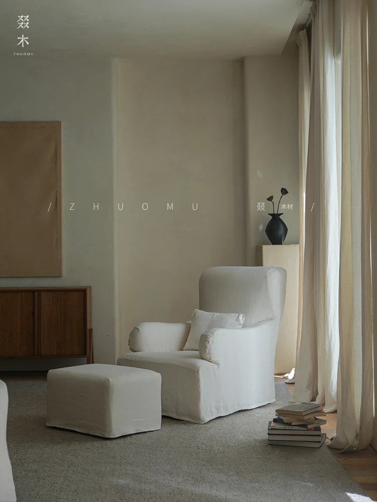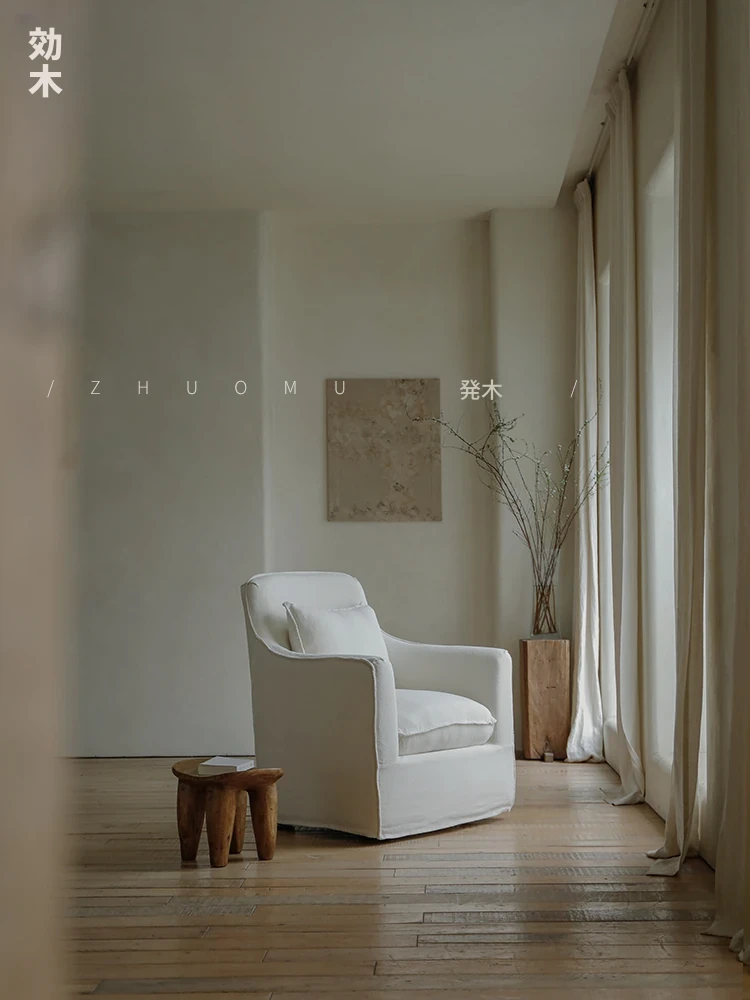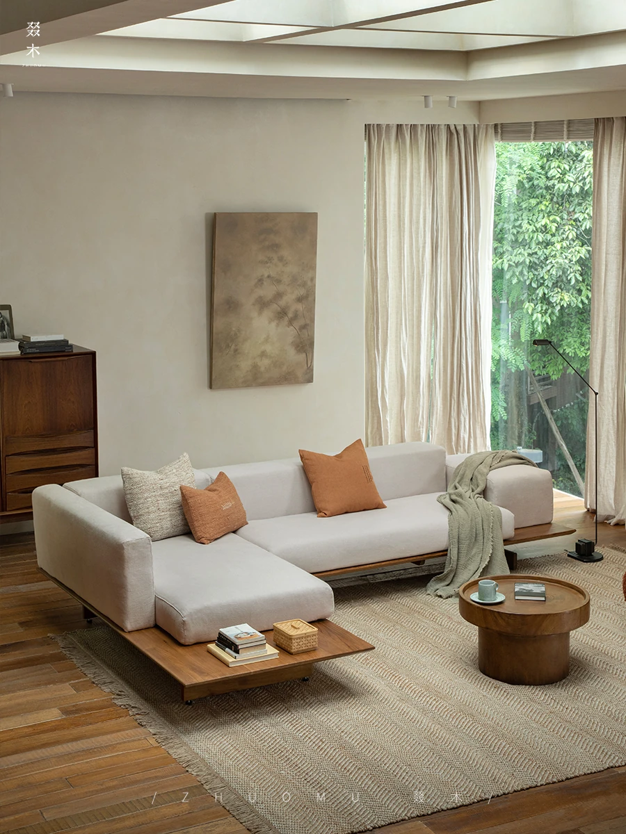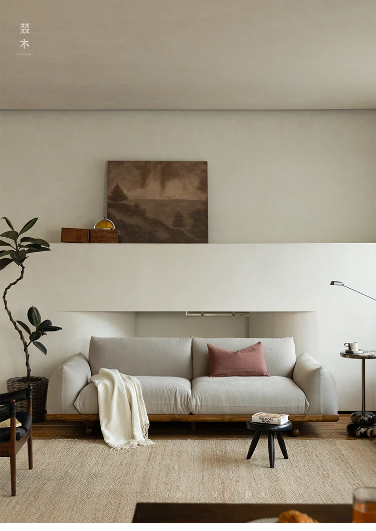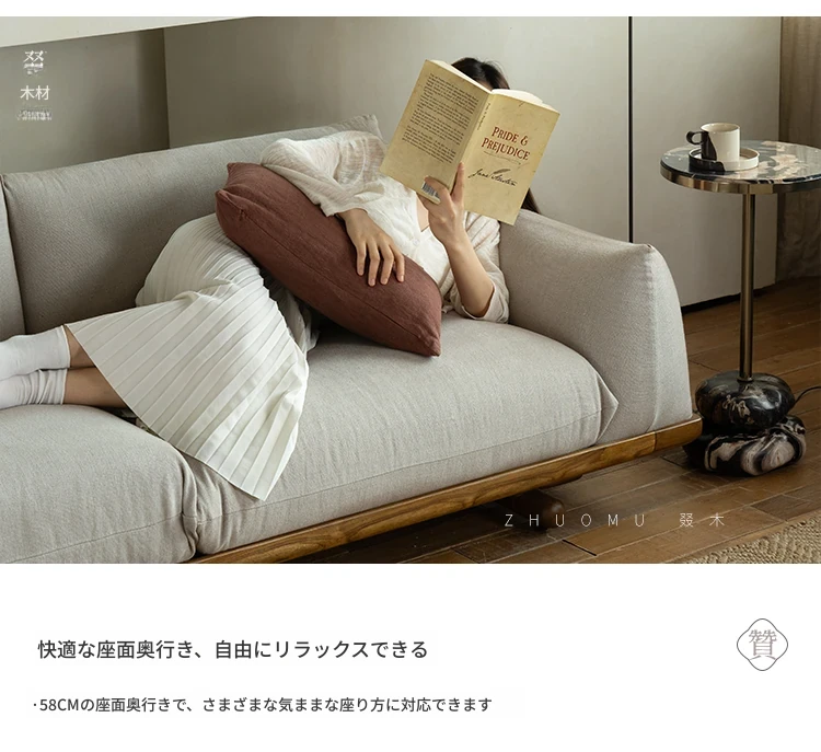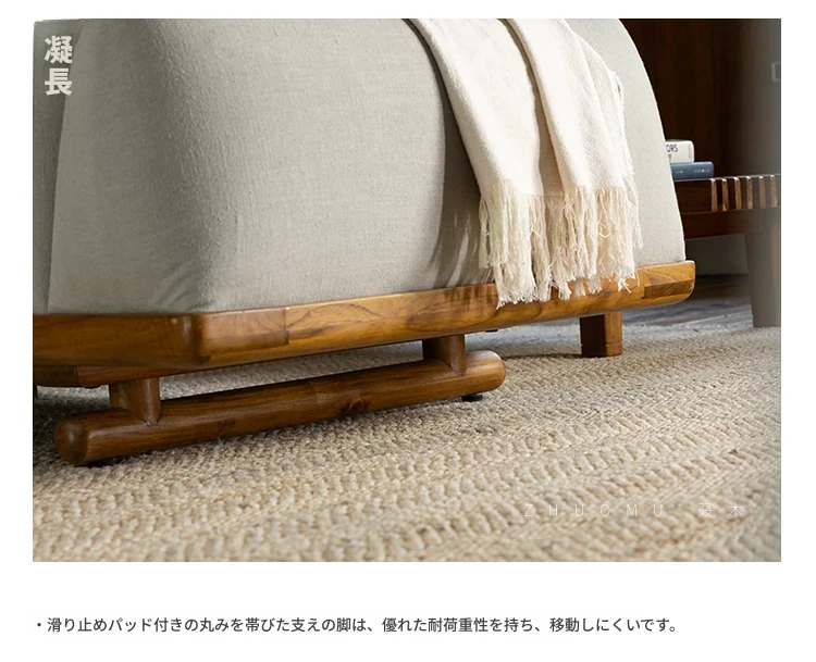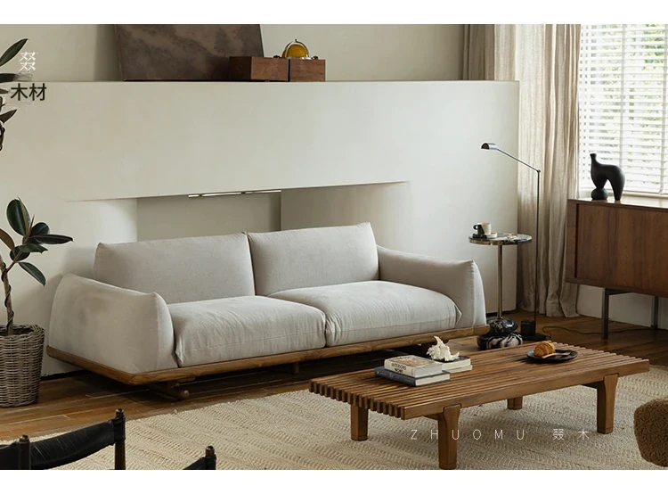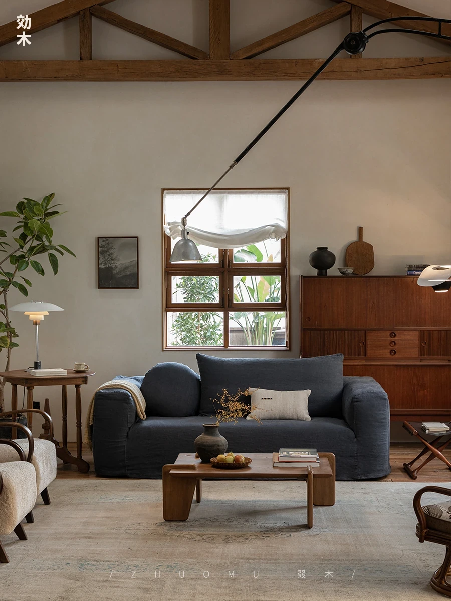 叕木|北欧インス風のレトロな侘寂スタイル✨インドネシアのユーカリウッドとリネンを使用した、3人掛けの実木布張りソファ。心地よい座り心地で、あなたのリビングに温かみをプラス!