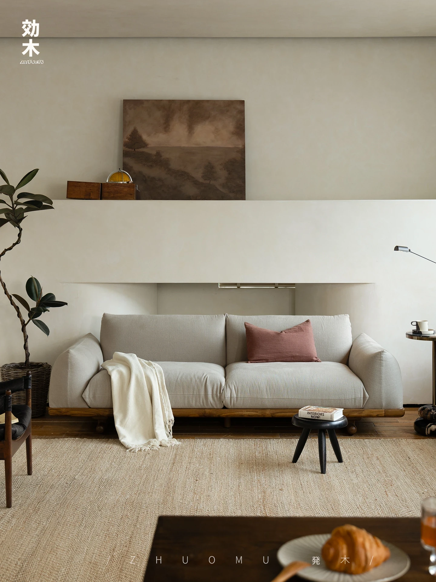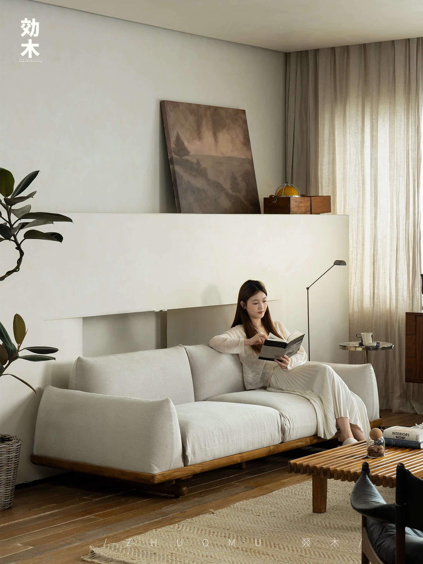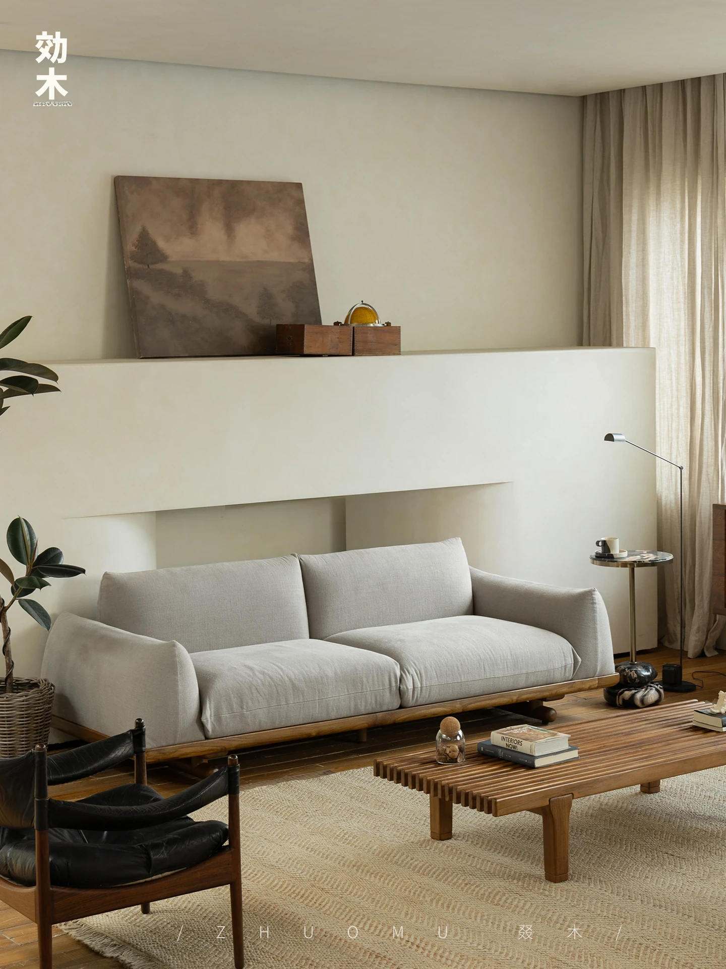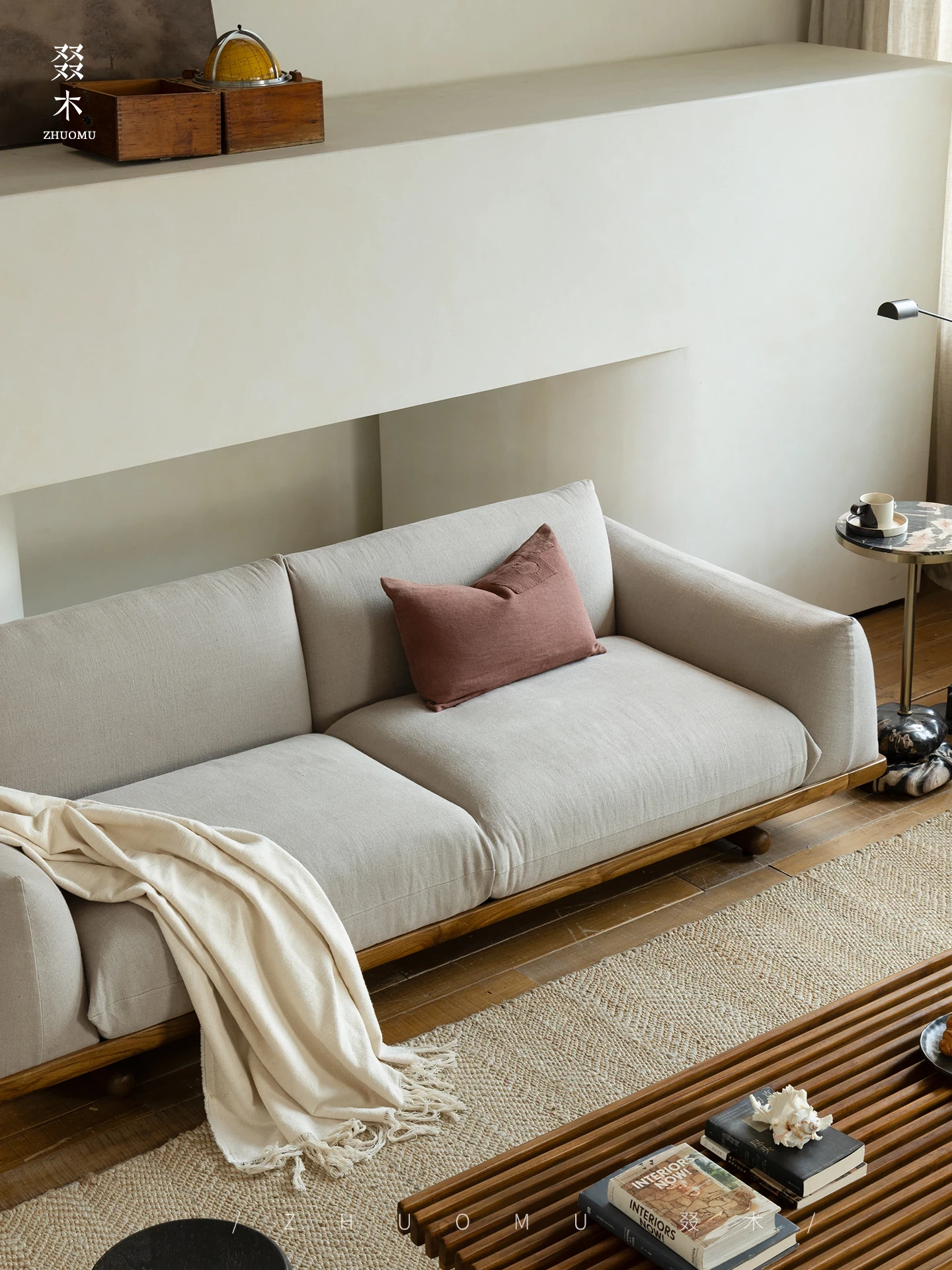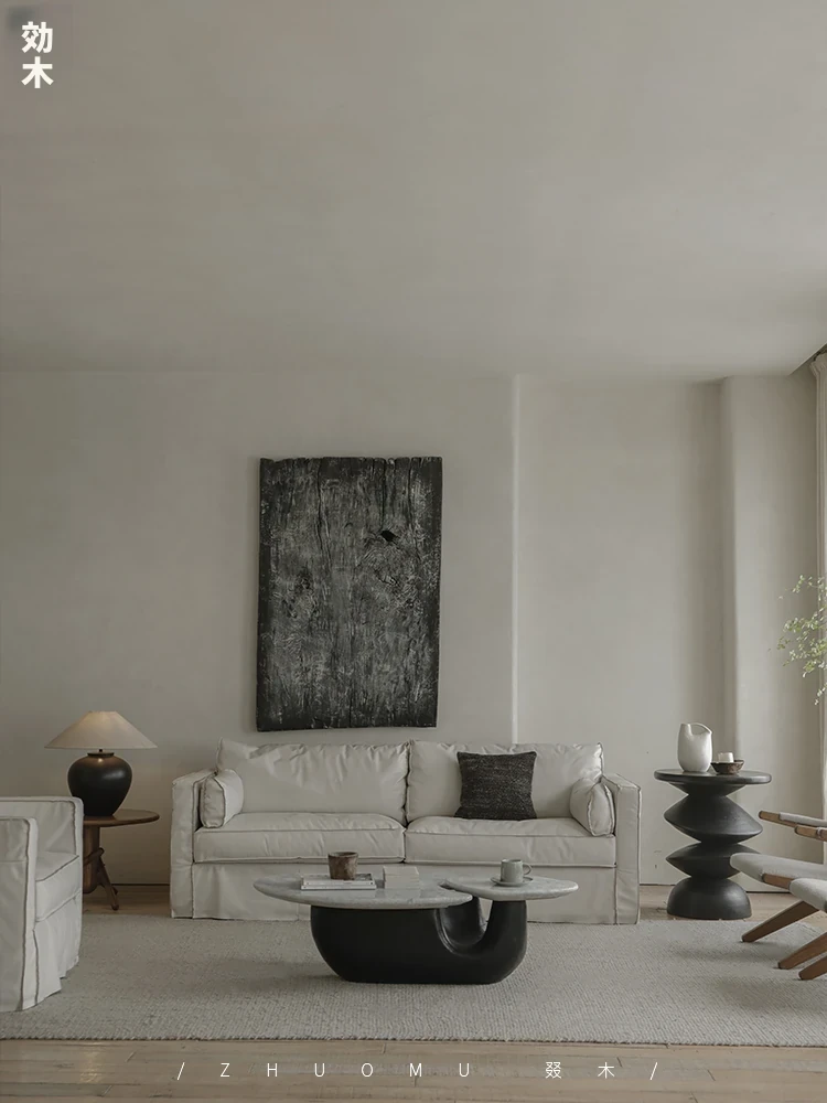 叕木|北欧インス風のレトロな侘寂スタイル✨インドネシアのユーカリウッドとリネンを使用した、3人掛けの実木布張りソファ。心地よい座り心地で、あなたのリビングに温かみをプラス!