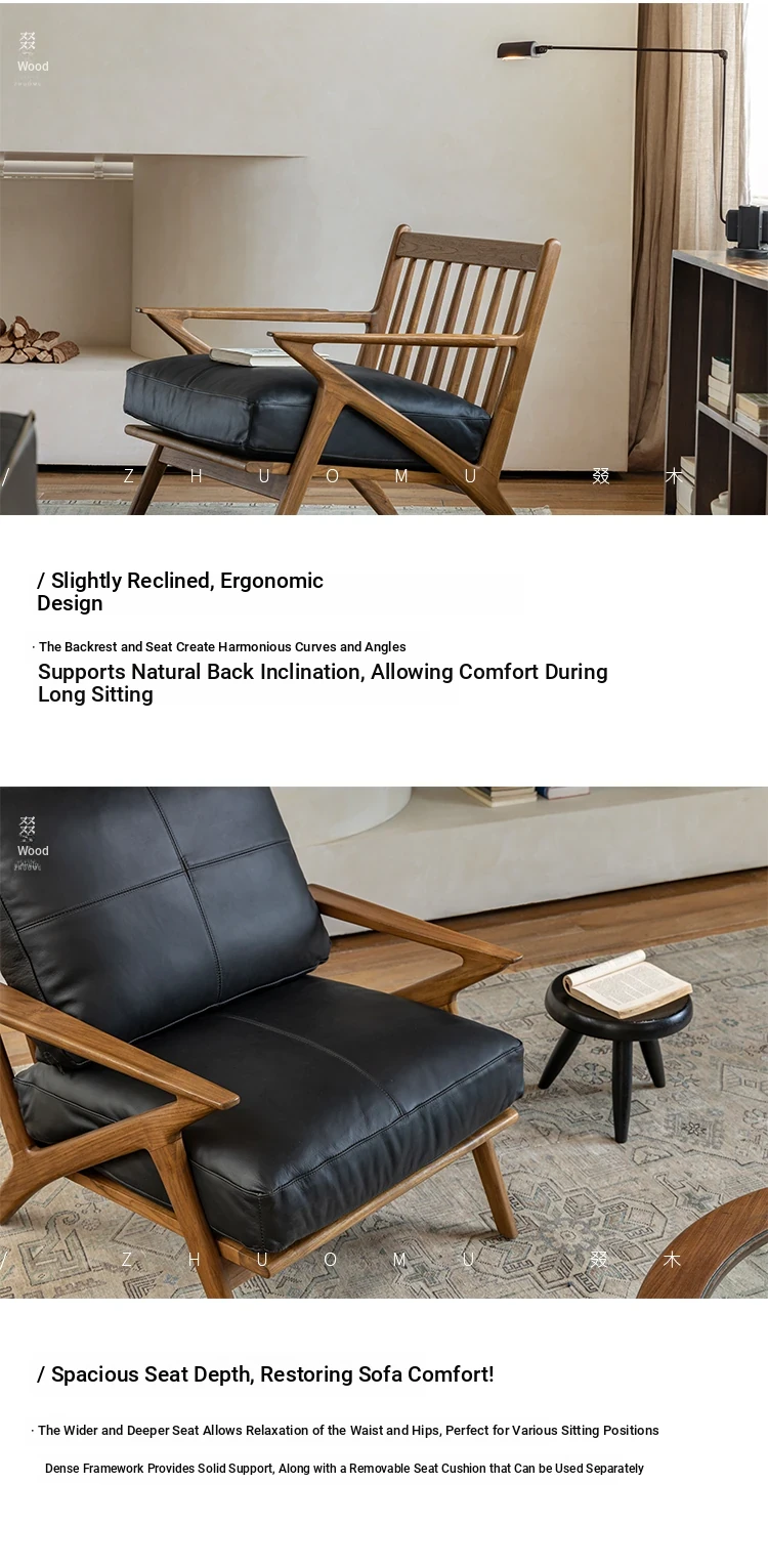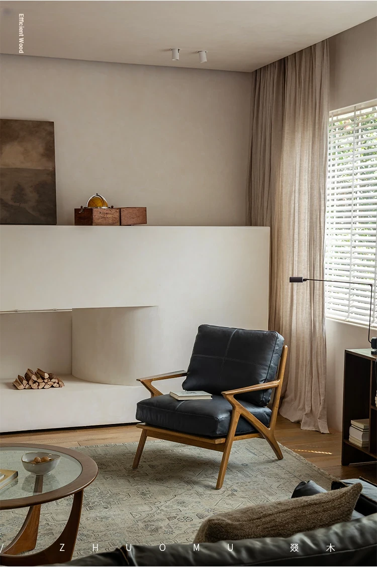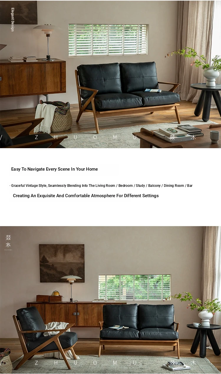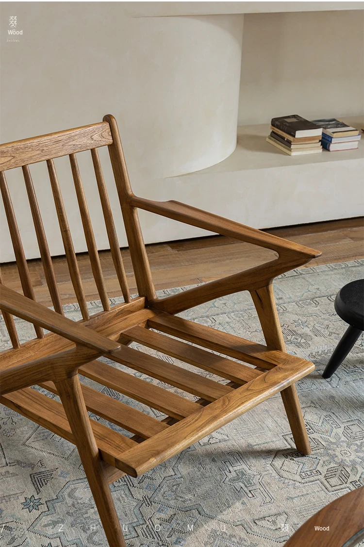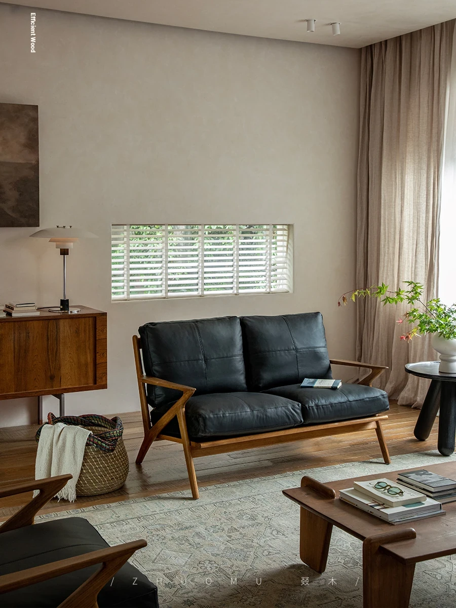 DuoMu | Vintage-Inspired Designer Solid Wood Teak Lounge Chair for Two – Perfect for Hotels & Guesthouses, Featuring Genuine Leather Upholstery