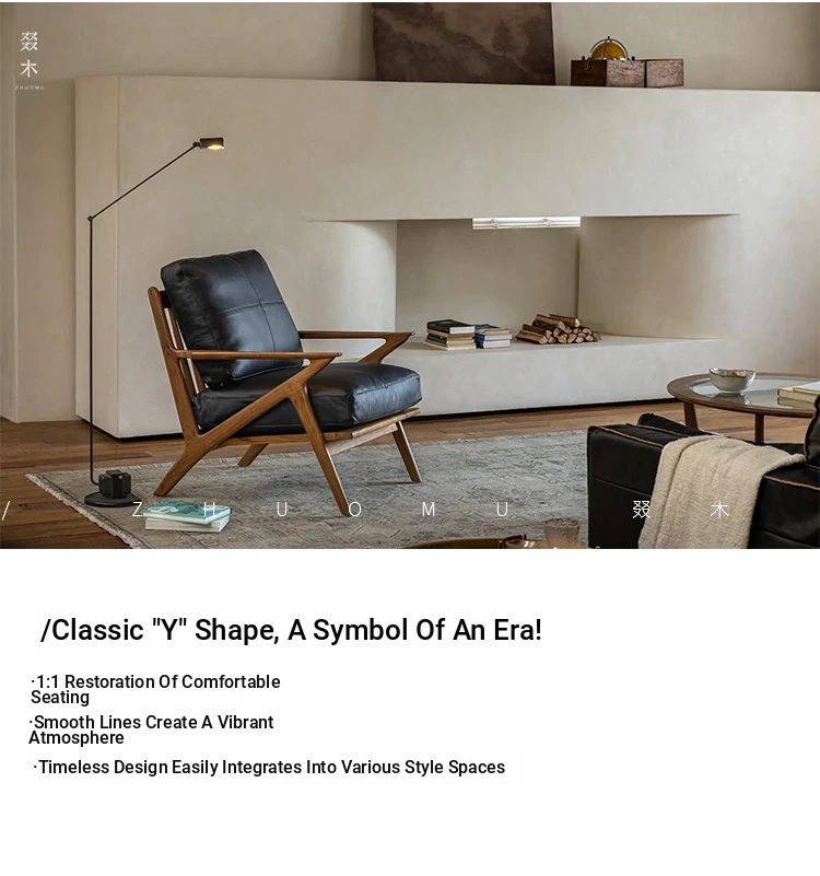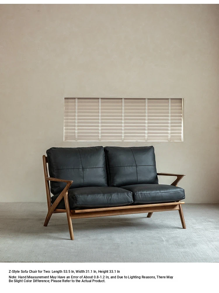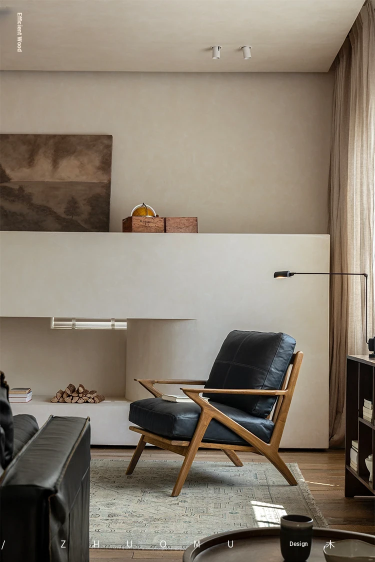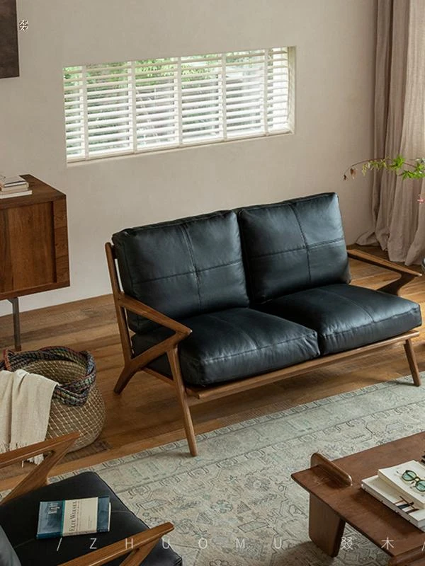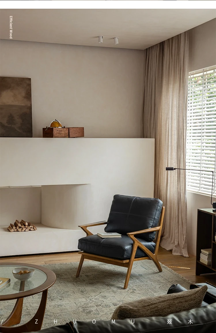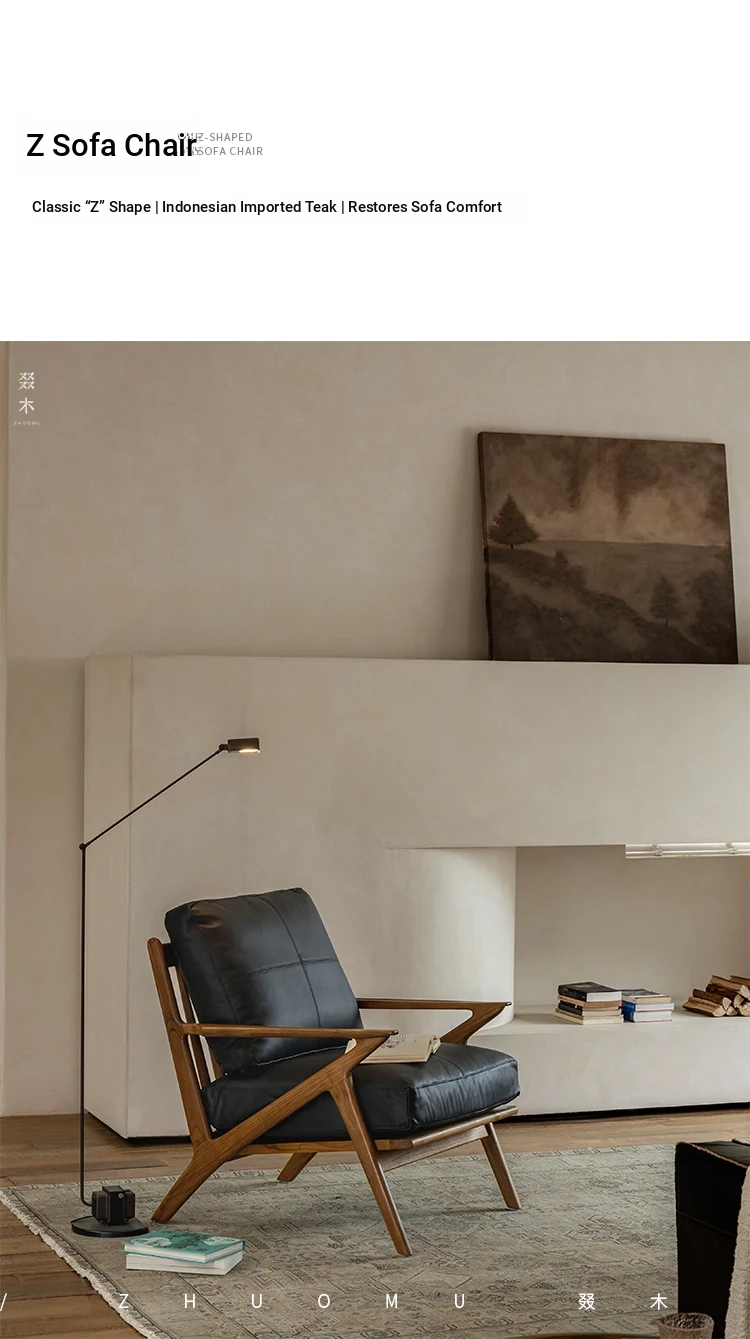 DuoMu | Vintage-Inspired Designer Solid Wood Teak Lounge Chair for Two – Perfect for Hotels & Guesthouses, Featuring Genuine Leather Upholstery