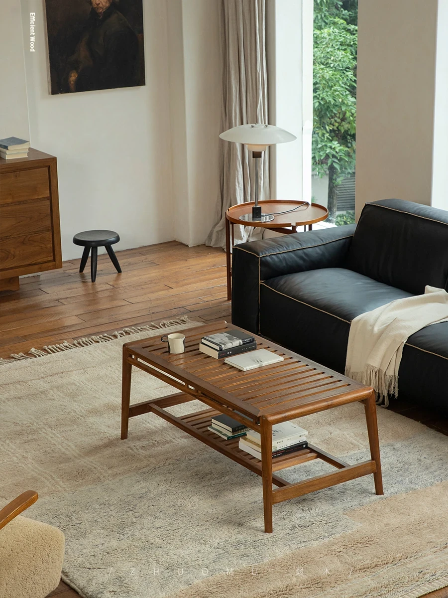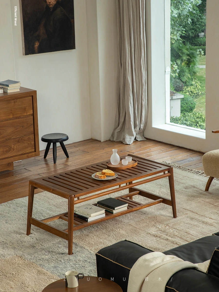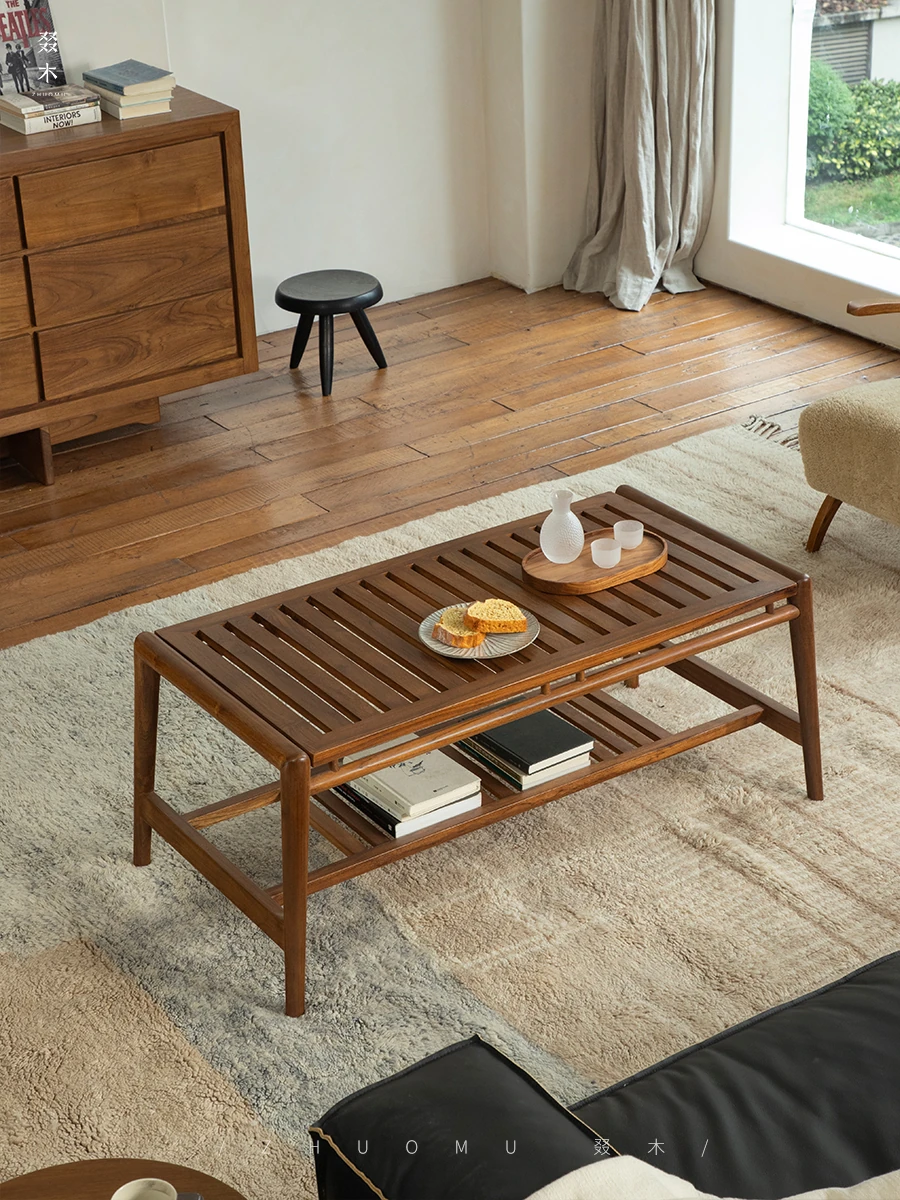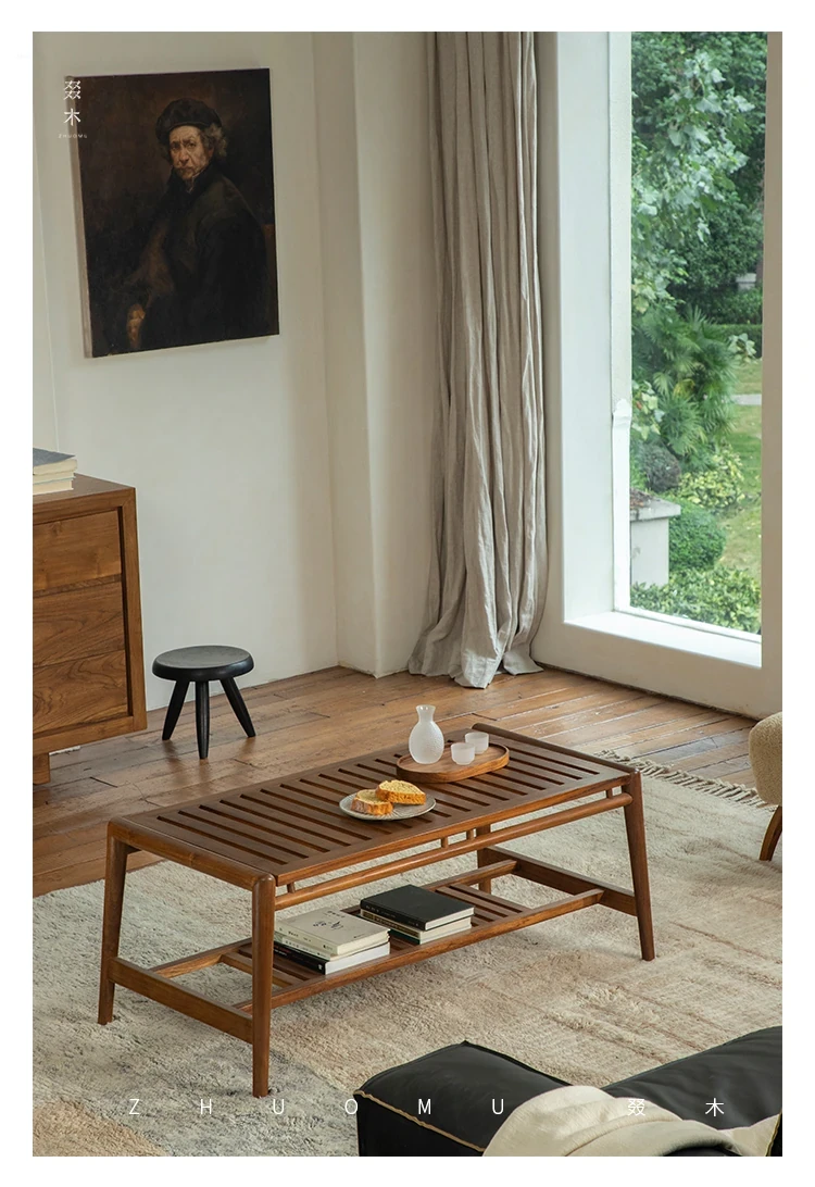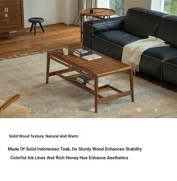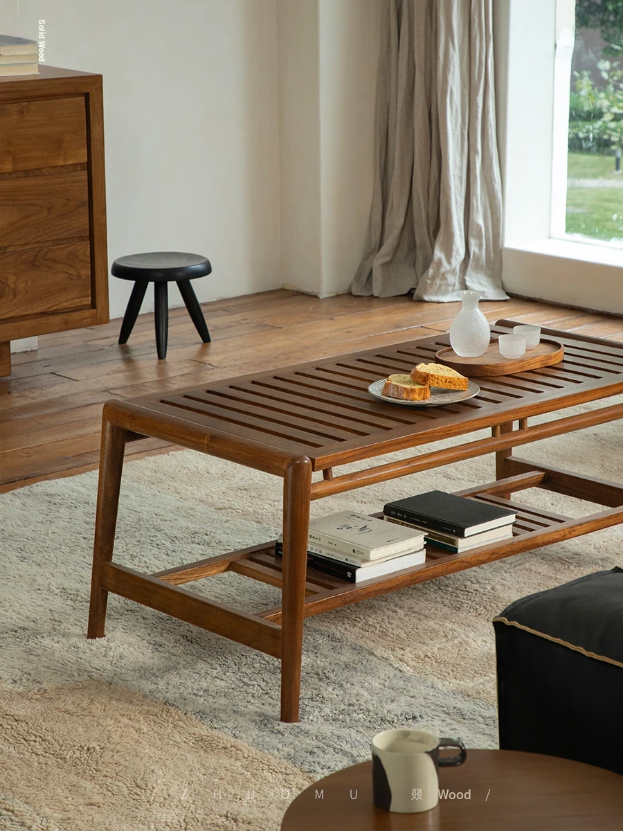 Zhumo | Teak Coffee Table | Wabi-Sabi Vintage Design for Creative Homestays and Hotels, Rectangular Living Room Tea Table for Home Use