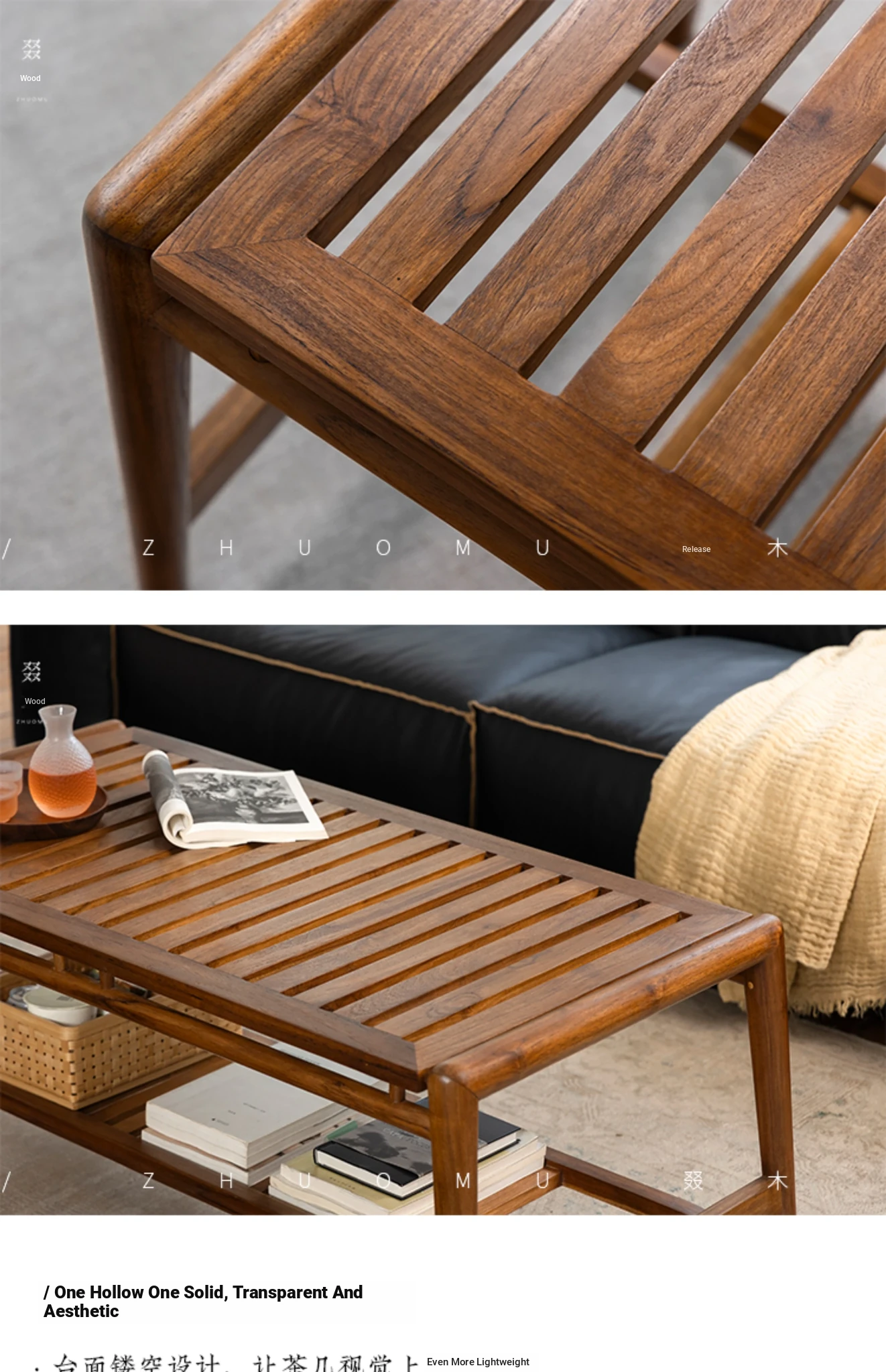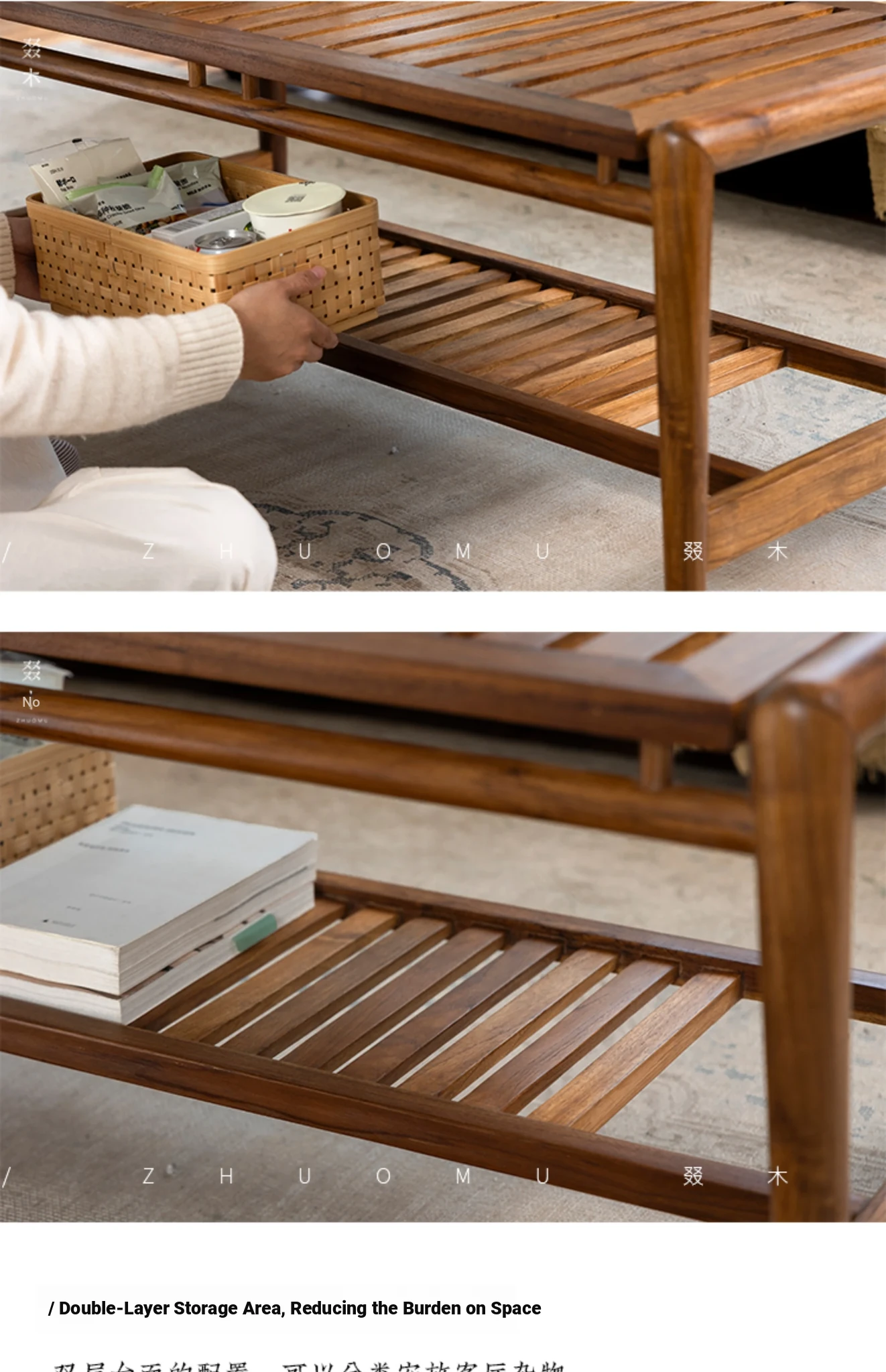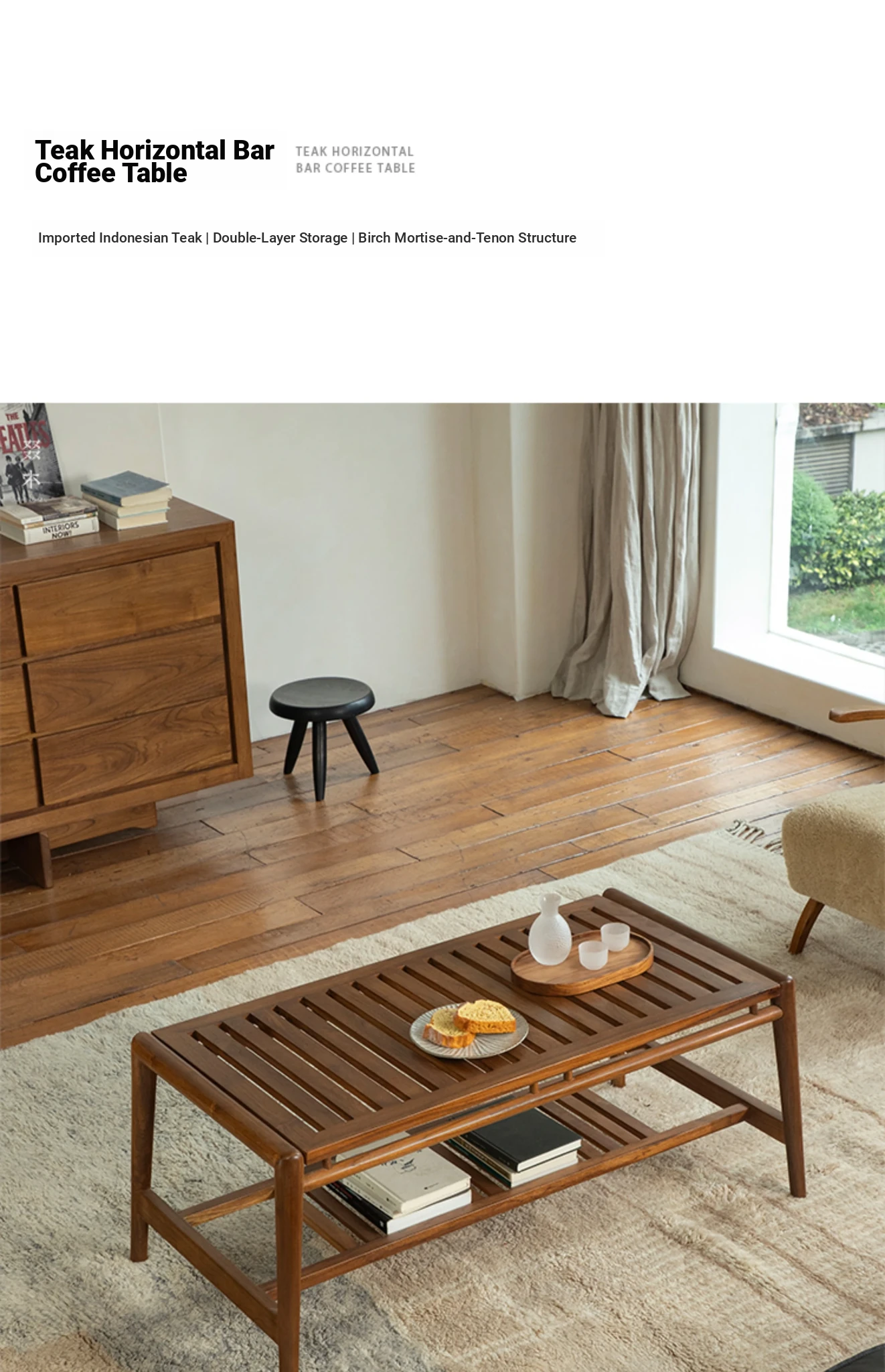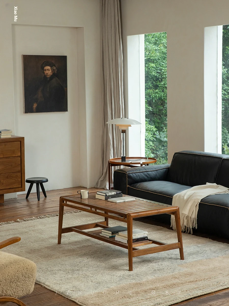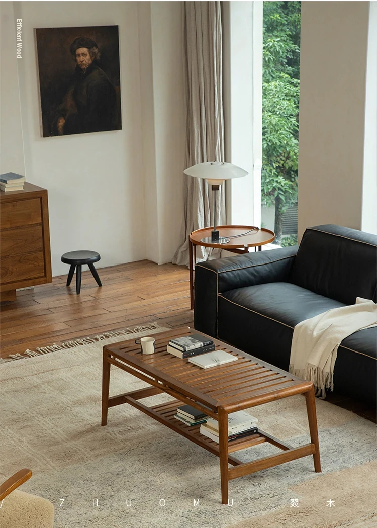 Zhumo | Teak Coffee Table | Wabi-Sabi Vintage Design for Creative Homestays and Hotels, Rectangular Living Room Tea Table for Home Use