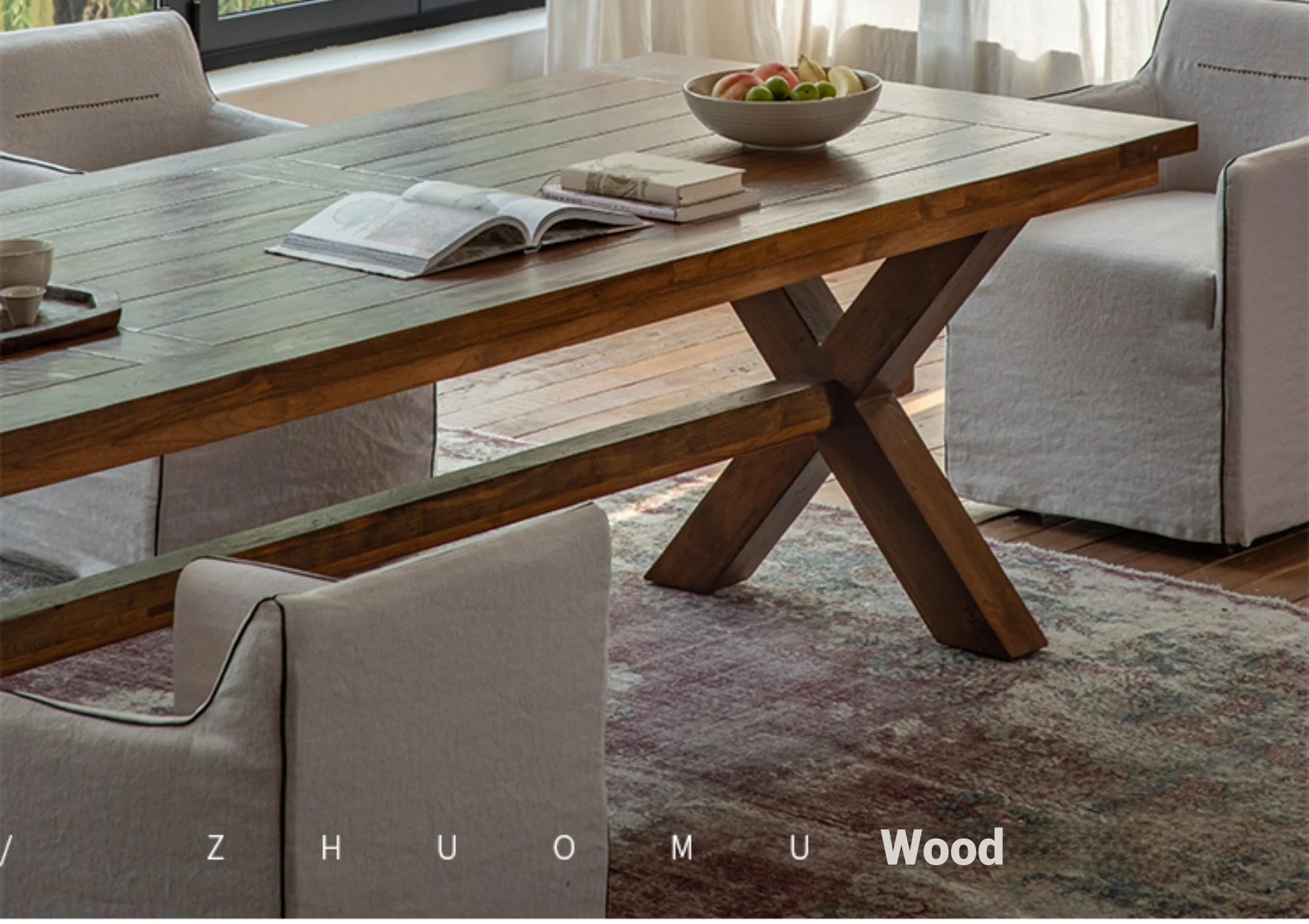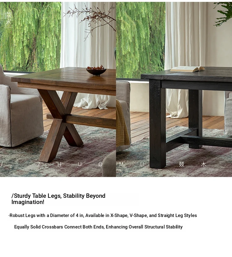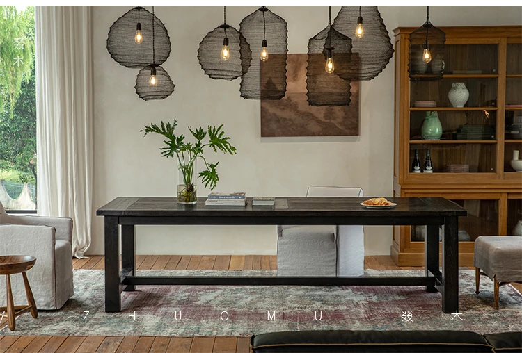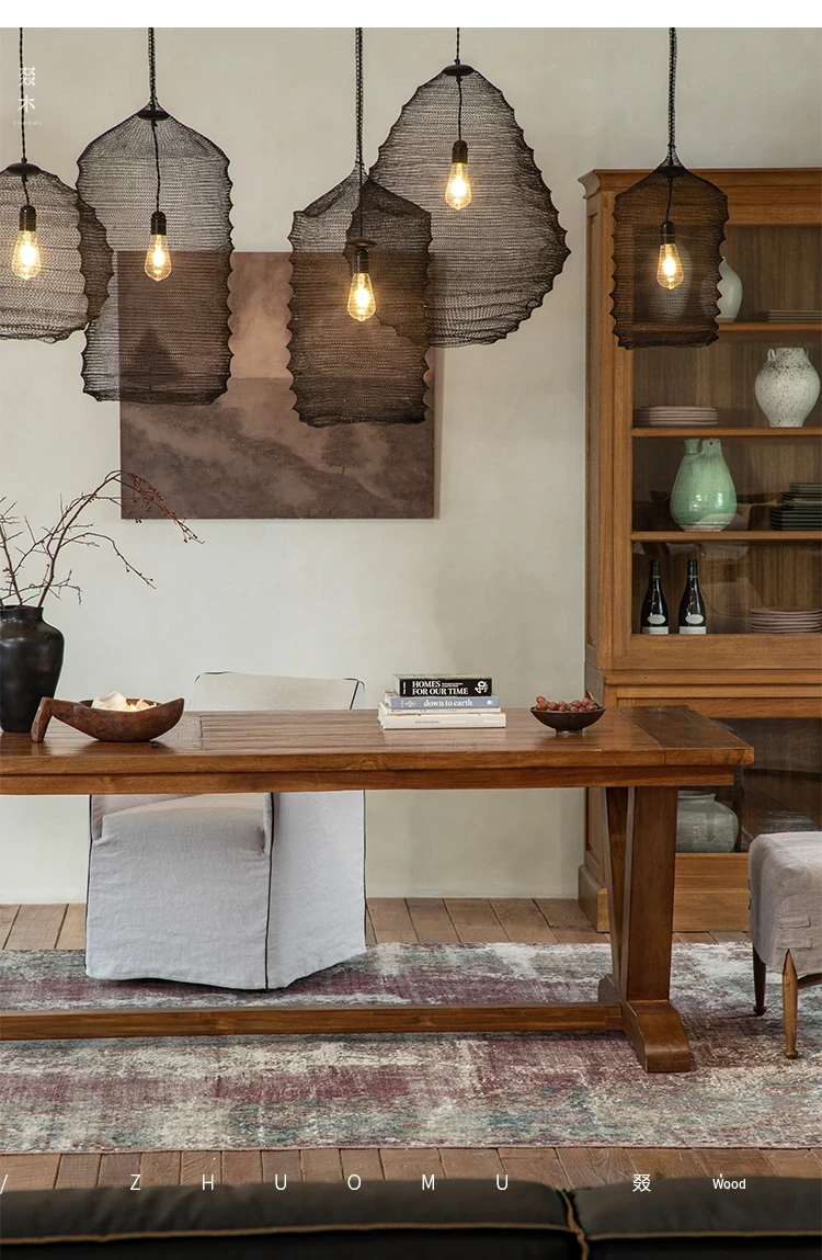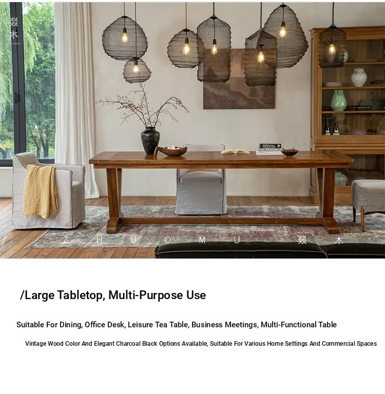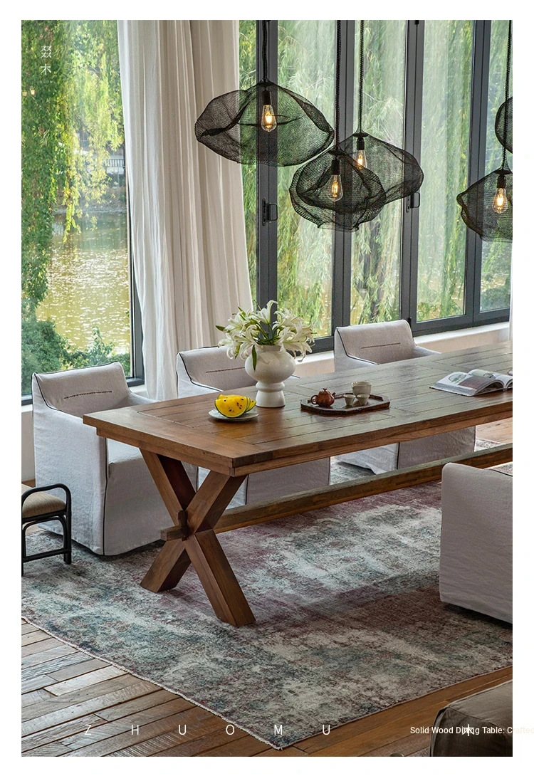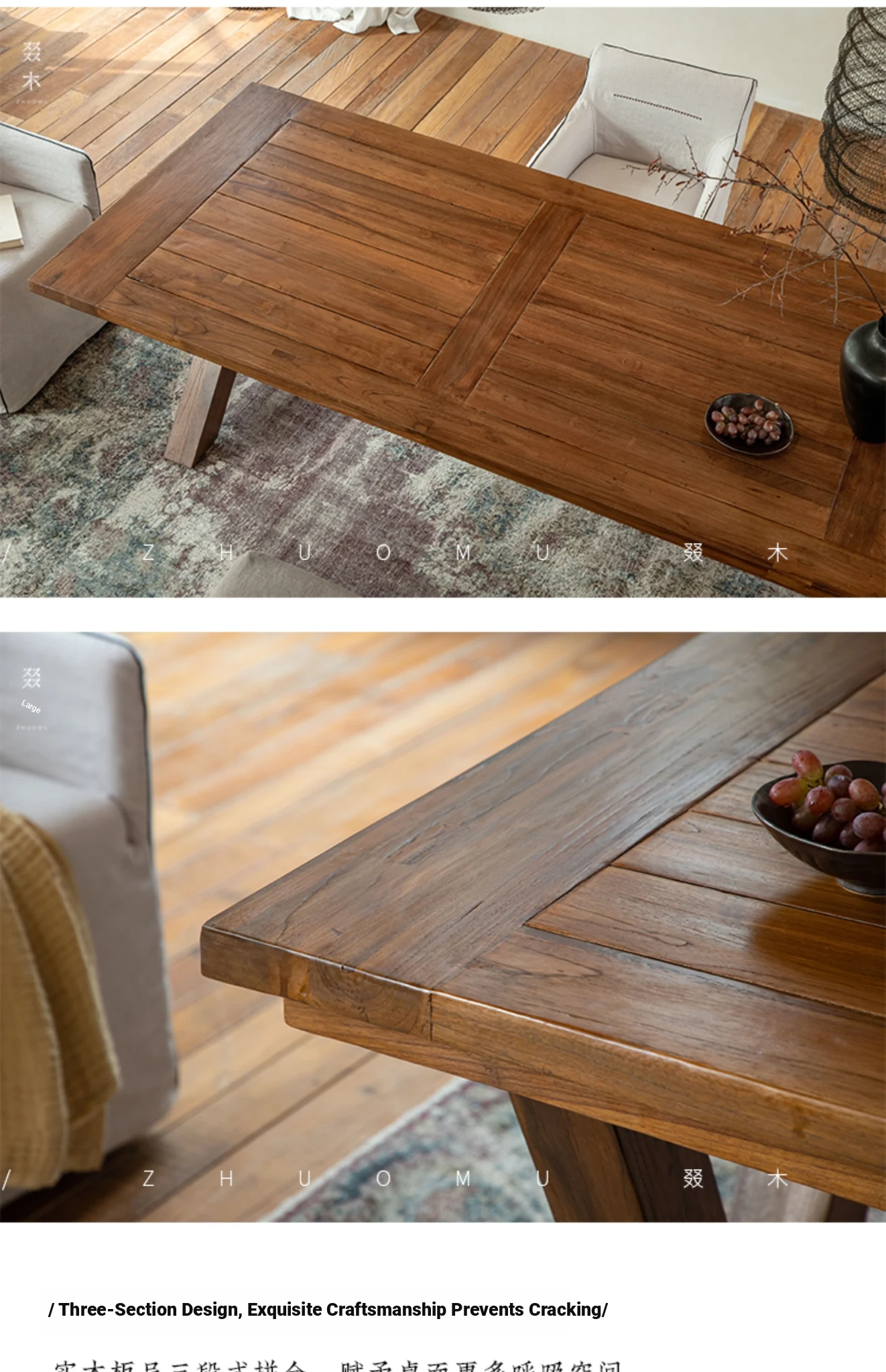 叕木 | 古典テイストのチーク材長方形テーブル 南洋ヴィンテージ風 全面無垢材 高級民宿・ホテル・別荘向け会議テーブル