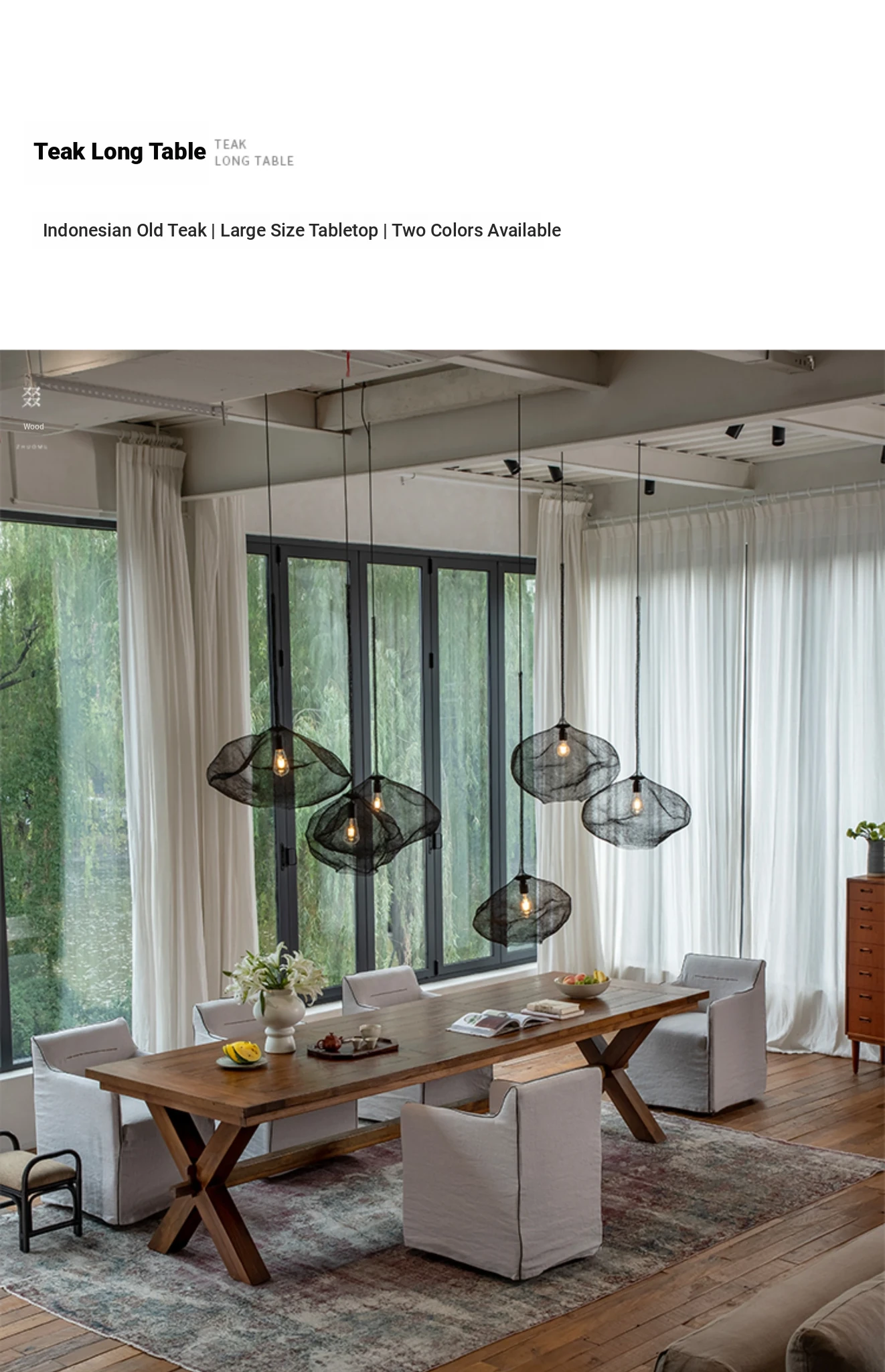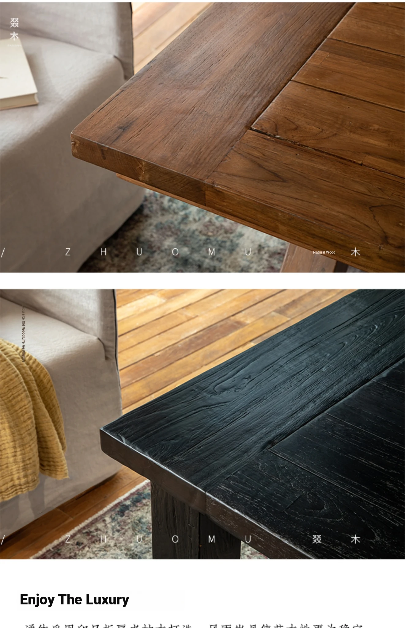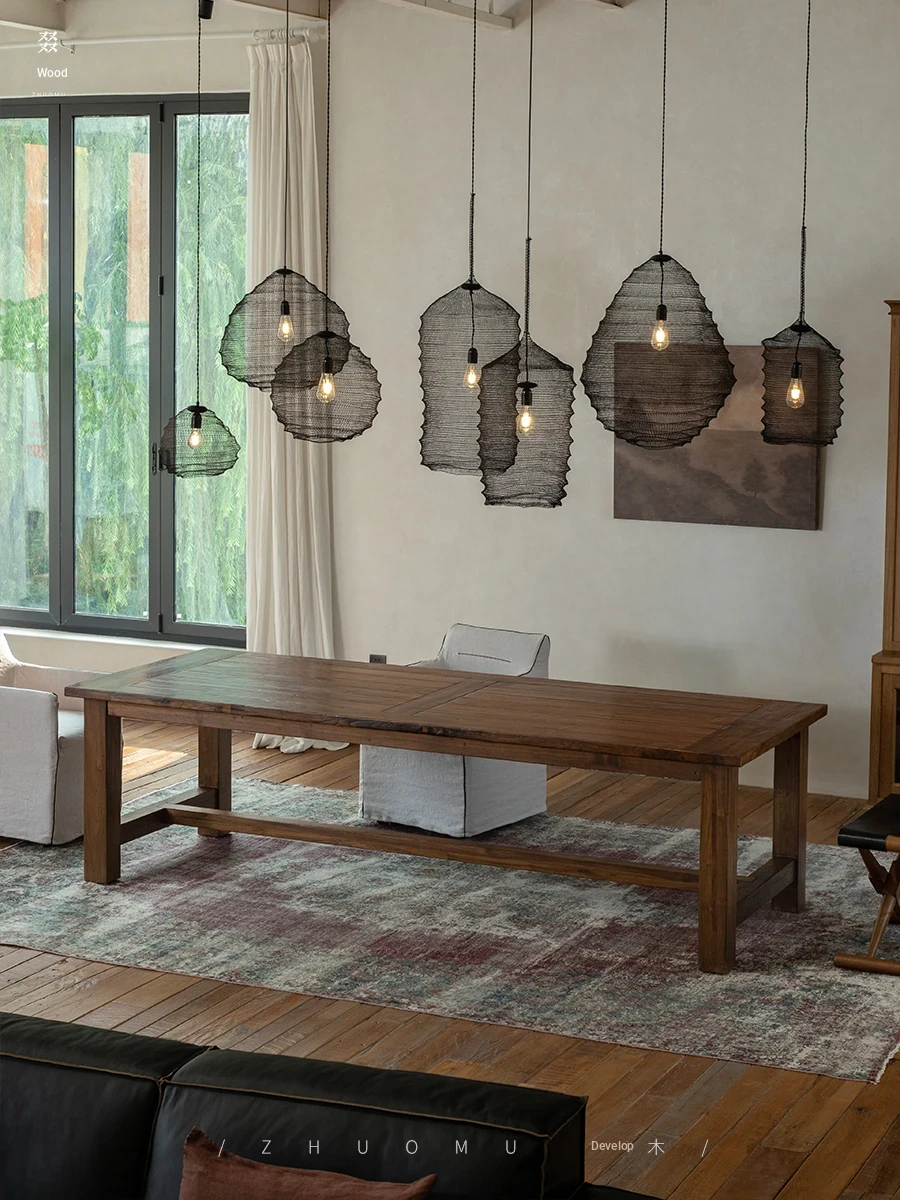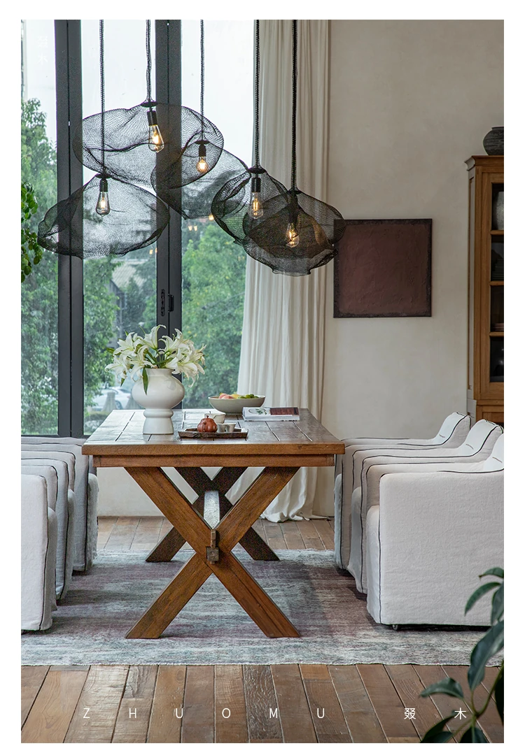 叕木 | 古典テイストのチーク材長方形テーブル 南洋ヴィンテージ風 全面無垢材 高級民宿・ホテル・別荘向け会議テーブル