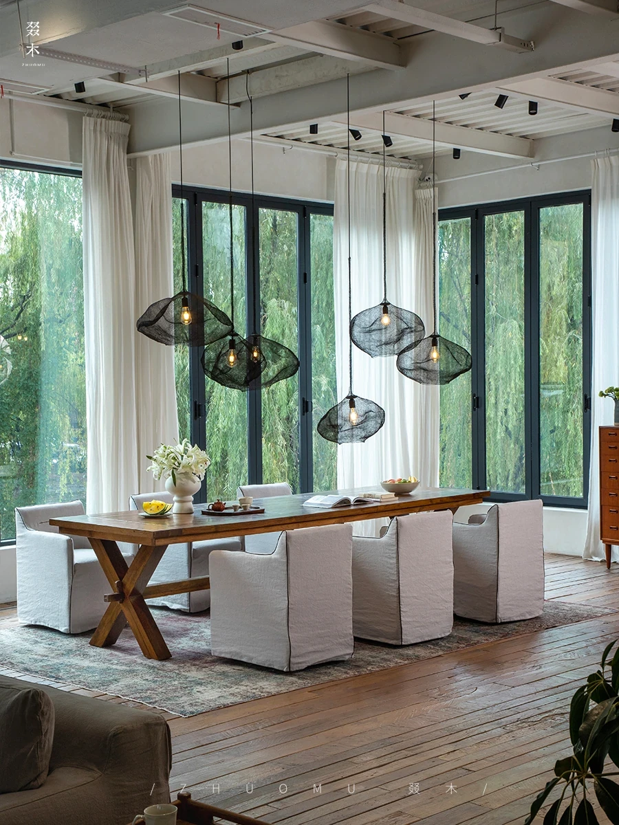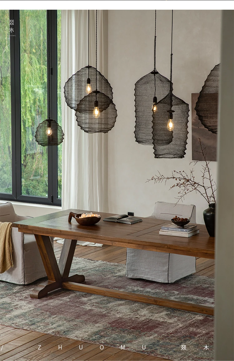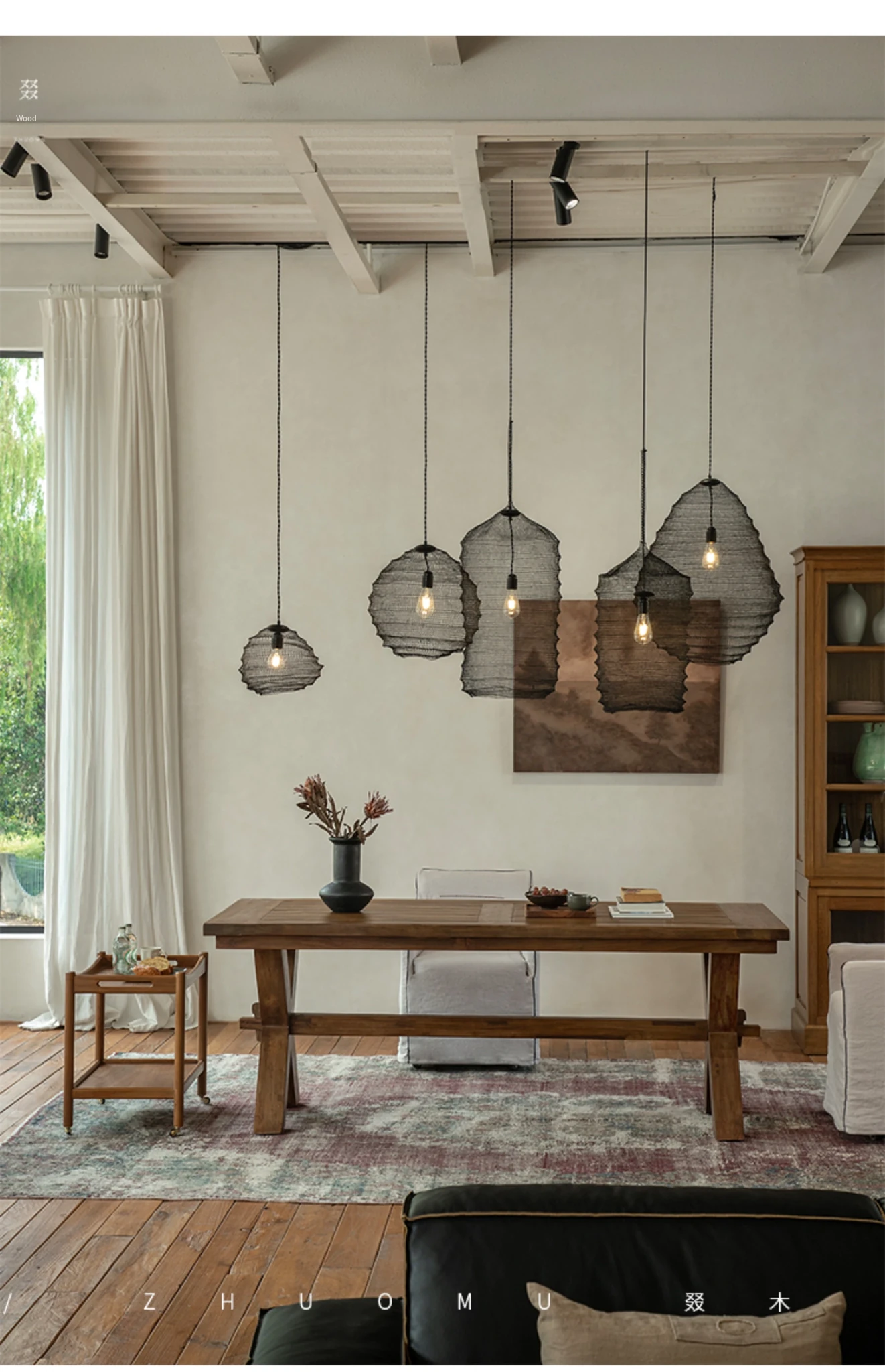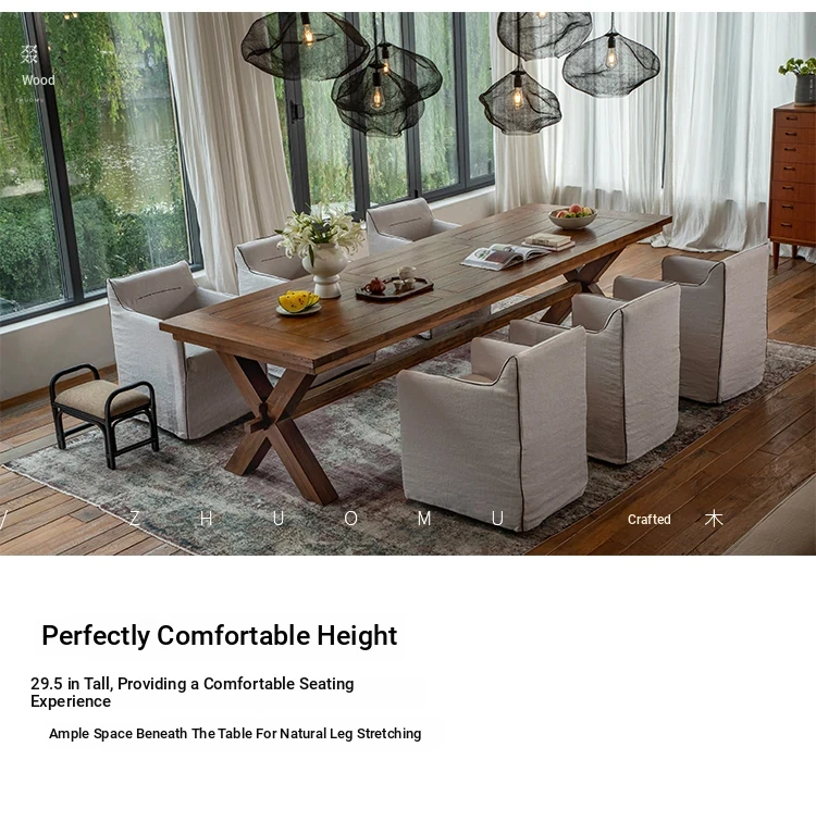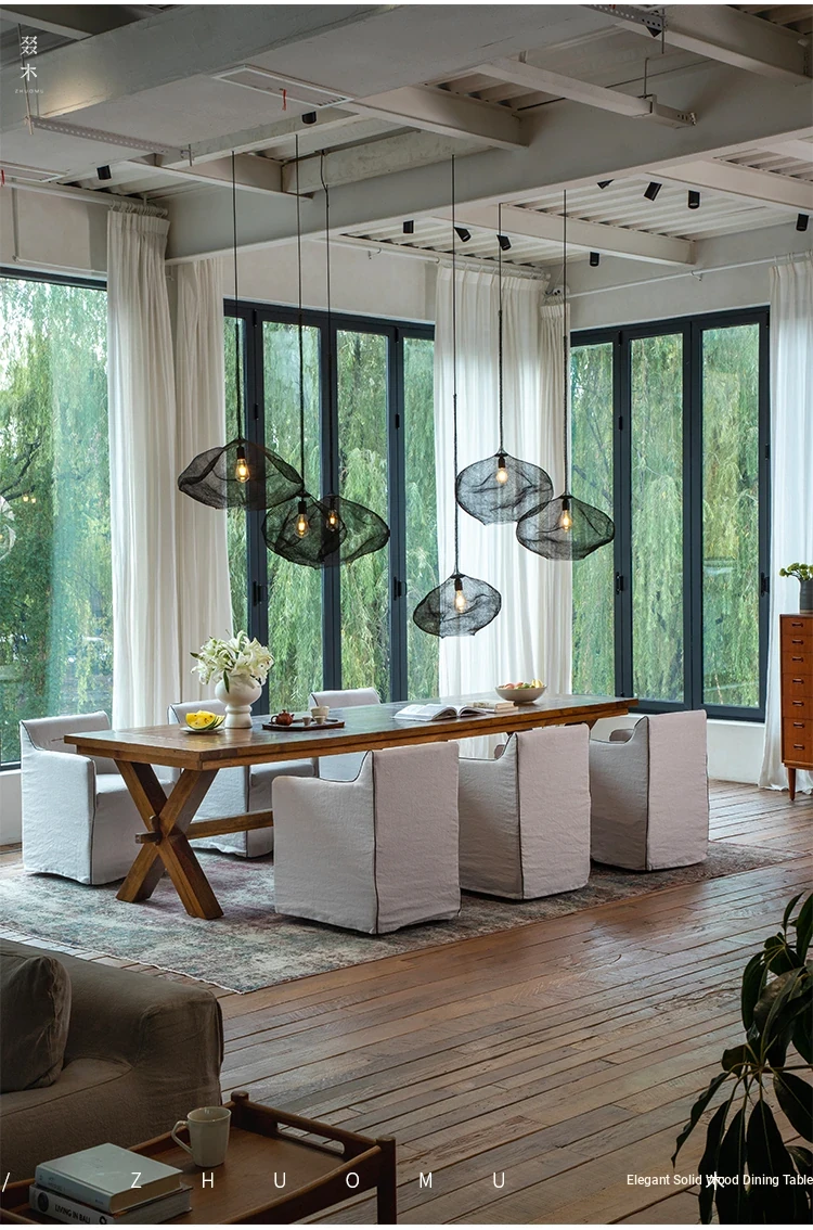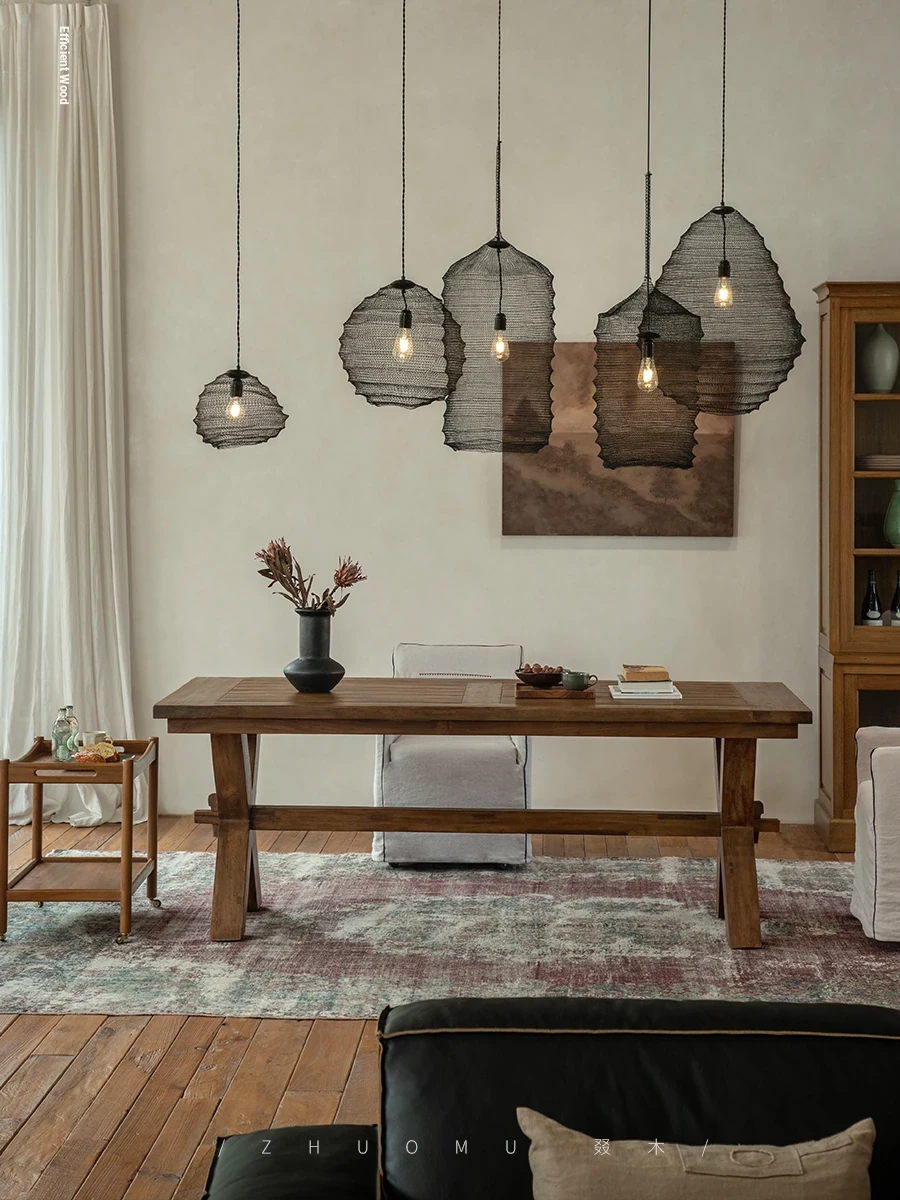 叕木 | 古典テイストのチーク材長方形テーブル 南洋ヴィンテージ風 全面無垢材 高級民宿・ホテル・別荘向け会議テーブル