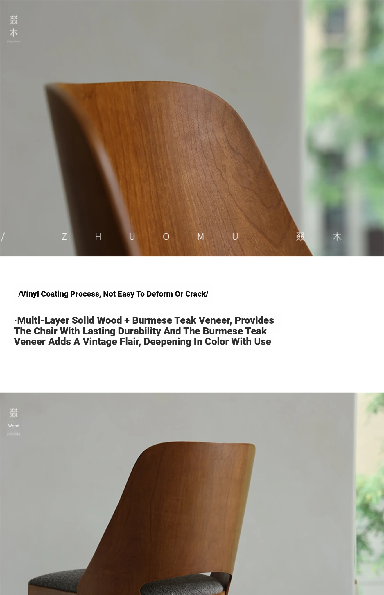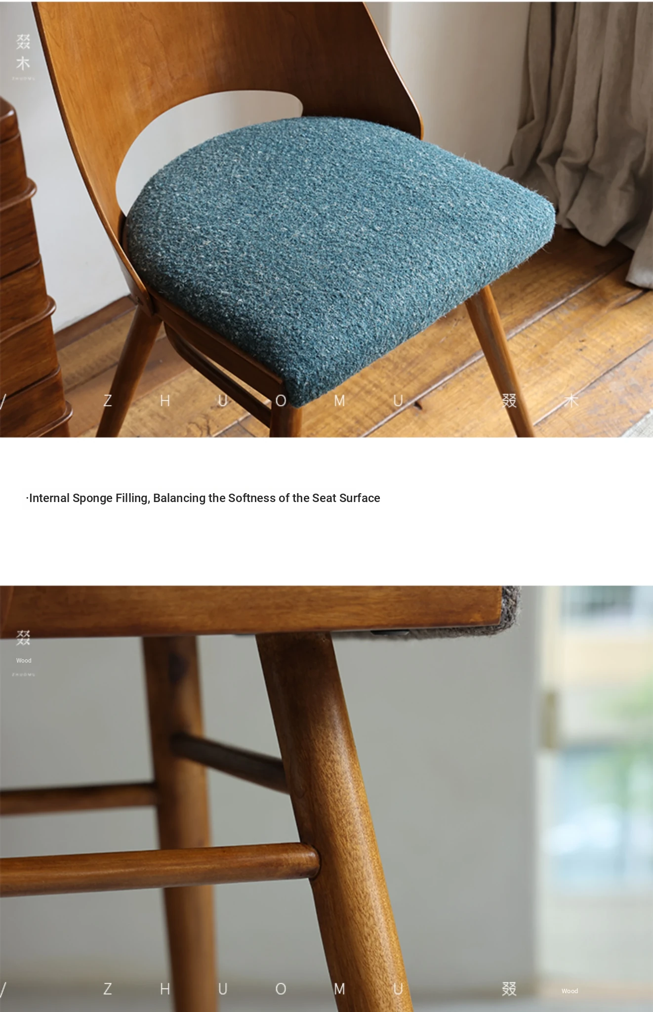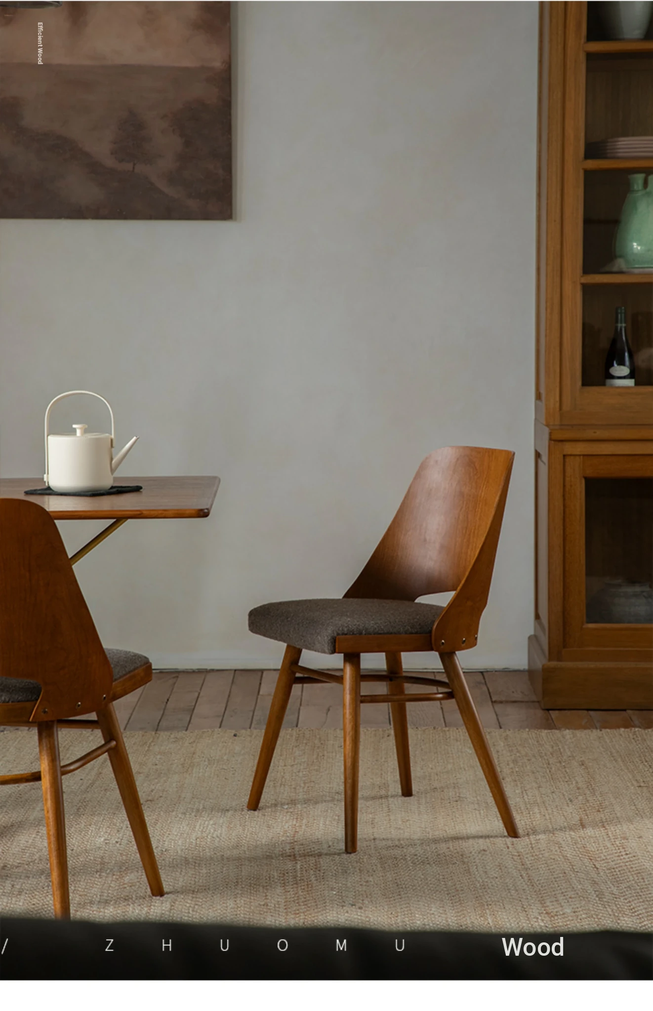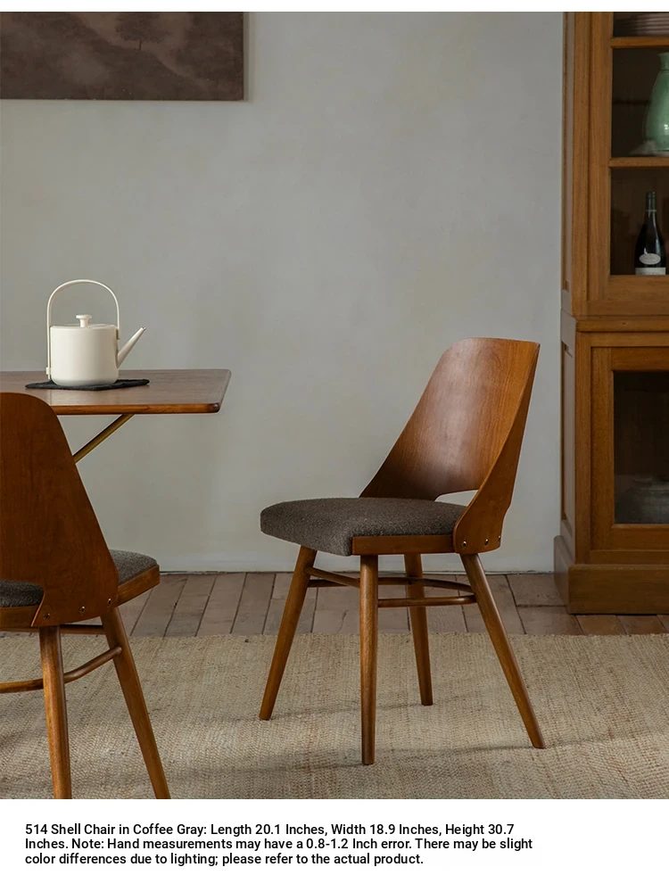 Zhuomu | 514 Shell Chair - French Vintage Designer Solid Wood Dining Chair for Cafés and Hotels, Perfect for Cozy Single Seating