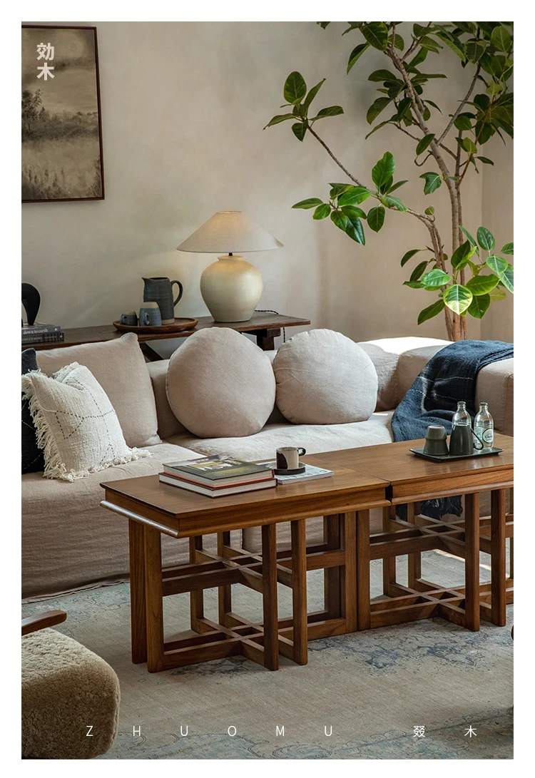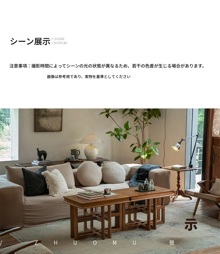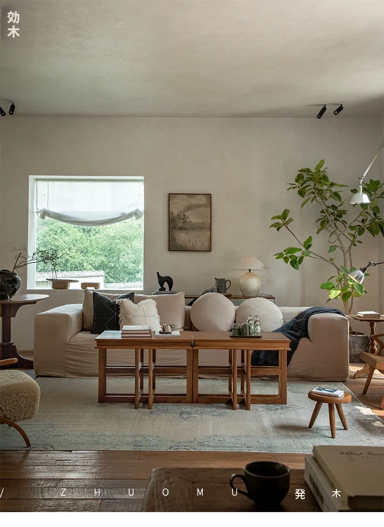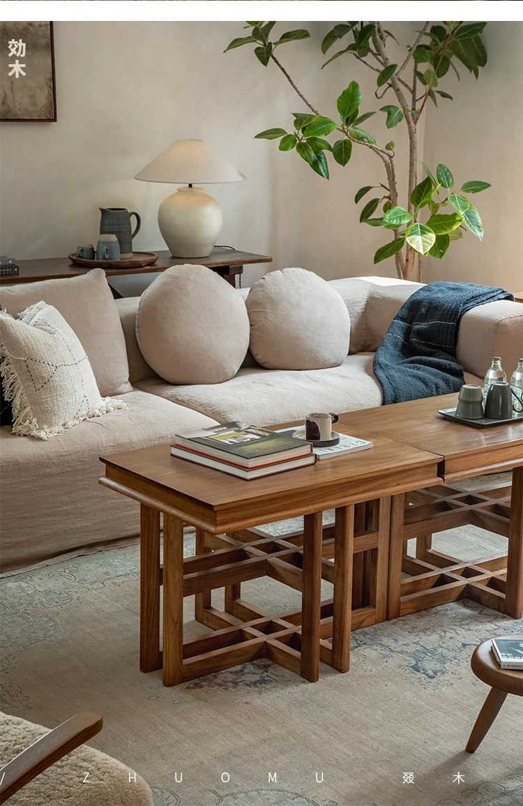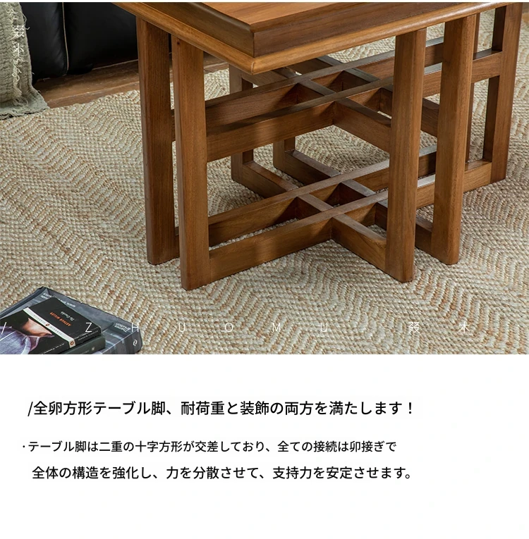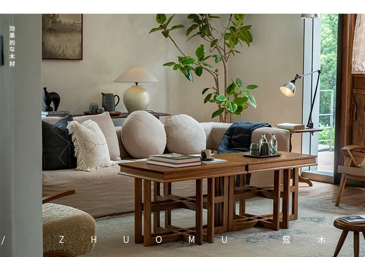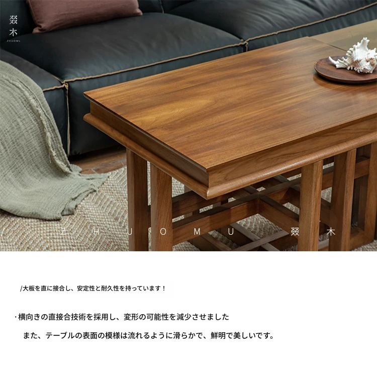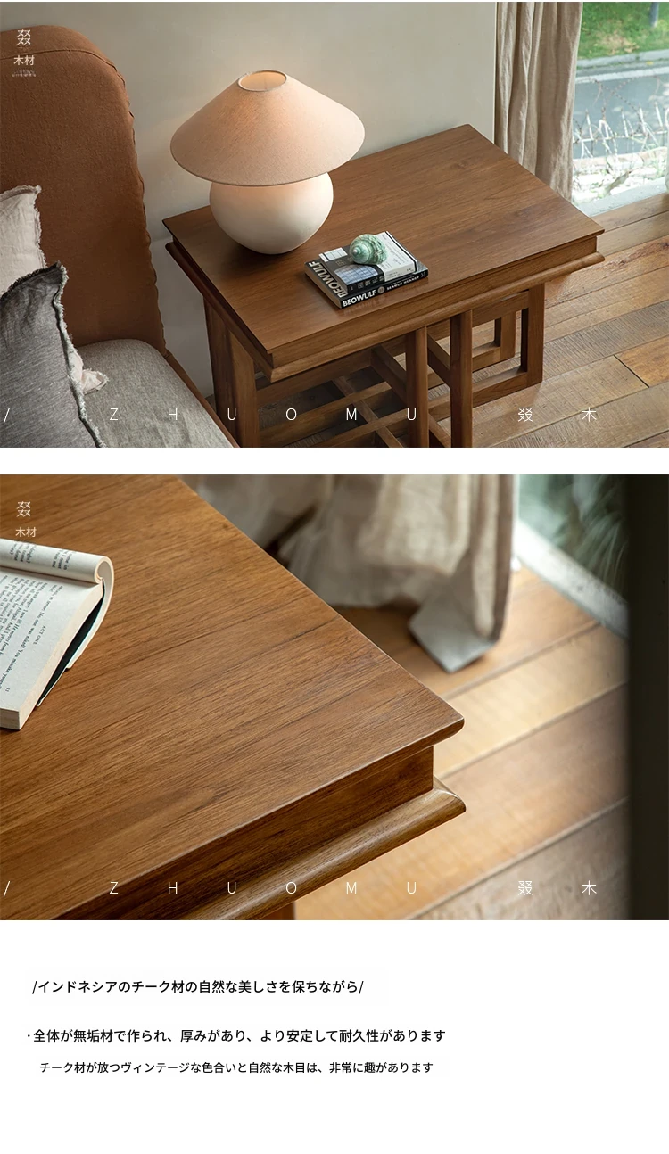 叕木のデザイン: インドネシア産ユカワ木を使用した和風の無垢材コーヒーテーブル。シンプルで美しい侘寂のスタイル、創造的な収納テーブルとしても最適です。どんなインテリアにも調和する一品!