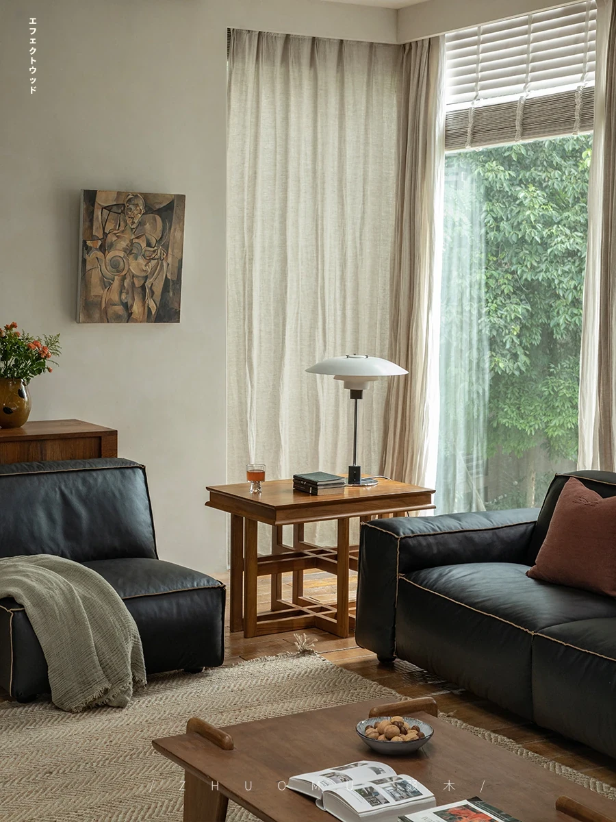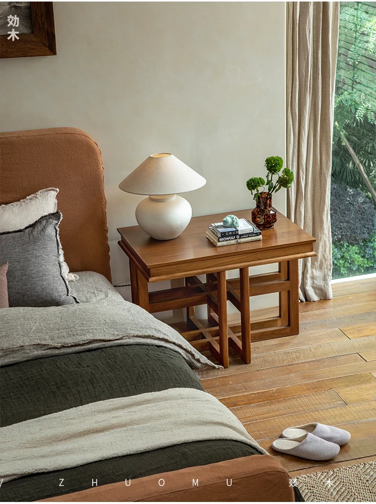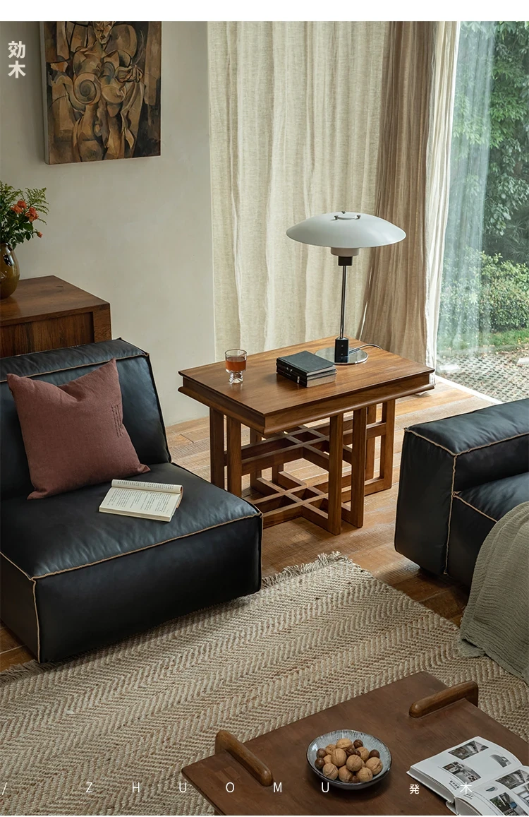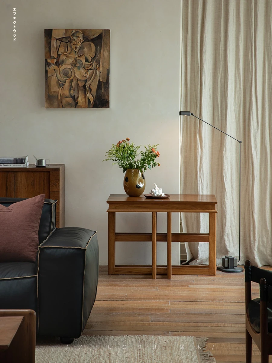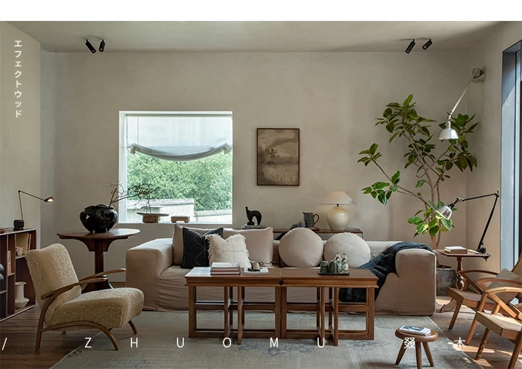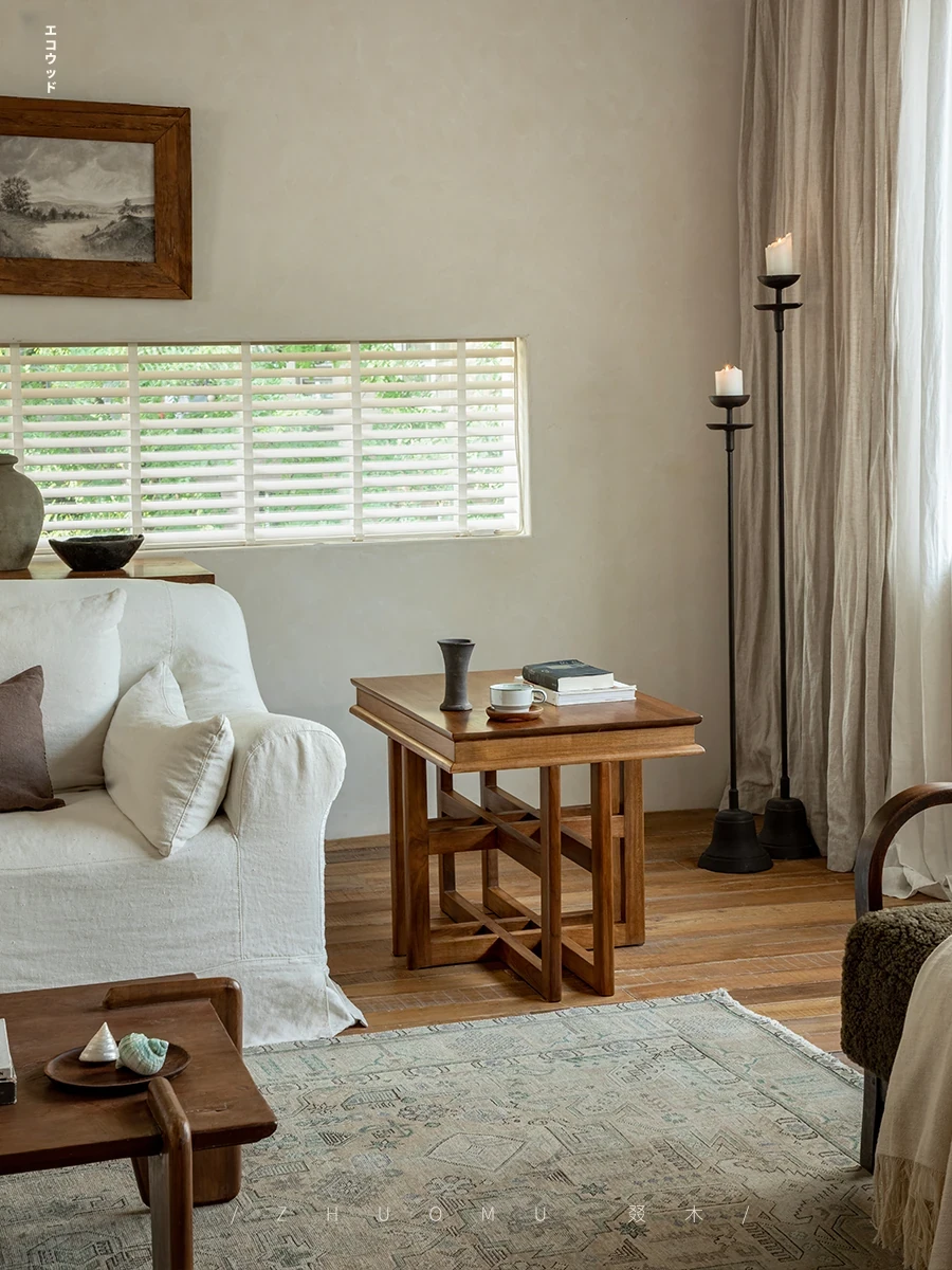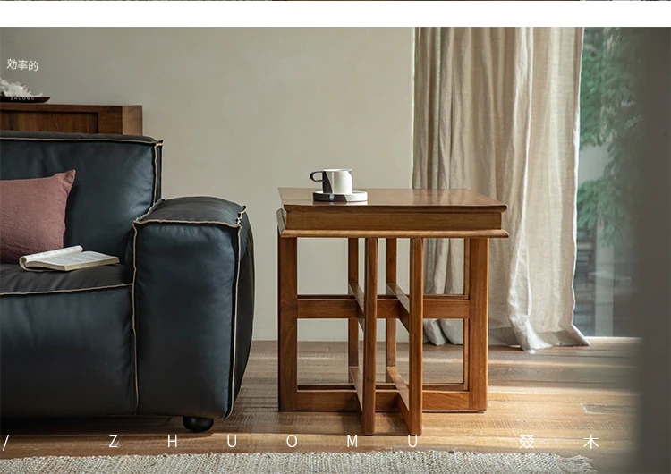 叕木のデザイン: インドネシア産ユカワ木を使用した和風の無垢材コーヒーテーブル。シンプルで美しい侘寂のスタイル、創造的な収納テーブルとしても最適です。どんなインテリアにも調和する一品!