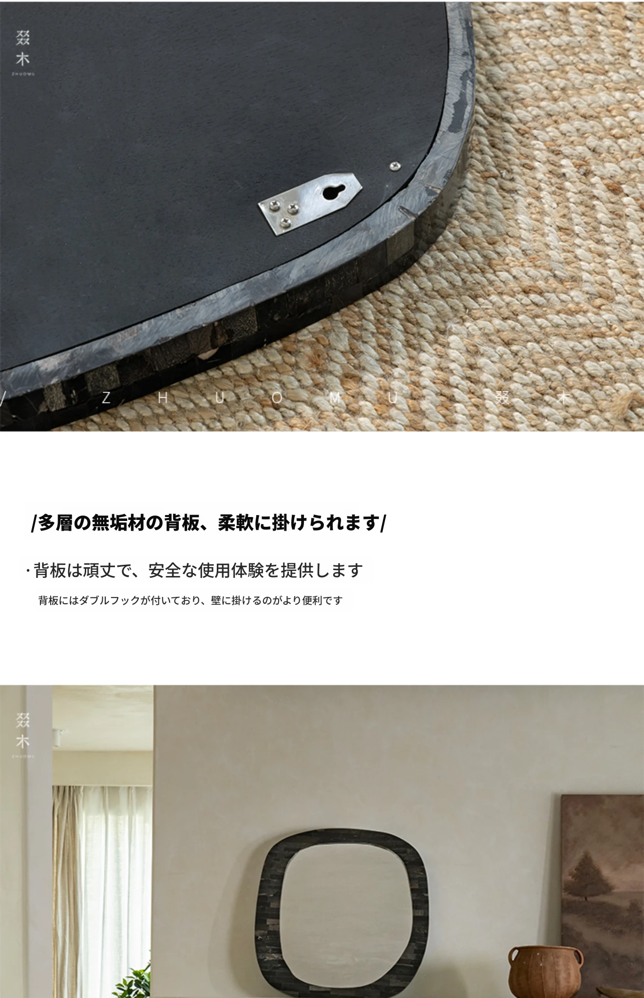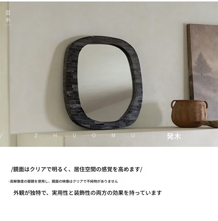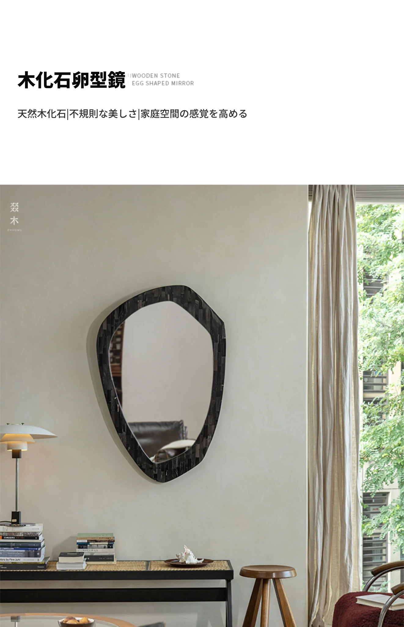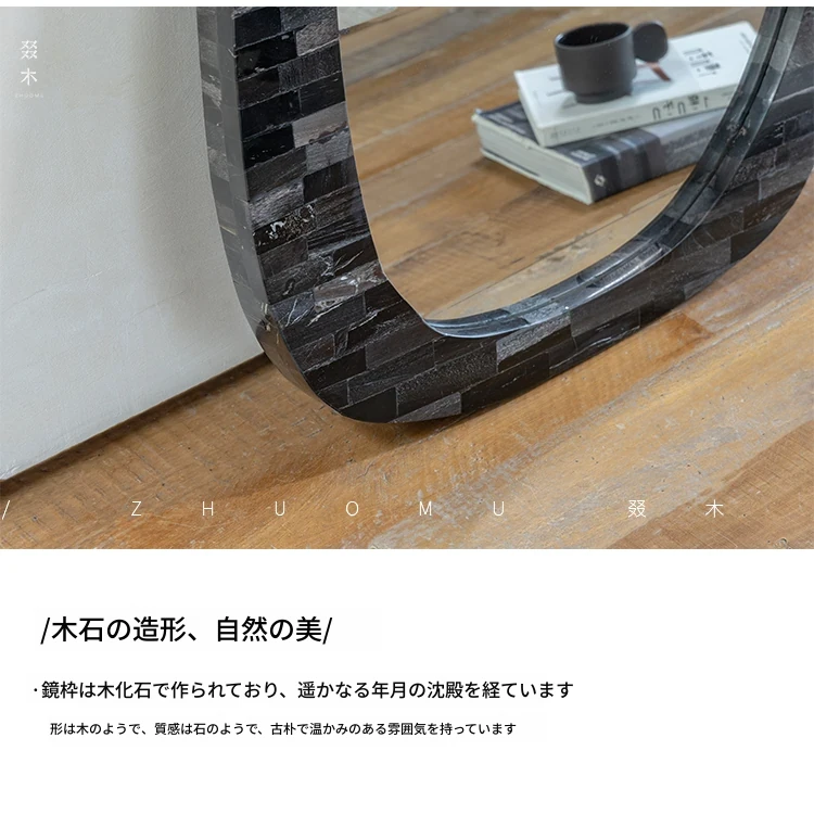 叕木の木化石ミラー|天然石材を使用したユニークなデザインのスペースデコレーションミラー。寝室やメイクアップ、玄関に最適なオシャレなアイテム!