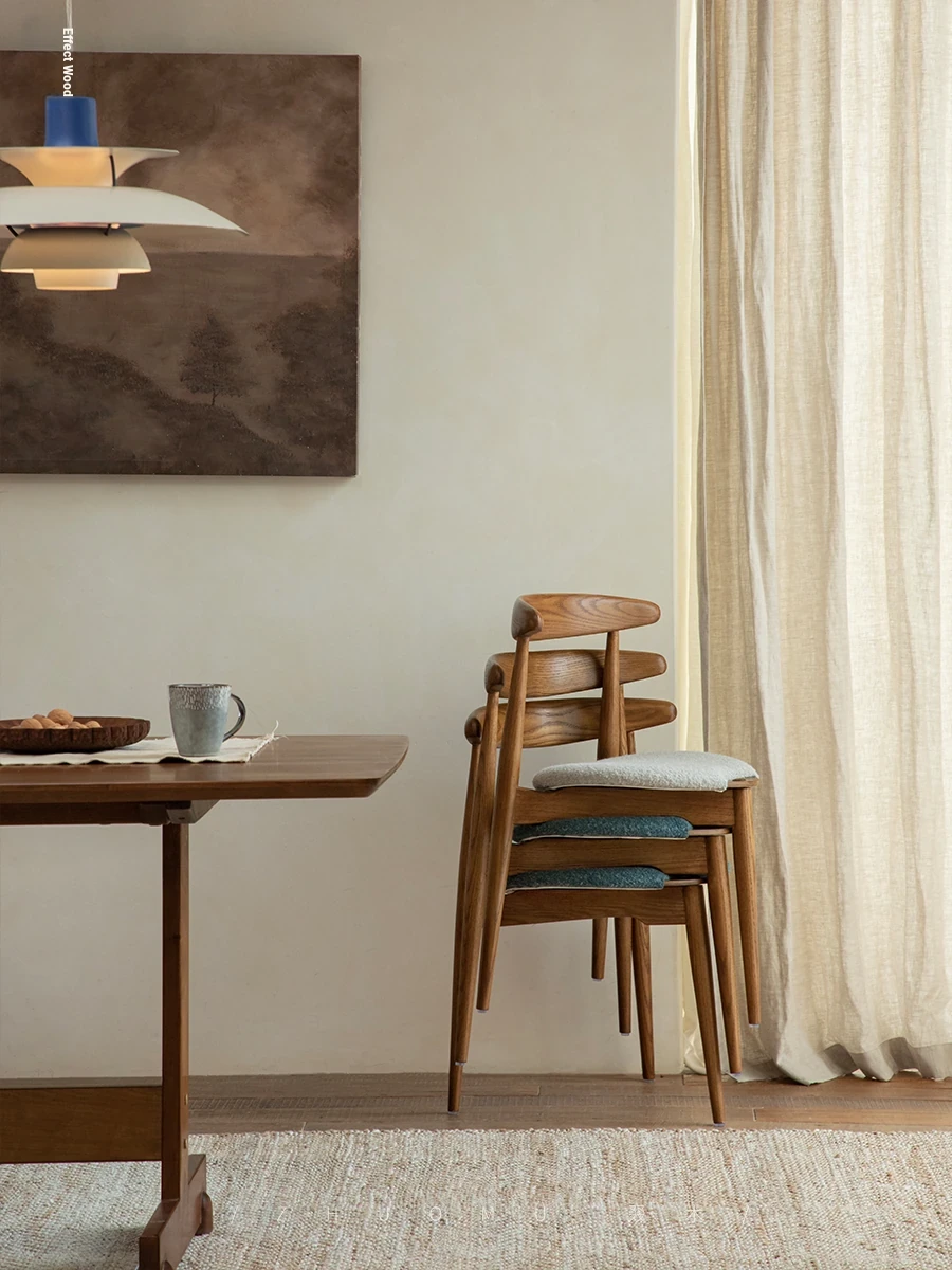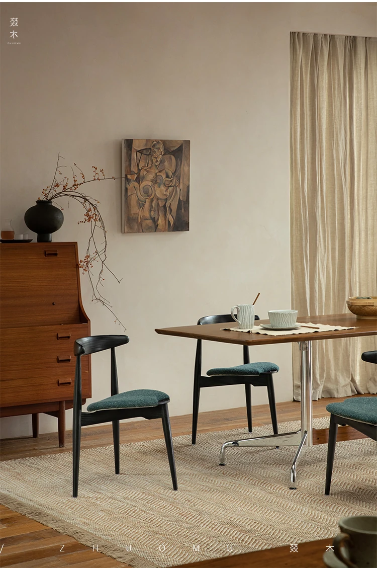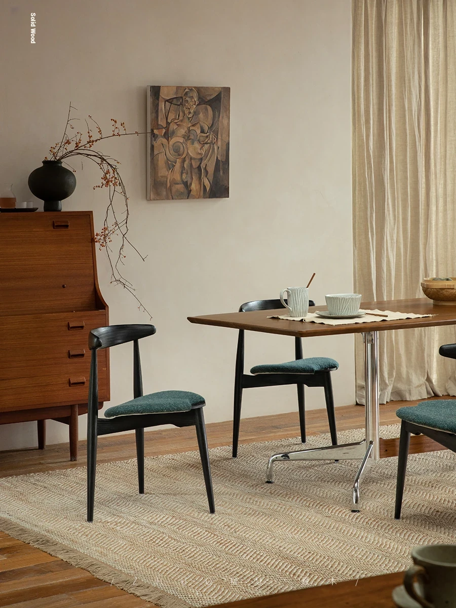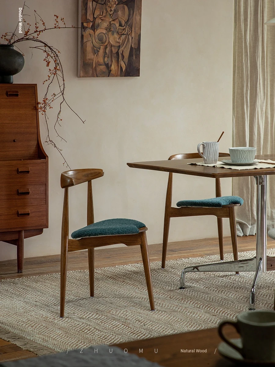 ZhuoMu | Vintage French Revival Dining Chair - Designer's Creative Study Chair, Stackable with Soft Cushion and Solid Wood Construction. Perfect Blend of Elegance and Comfort for Your Home!