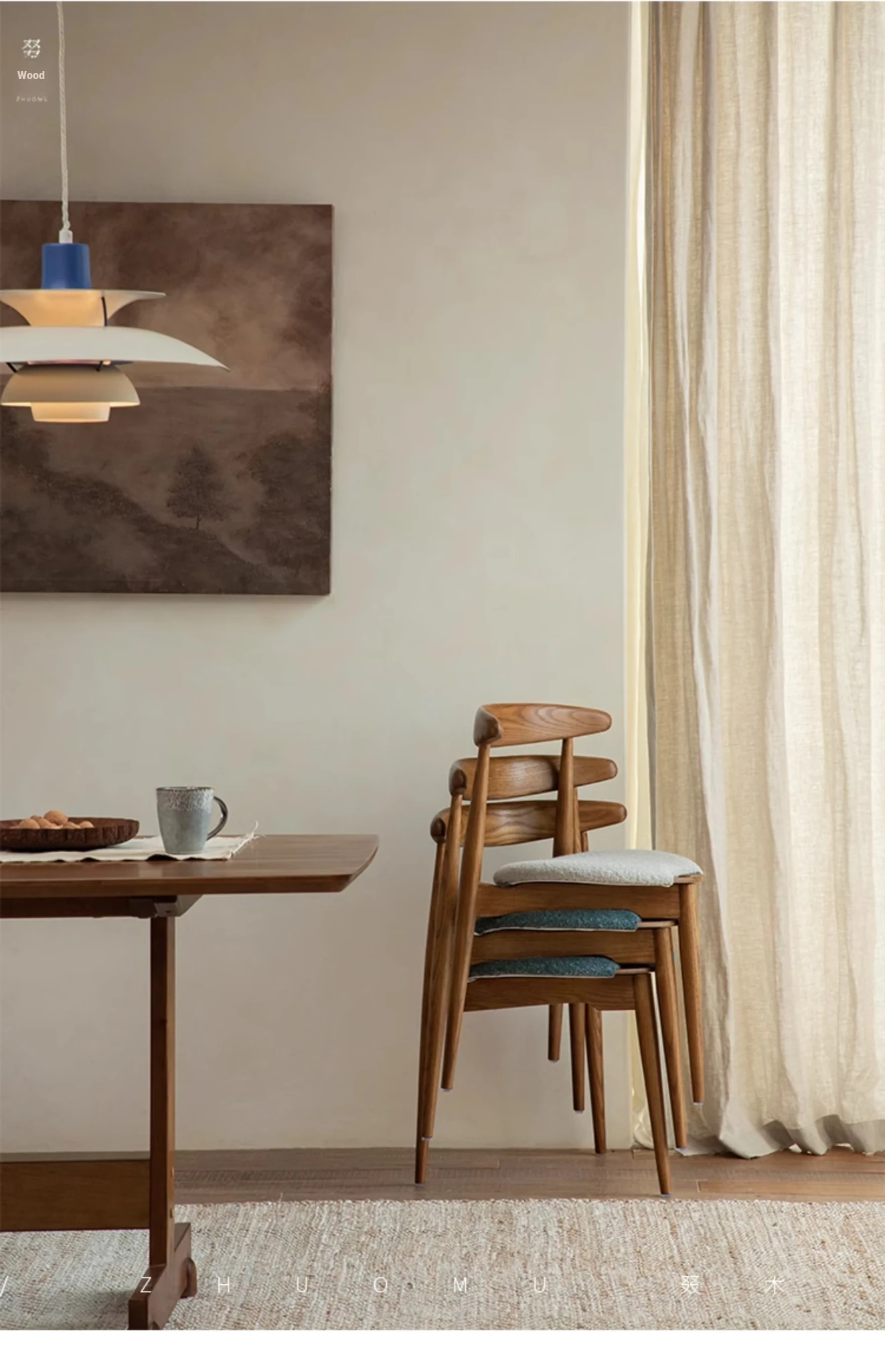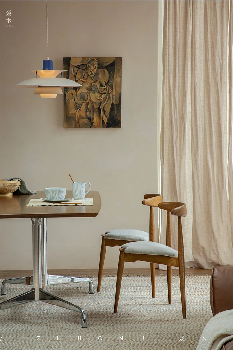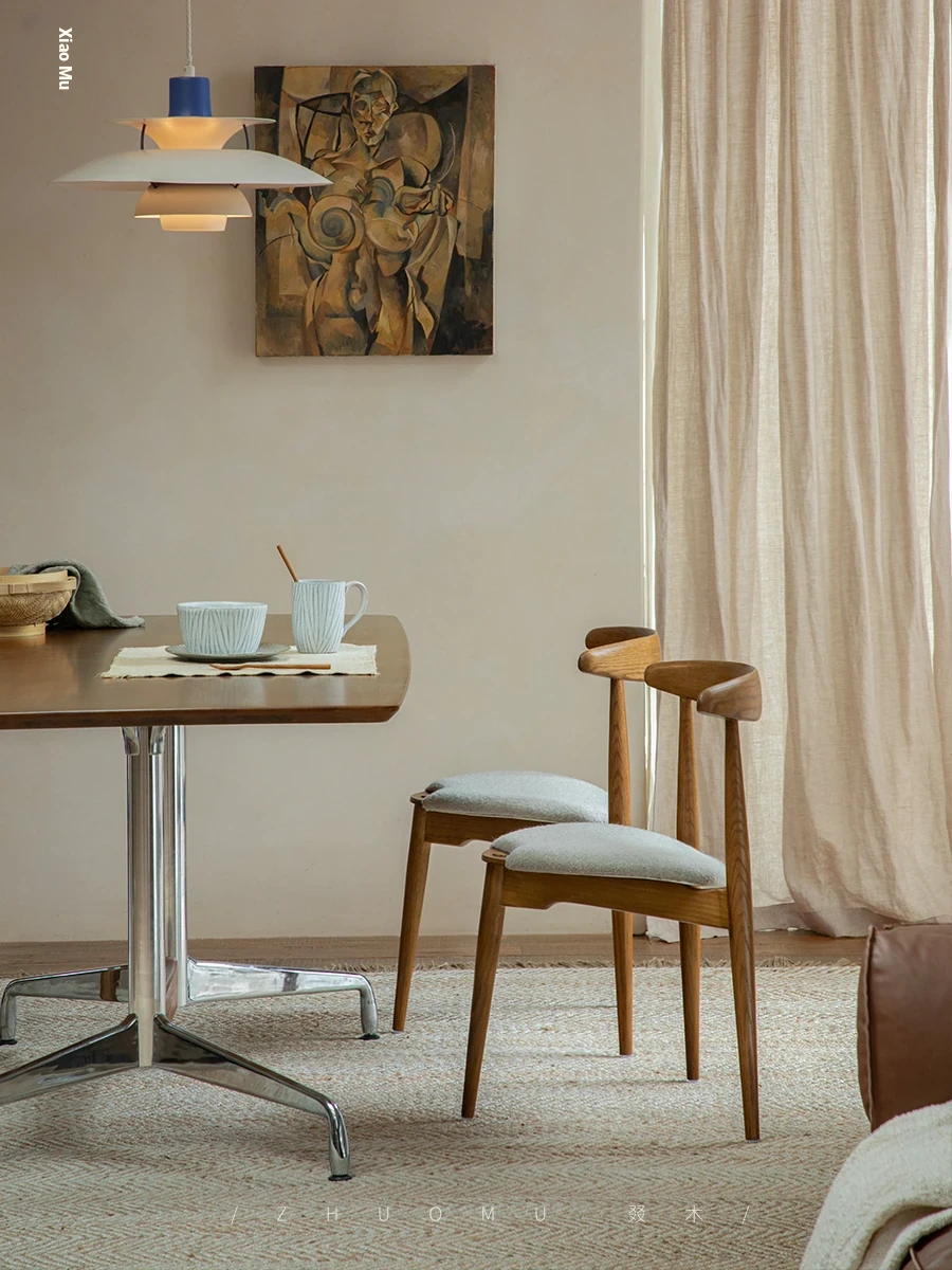 ZhuoMu | Vintage French Revival Dining Chair - Designer's Creative Study Chair, Stackable with Soft Cushion and Solid Wood Construction. Perfect Blend of Elegance and Comfort for Your Home!