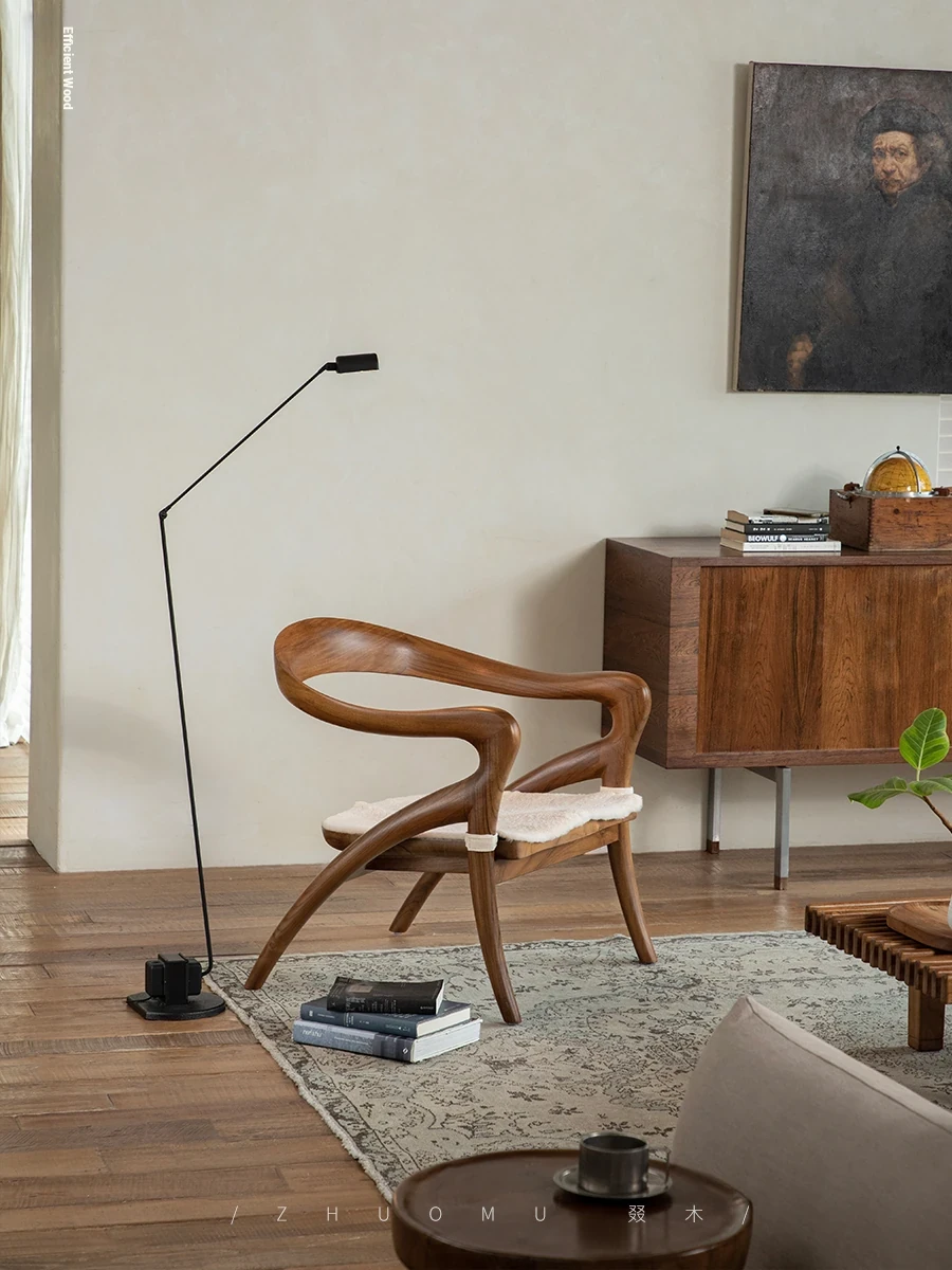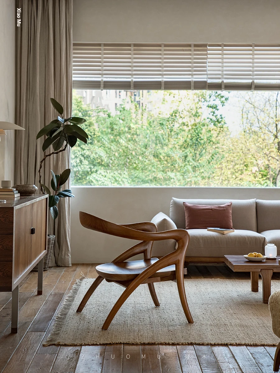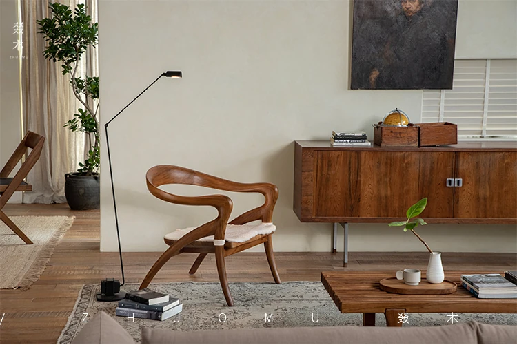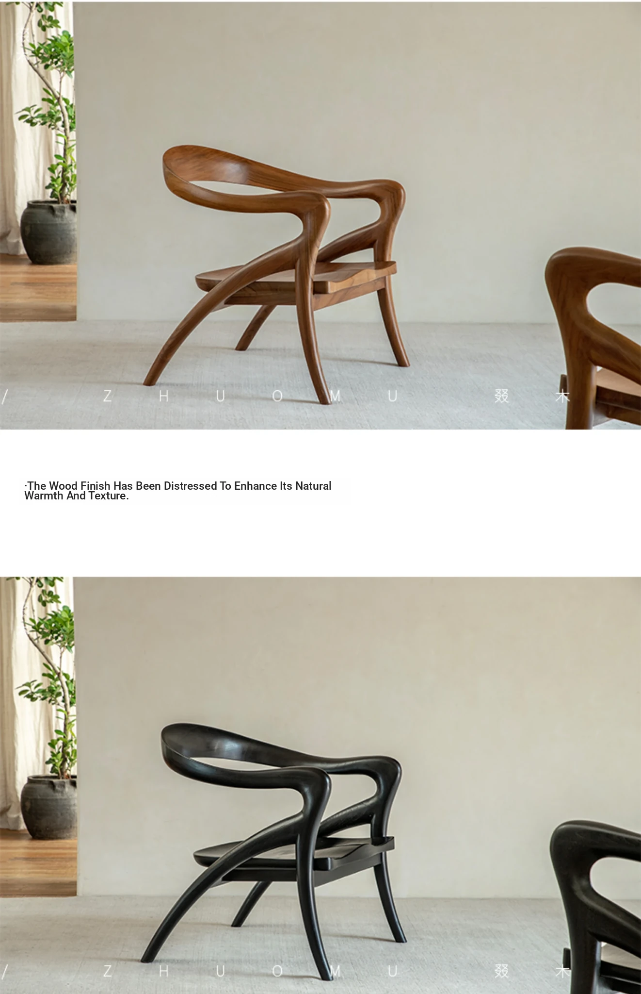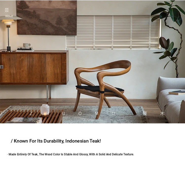 ZhuoMu | Vintage-Inspired Designer Lounge Chair for Wabi-Sabi Aesthetics, Perfect for Tea Rooms and Airbnb Spaces – Solid Teak Single Sofa Chair, Fully Handmade and Unique