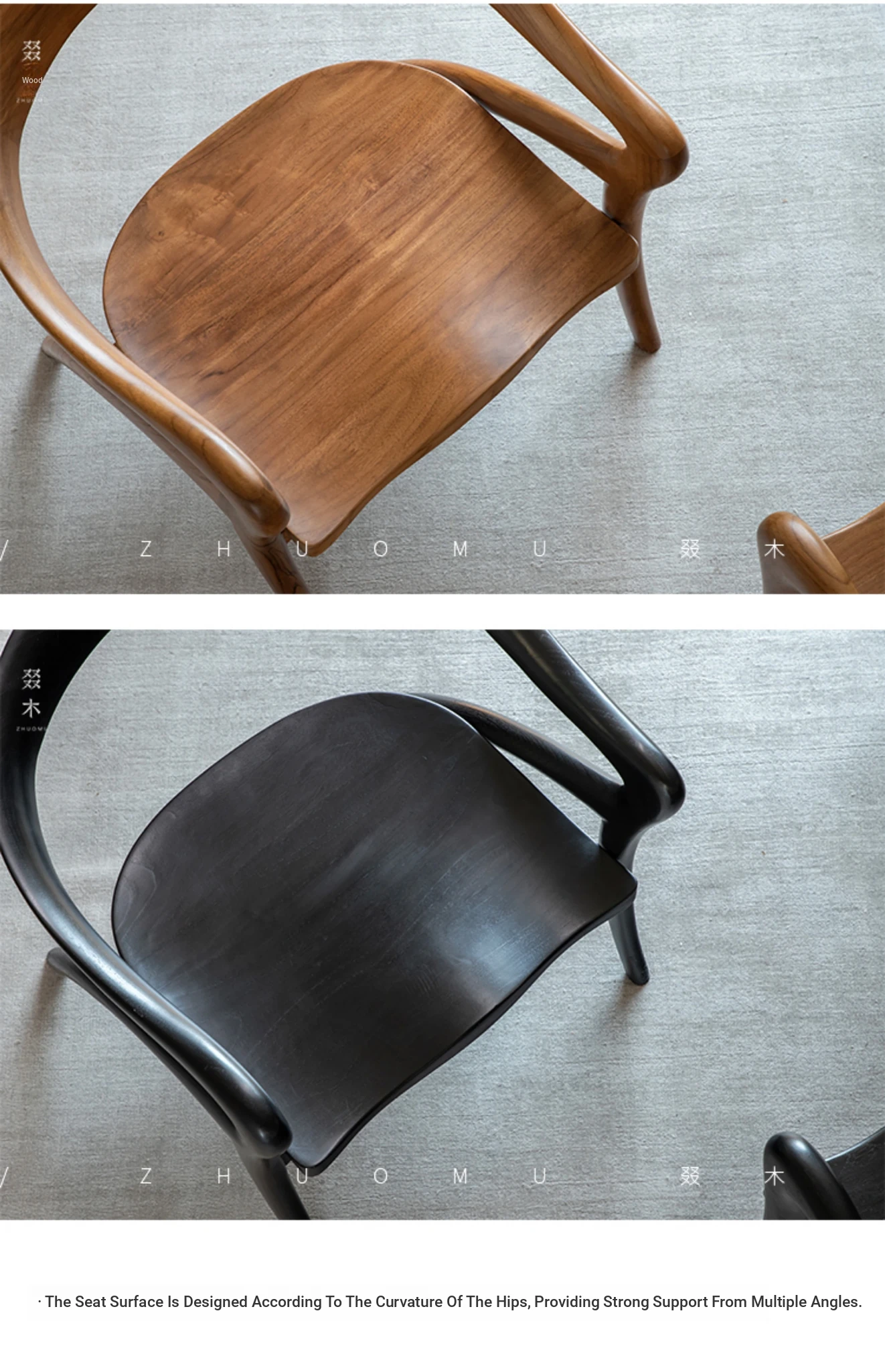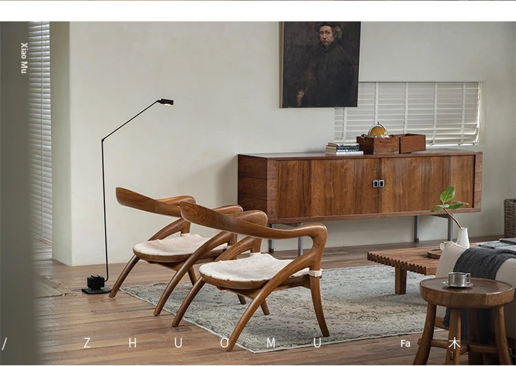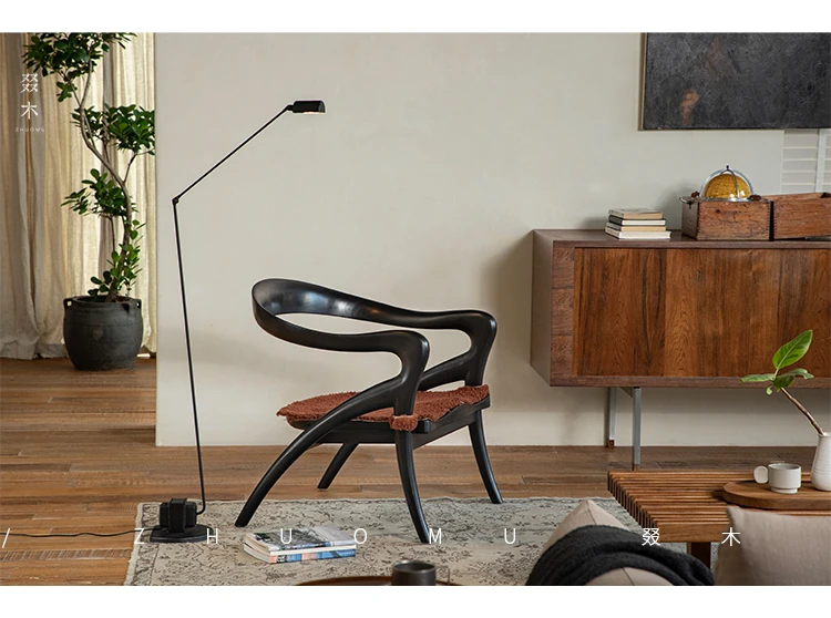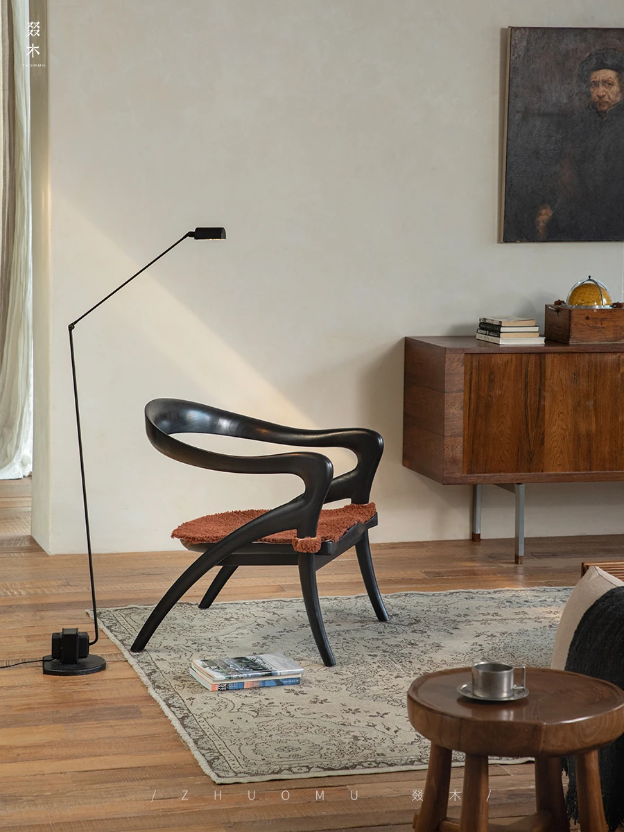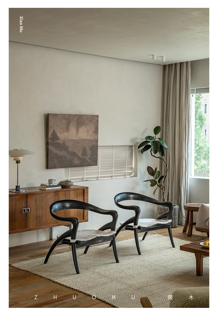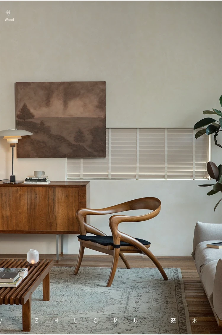 ZhuoMu | Vintage-Inspired Designer Lounge Chair for Wabi-Sabi Aesthetics, Perfect for Tea Rooms and Airbnb Spaces – Solid Teak Single Sofa Chair, Fully Handmade and Unique