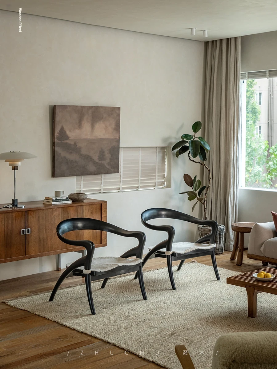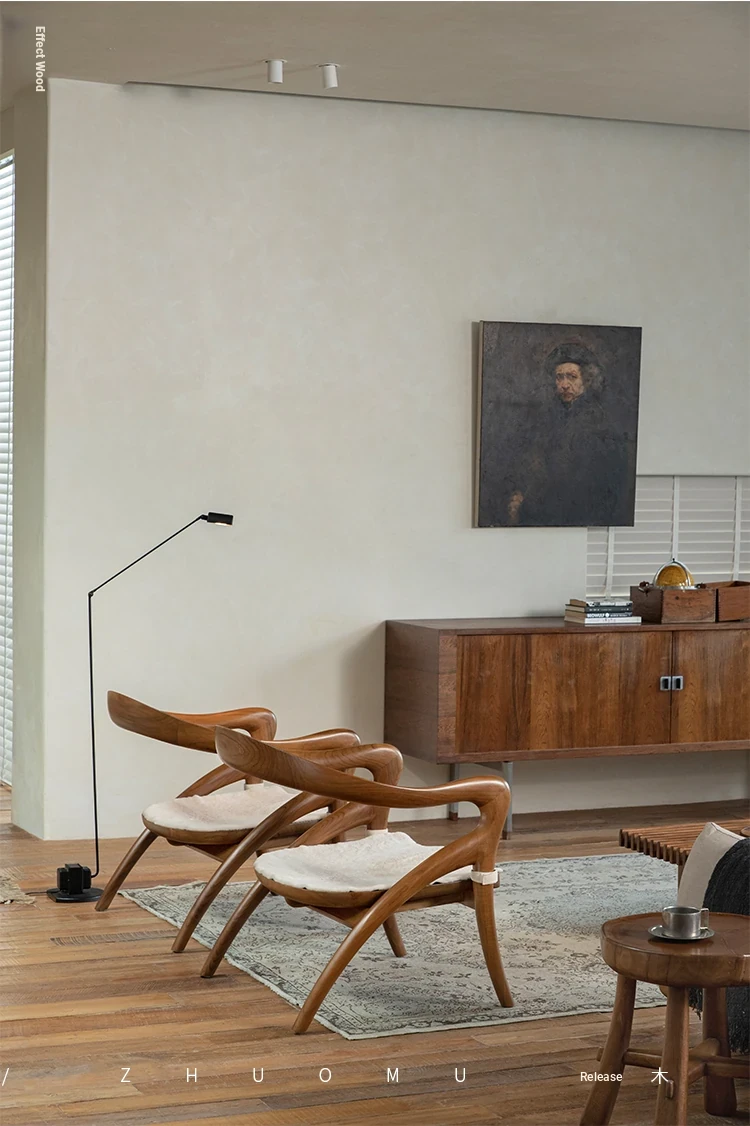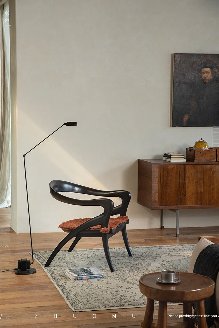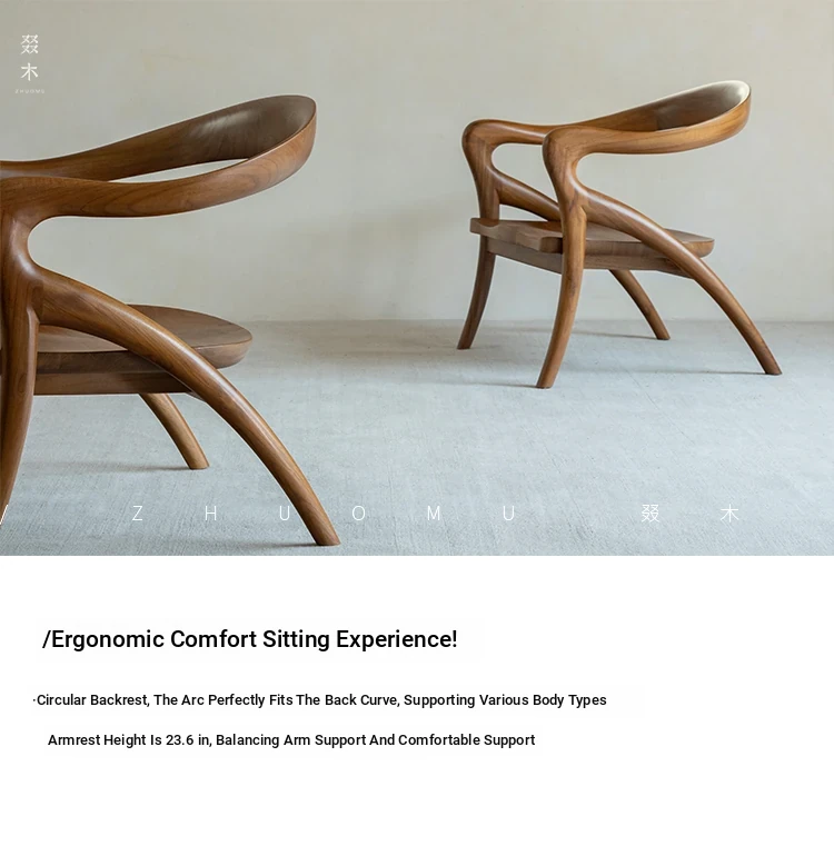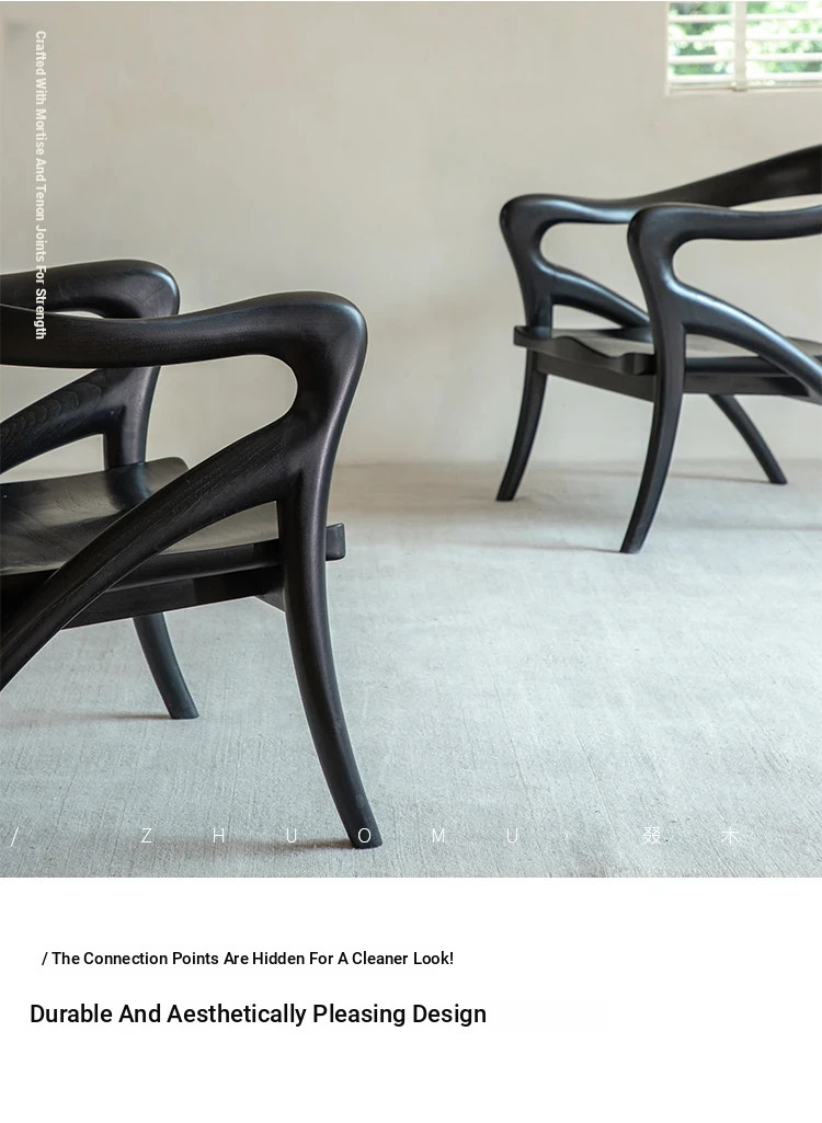 ZhuoMu | Vintage-Inspired Designer Lounge Chair for Wabi-Sabi Aesthetics, Perfect for Tea Rooms and Airbnb Spaces – Solid Teak Single Sofa Chair, Fully Handmade and Unique