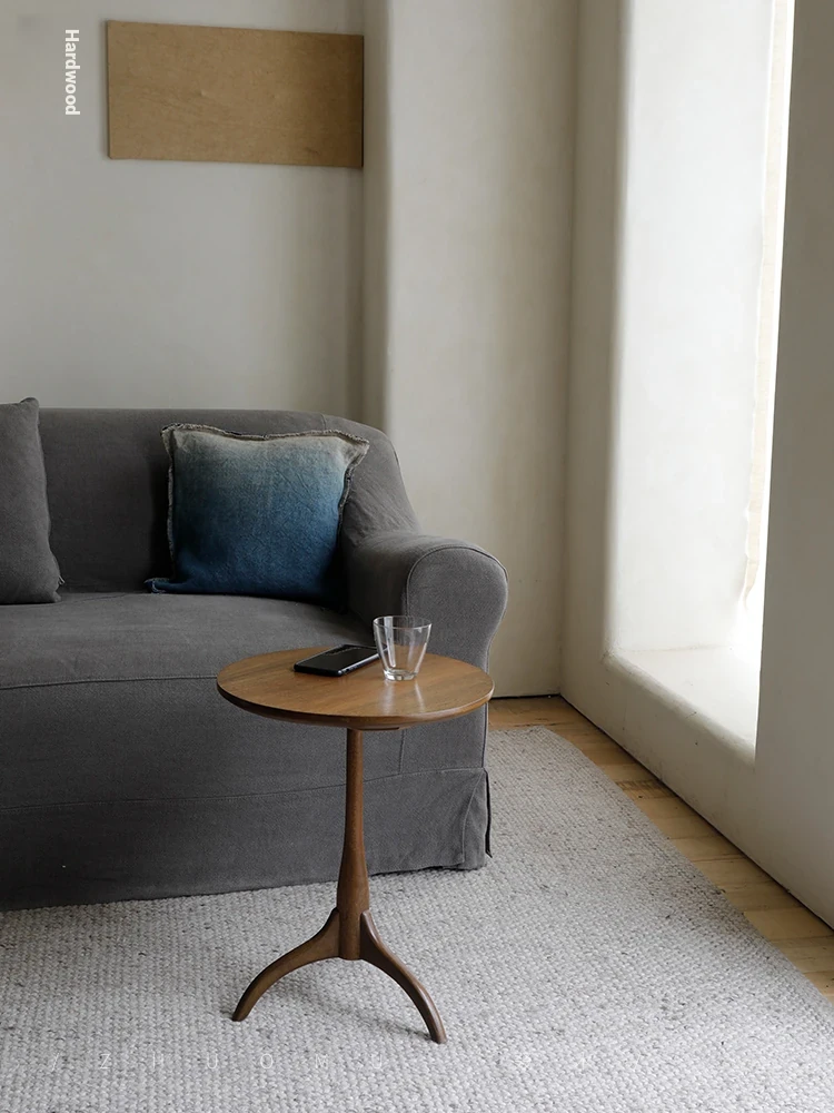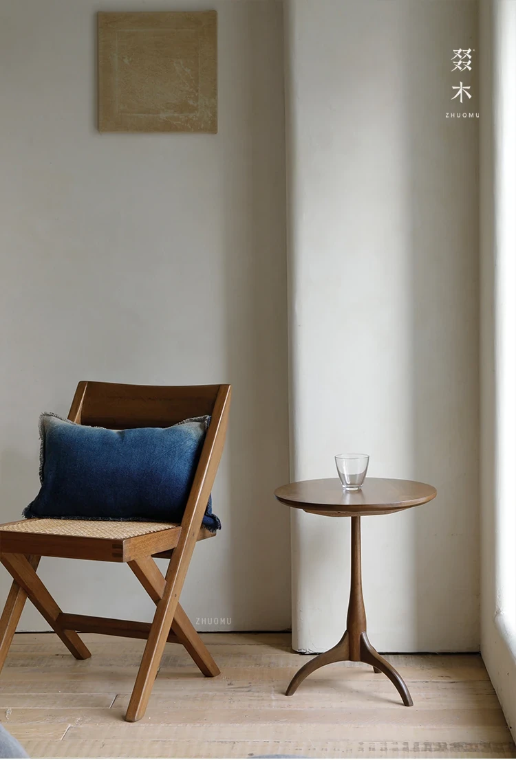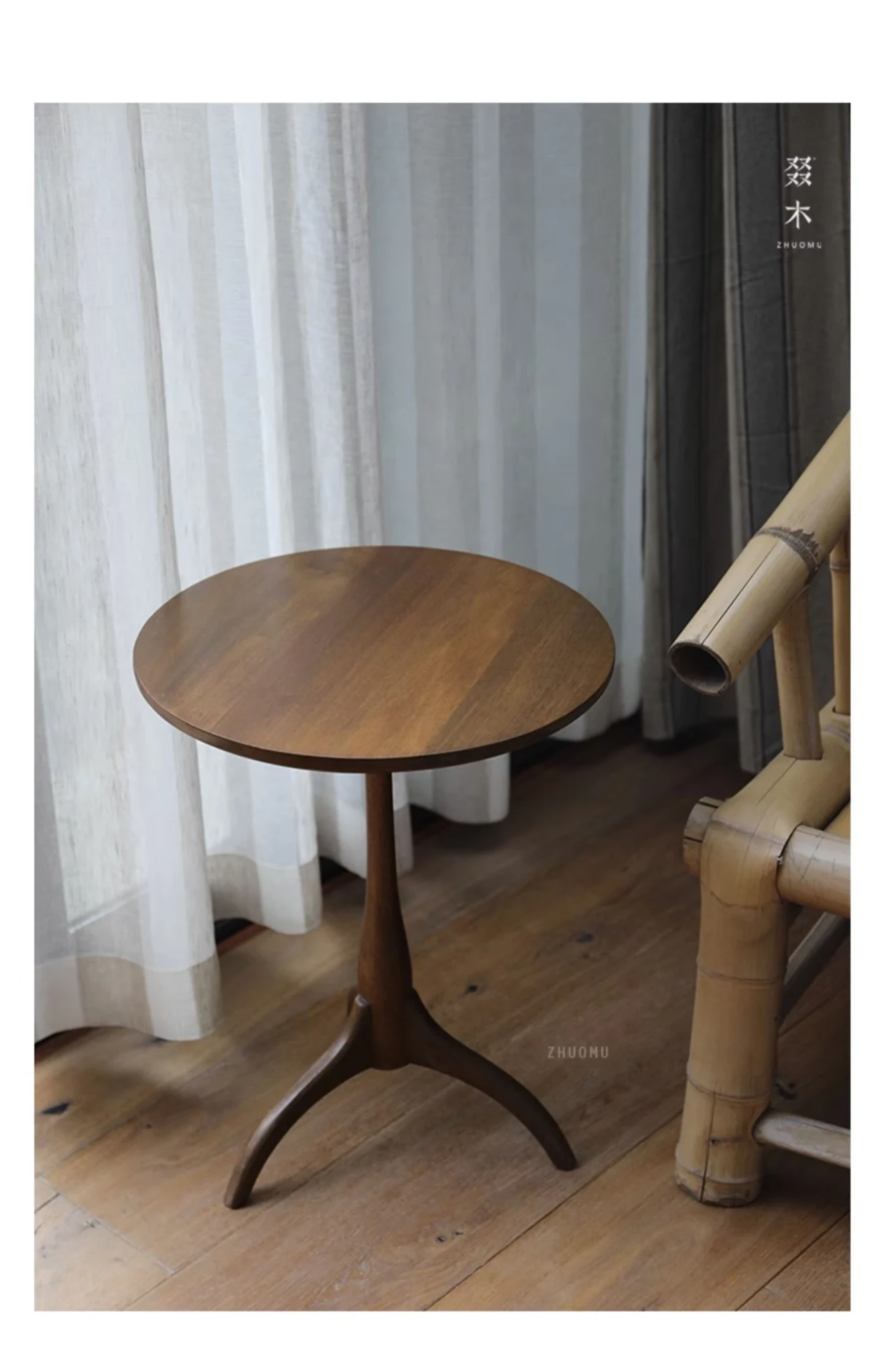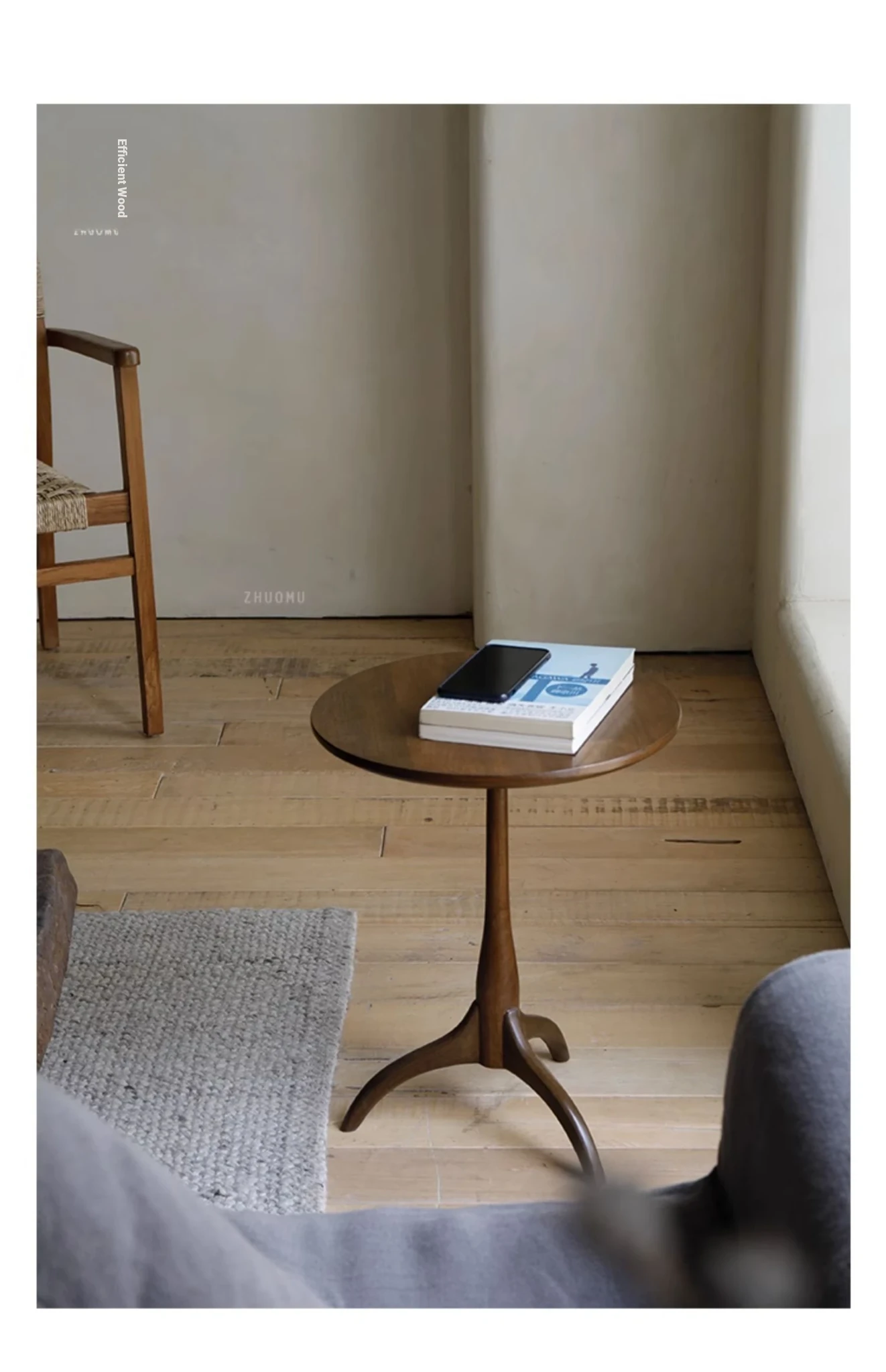 叕木/夏克家具|ぬくもりある和モダンデザイン!侘寂スタイルの無垢材サイドテーブル・おしゃれティーテーブル・ベッドサイドにもぴったりなコンパクトラウンドテーブル