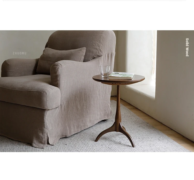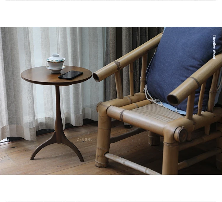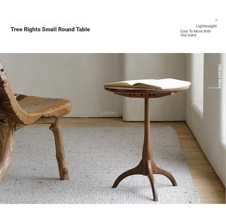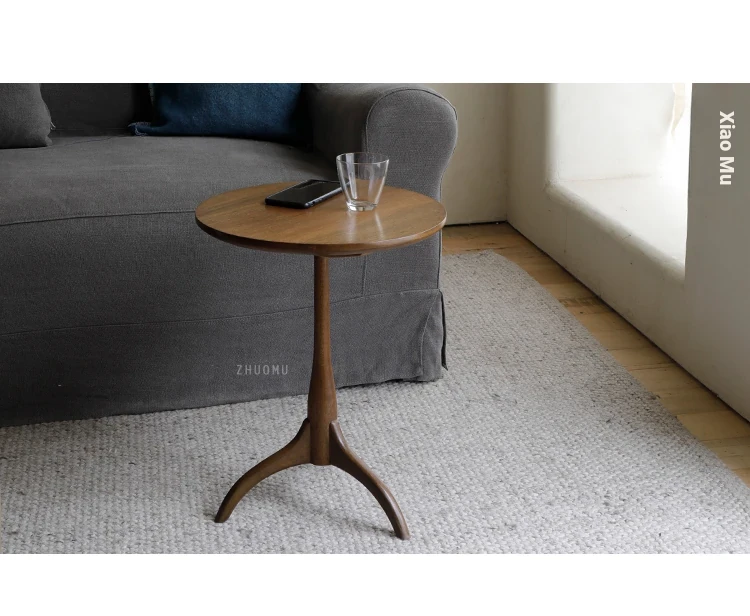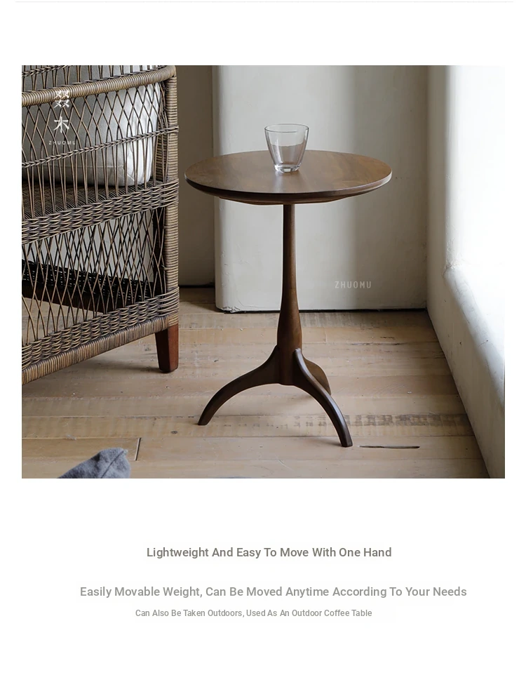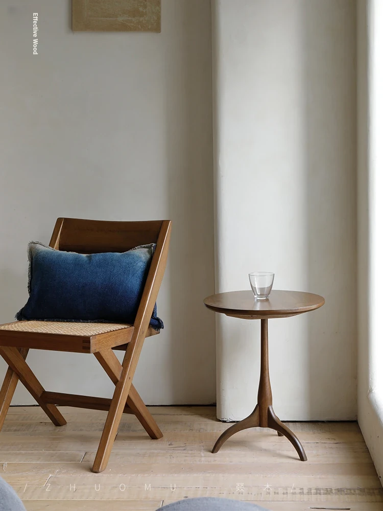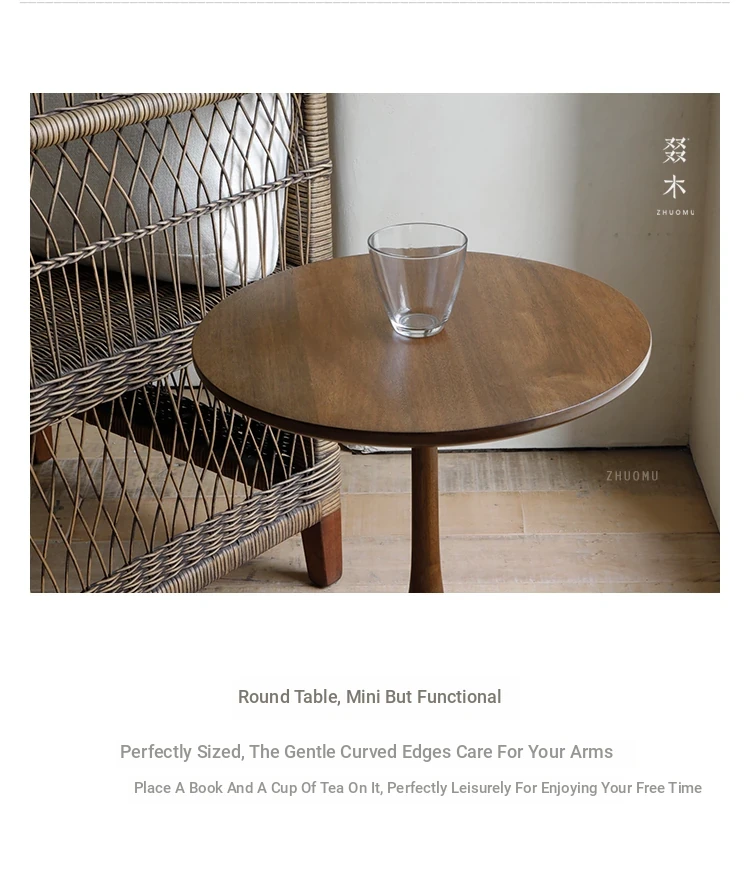 叕木/夏克家具|ぬくもりある和モダンデザイン!侘寂スタイルの無垢材サイドテーブル・おしゃれティーテーブル・ベッドサイドにもぴったりなコンパクトラウンドテーブル